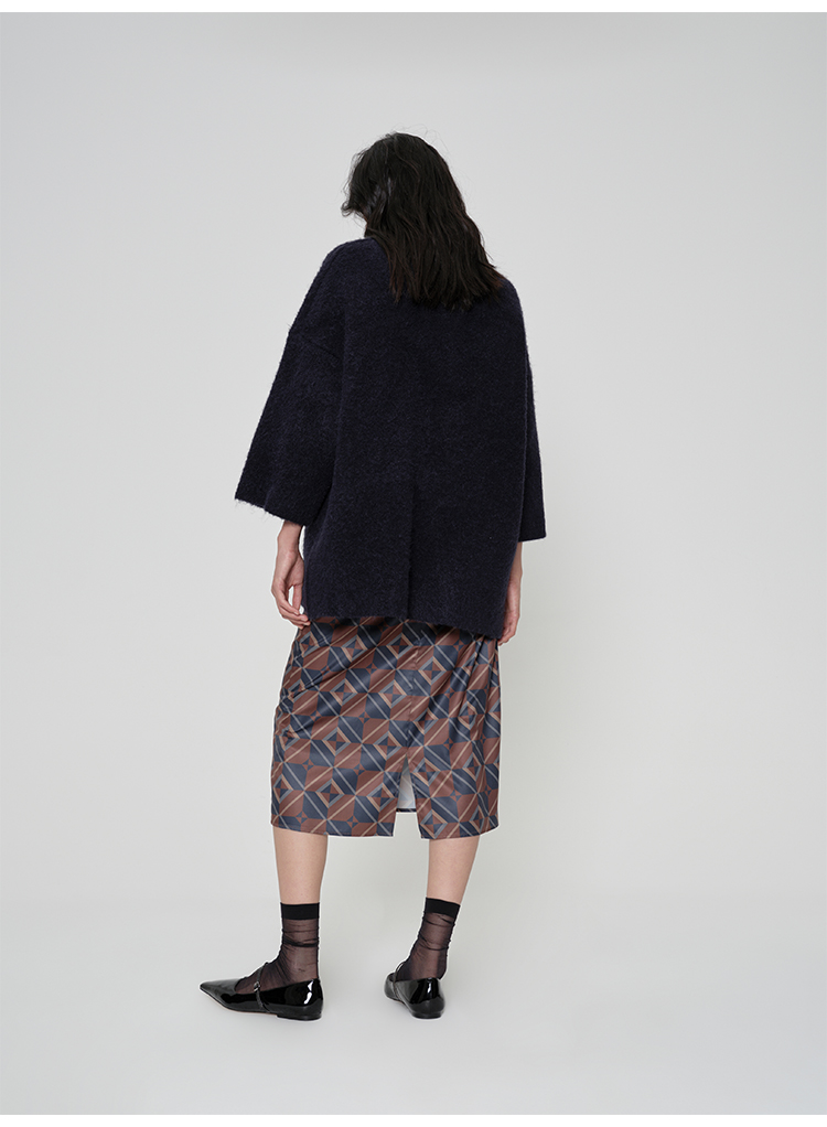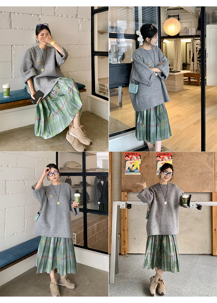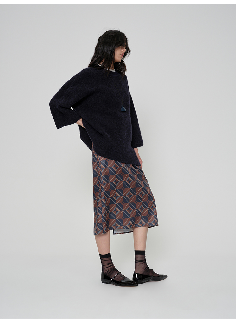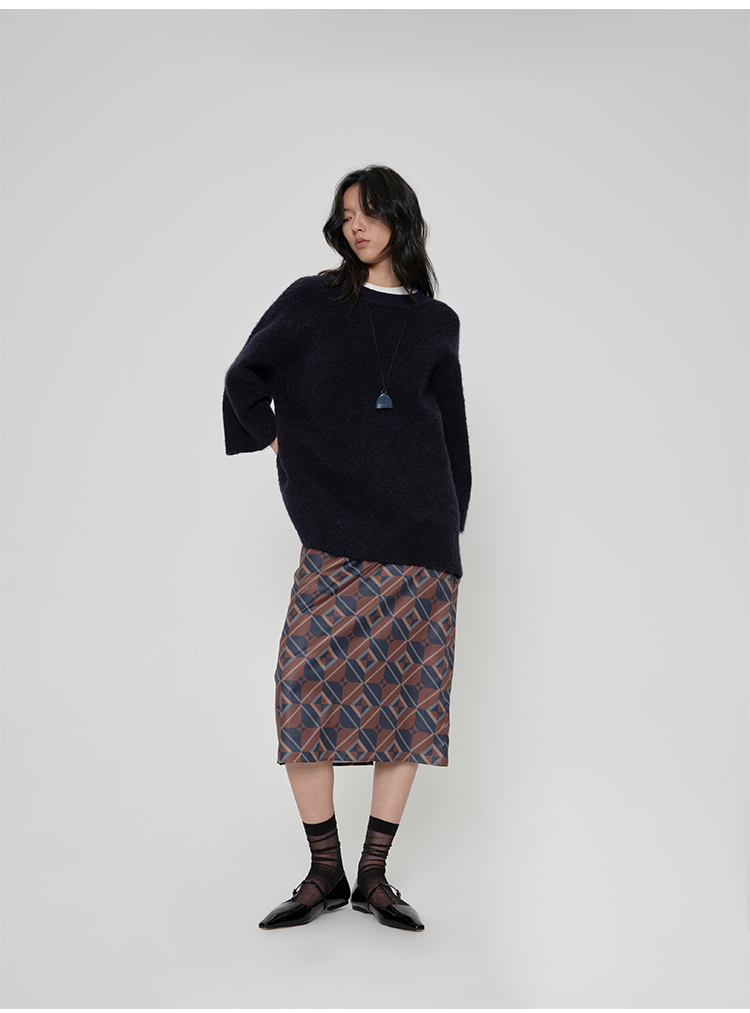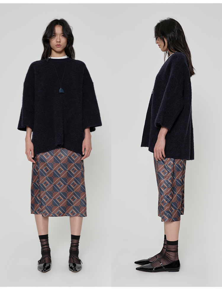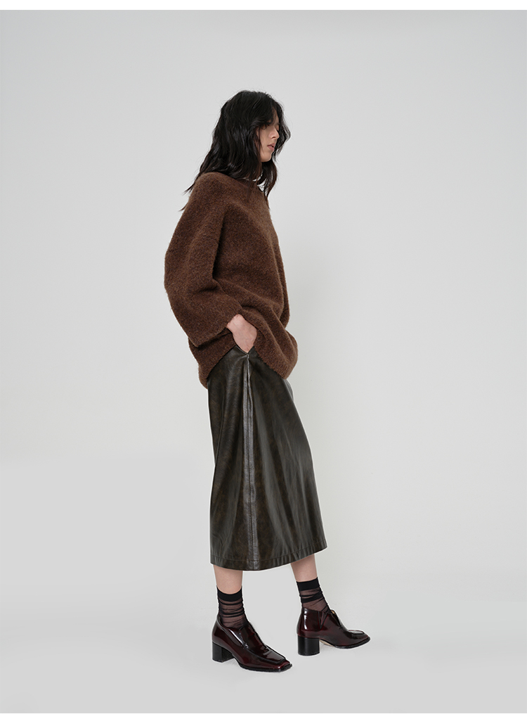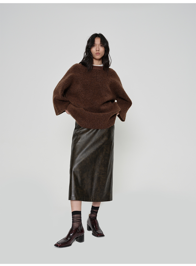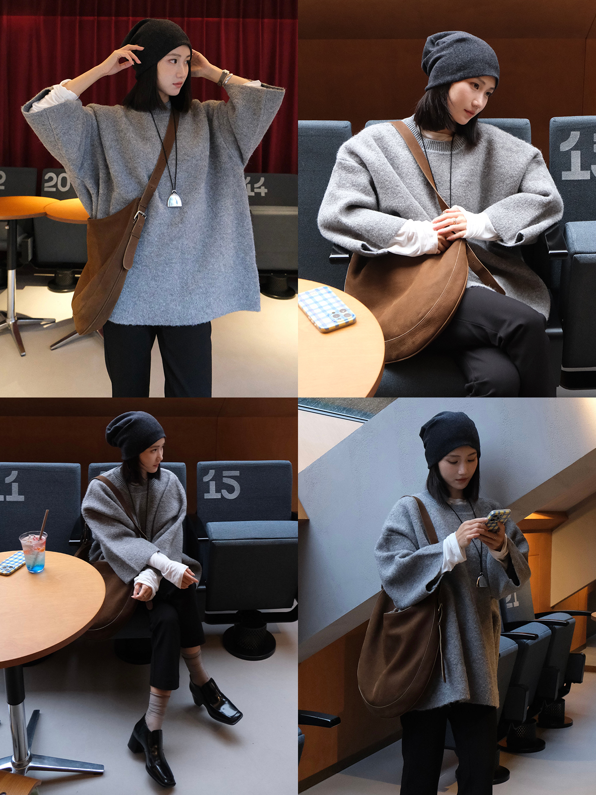HIDEMI 圆领大廓形落肩加厚款进口强缩混纺羊毛8分袖毛织针织上衣 摩卡色/黑色/烟灰色/藏蓝色