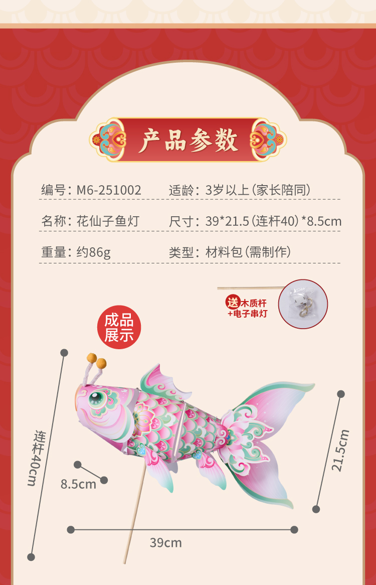 中秋节花仙子鱼灯手工diy锦鲤金鱼灯笼儿童制作材料装饰拍照花灯