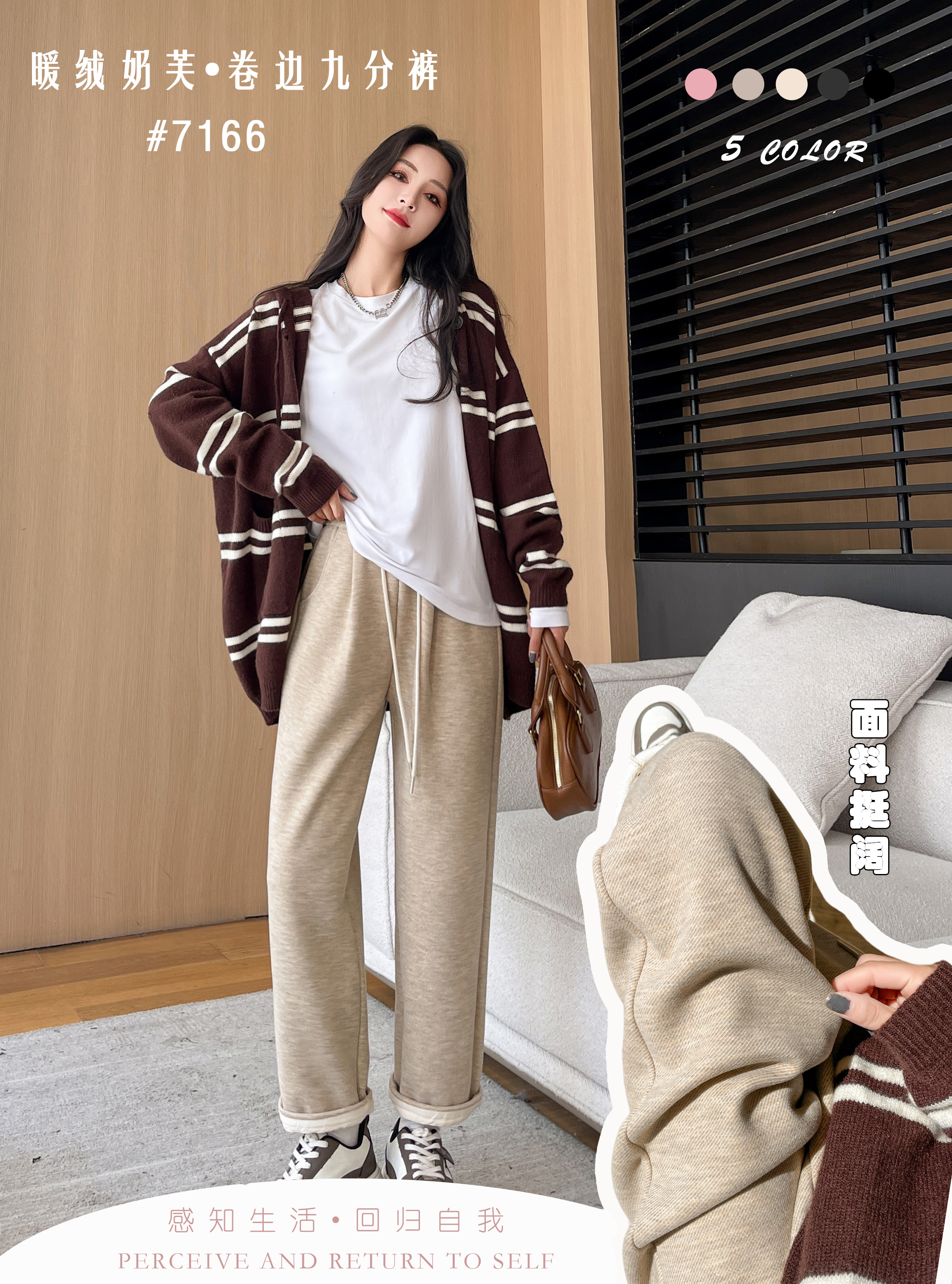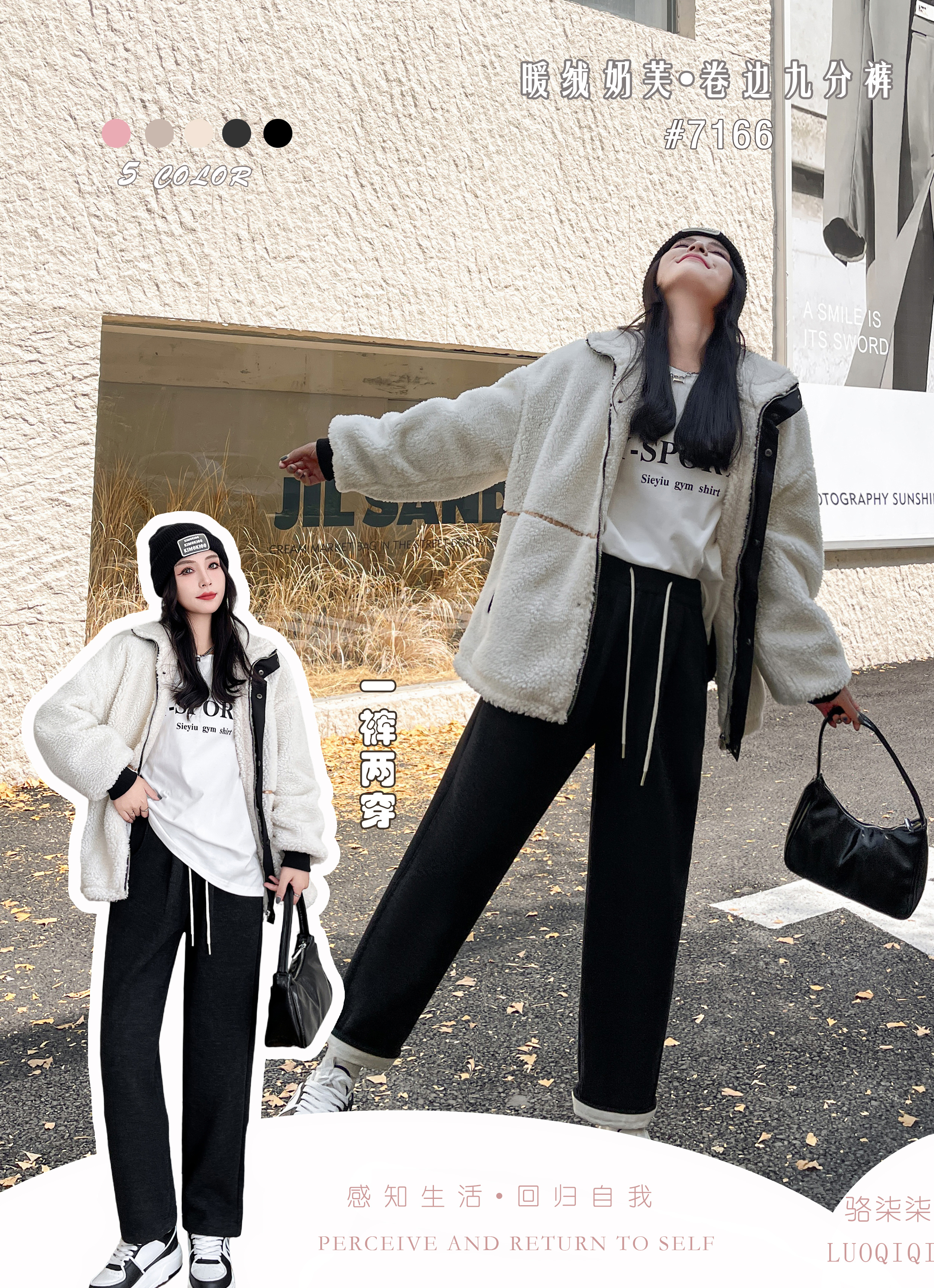 🌸🌸【骆柒柒暖绒奶芙•卷边九分裤7166#款】🙅甄选优质舒适面料 🥳🥳🥳亲肤透气,梨形身材福音显高 ✨显瘦 ✨显腿直。 😘老爹裤的版型,超级遮肉肉🙆