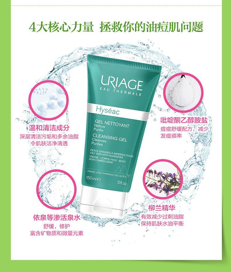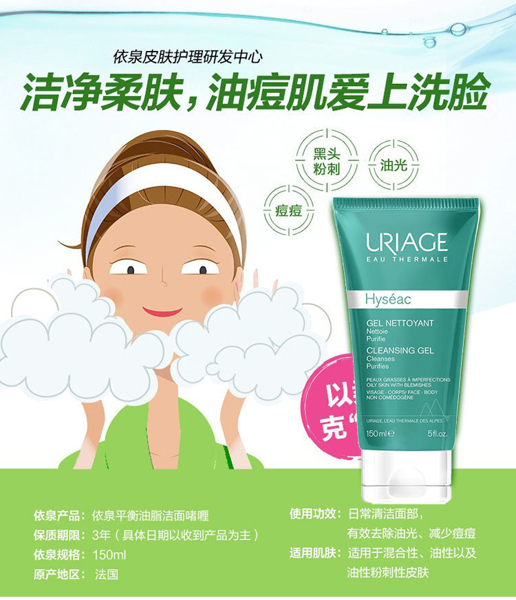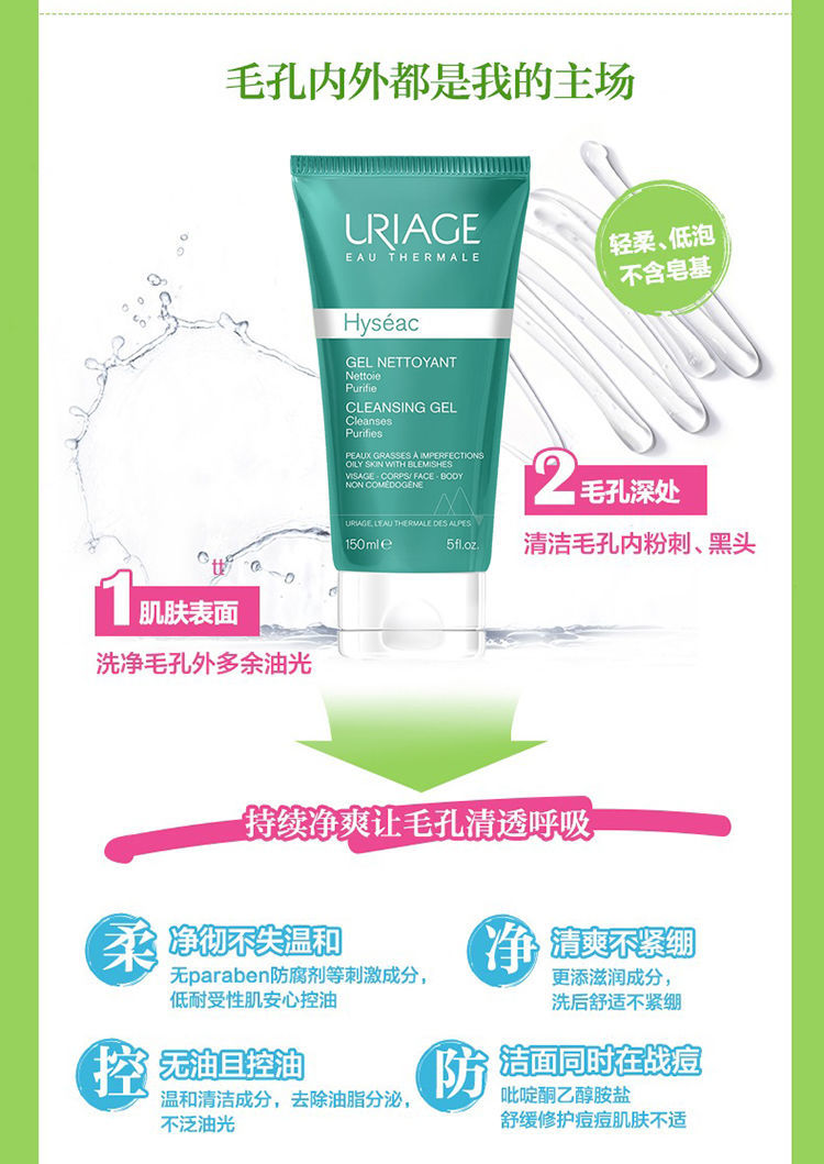 【预售 急单慎拍】Uriage依泉平衡油脂洁面啫喱150-500ml 轻柔低泡