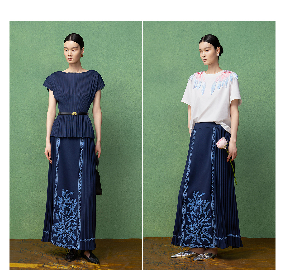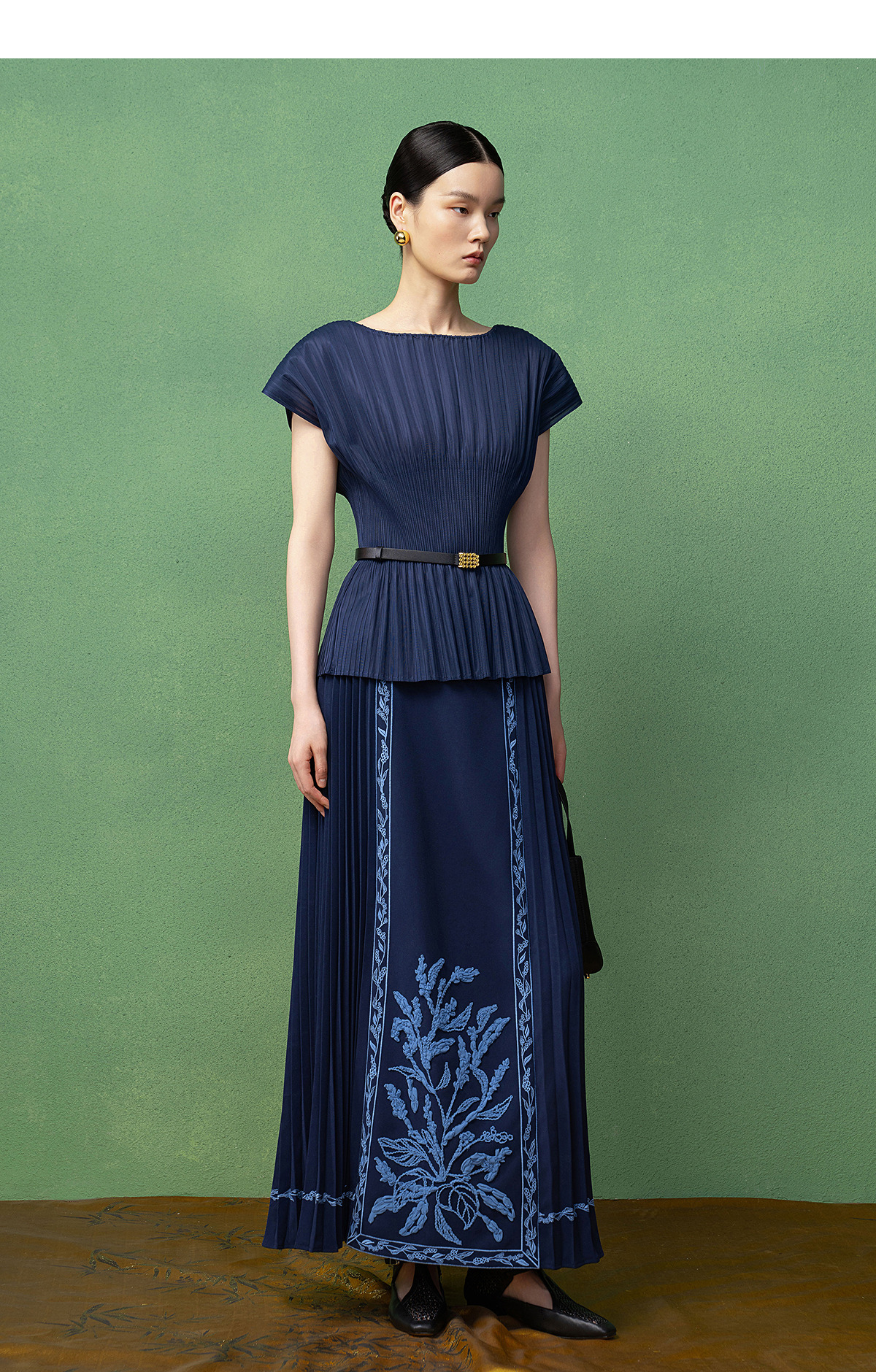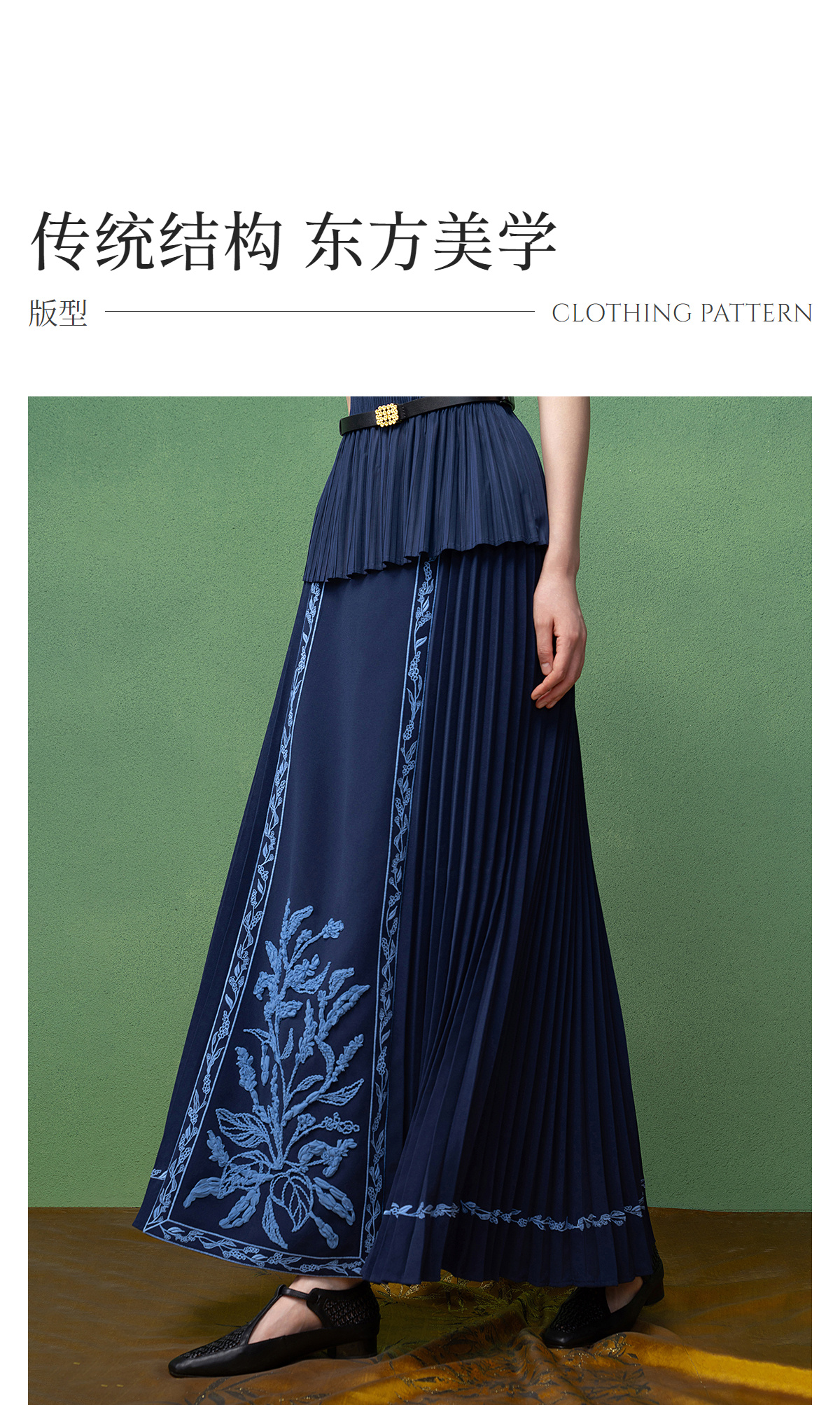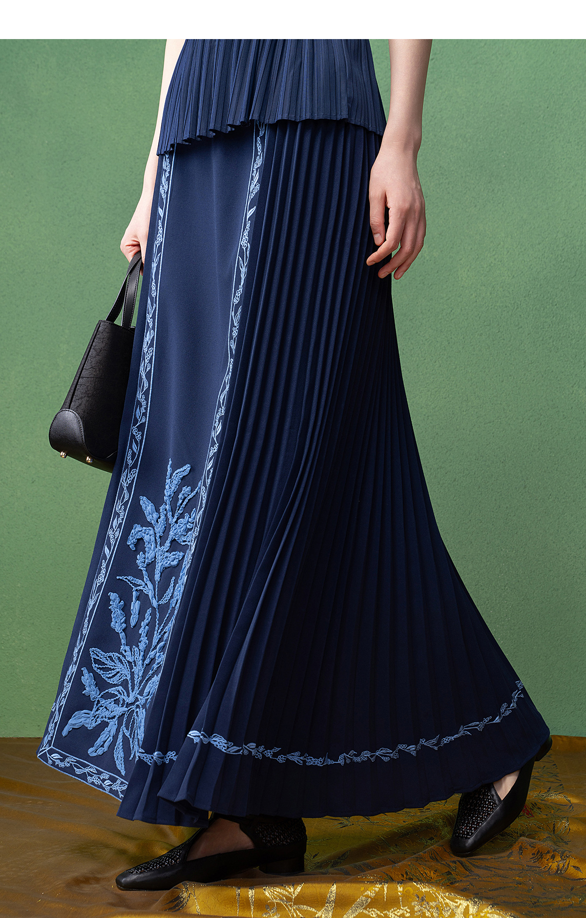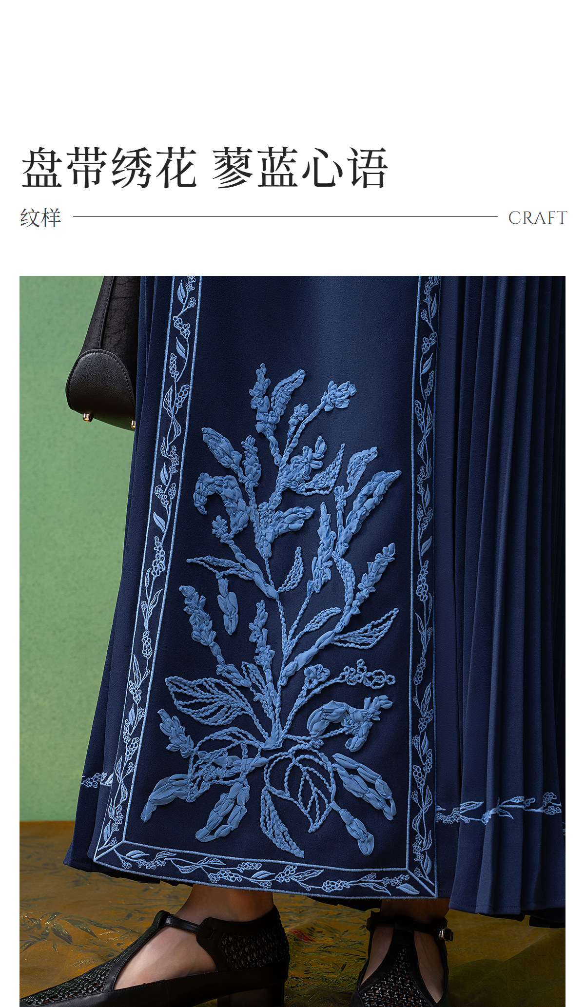 【林栖设计小店】【现货】【弹力腰围】寻迹蓼蓝改良马面裙新中式国风绣花2025秋季新款半身裙女1953110