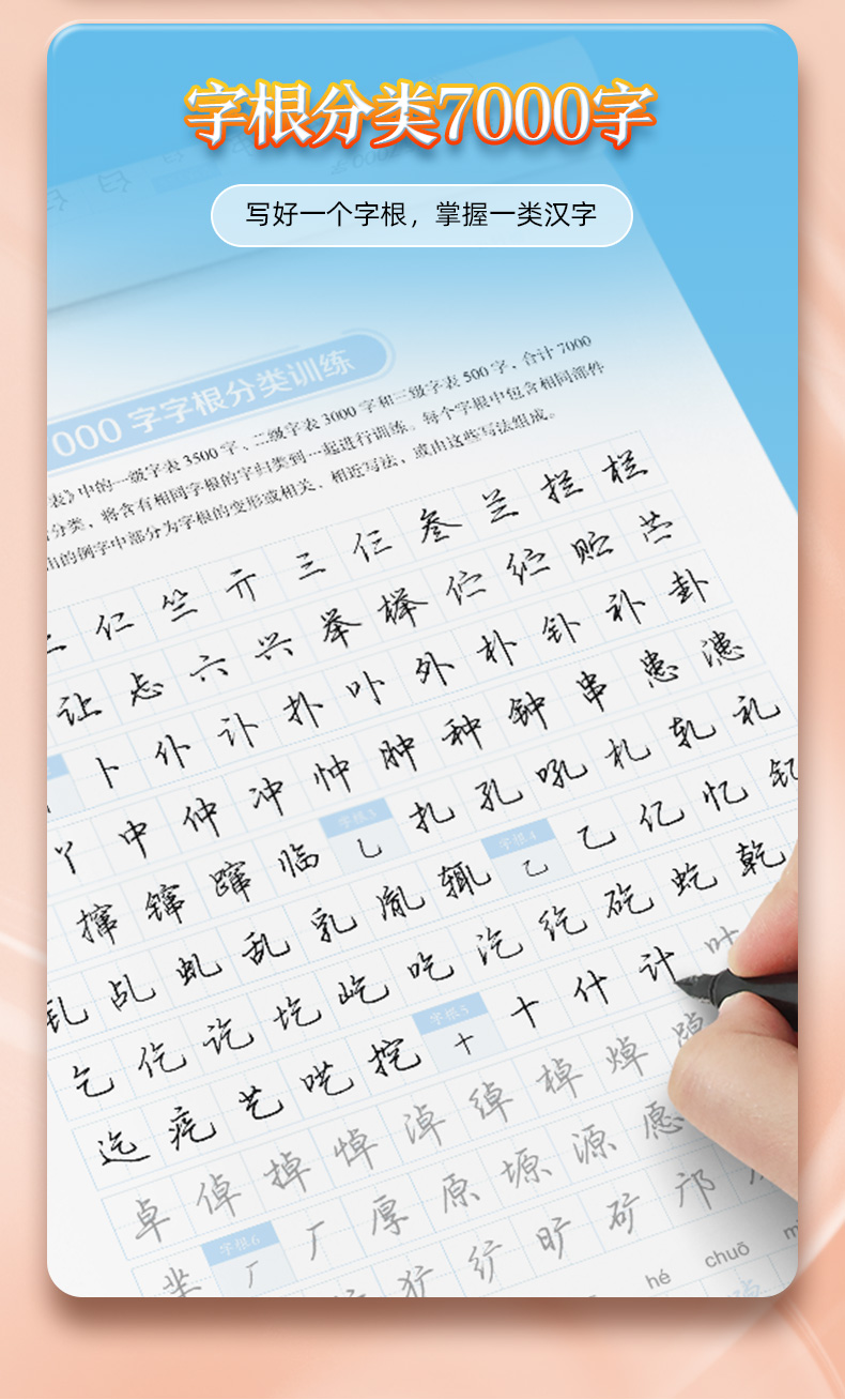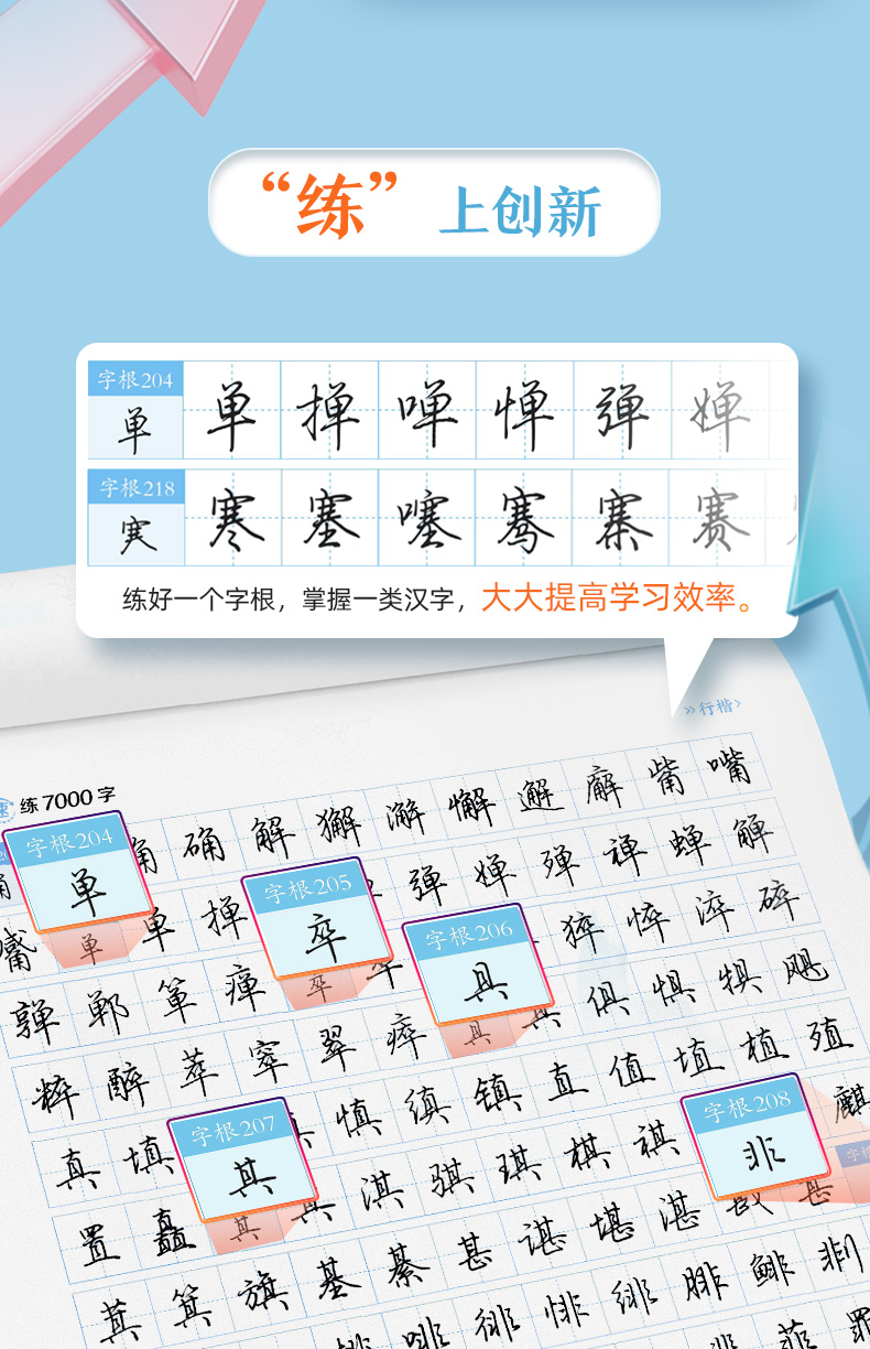 墨点字帖 字根速练7000字 荆霄鹏楷书行楷字帖通用规范汉字常用字楷初学者硬笔书法练字帖