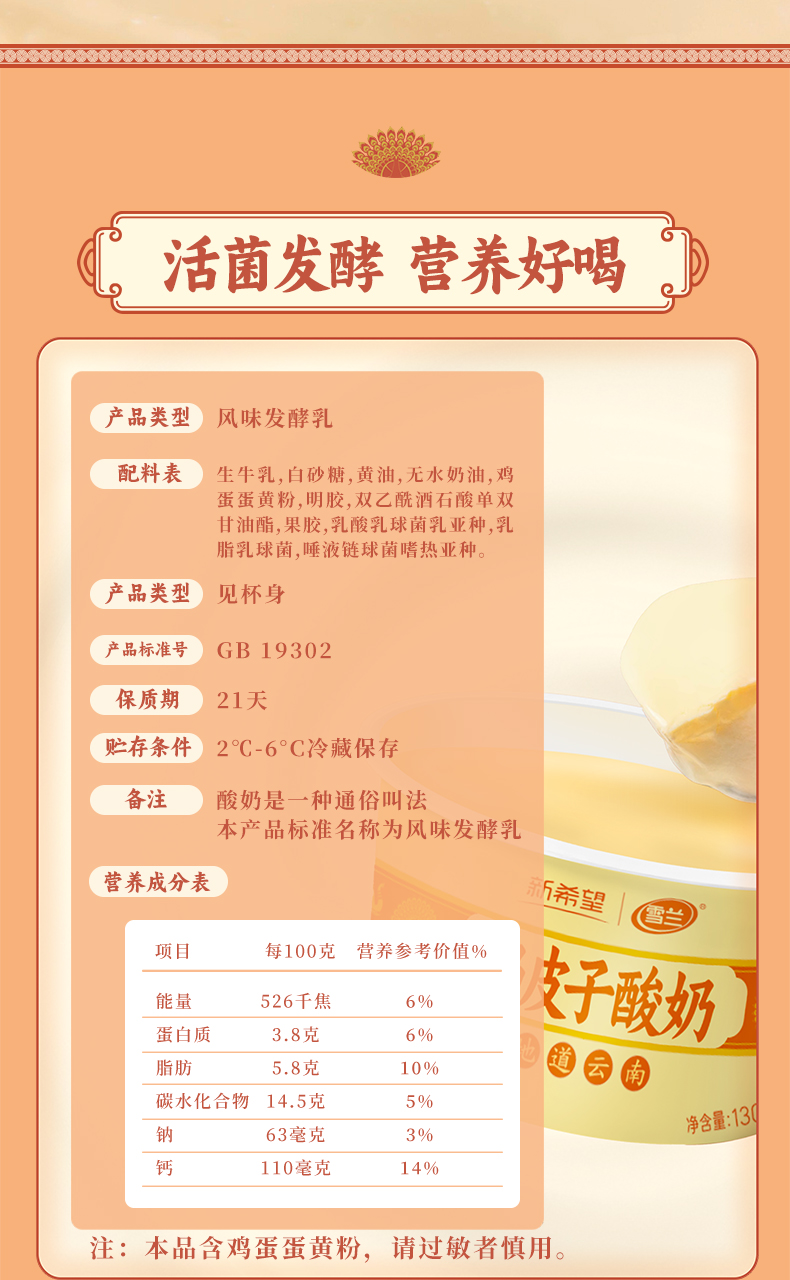 新希望雪兰奶皮子酸奶地道云南酸奶130g*12杯 商品图2