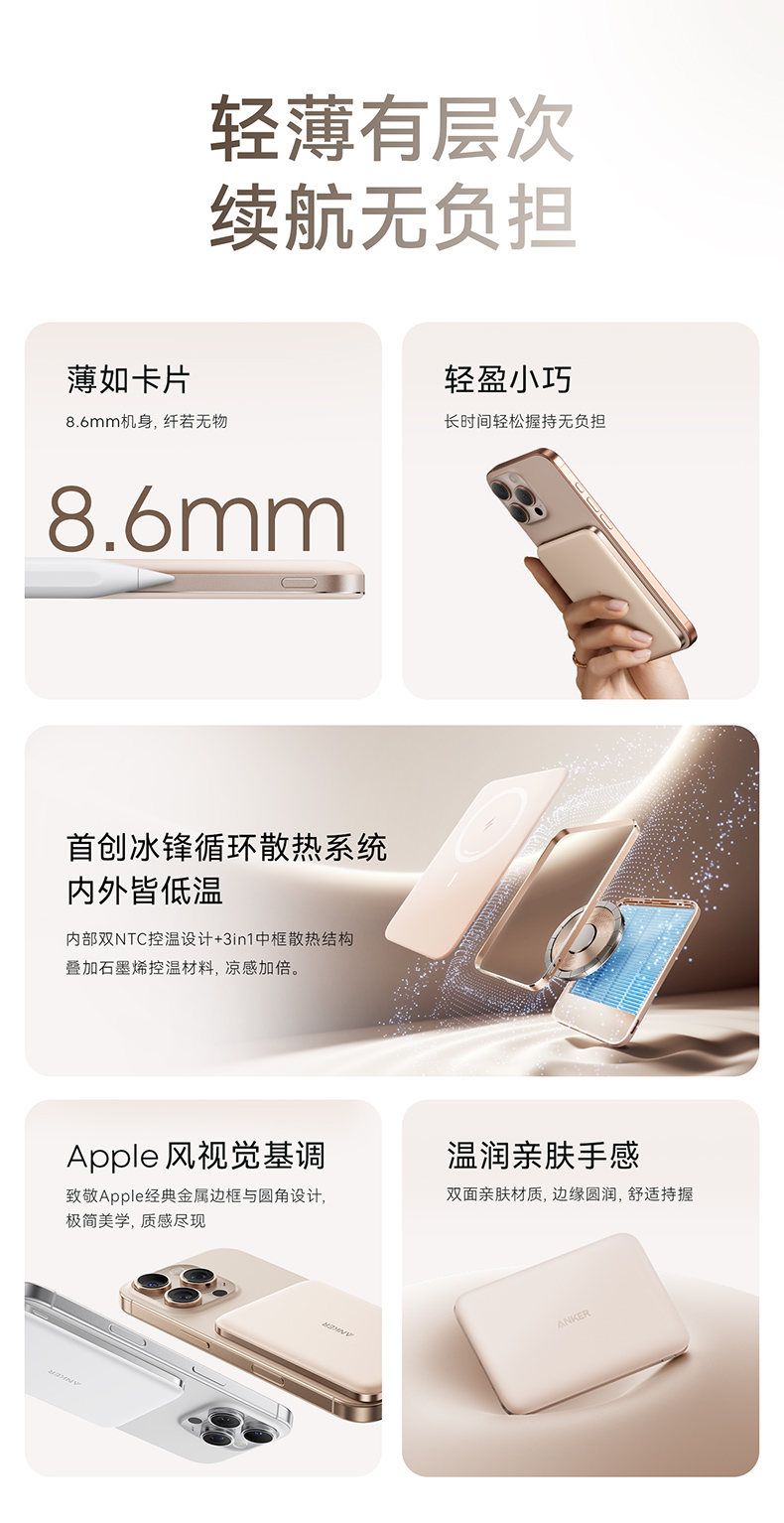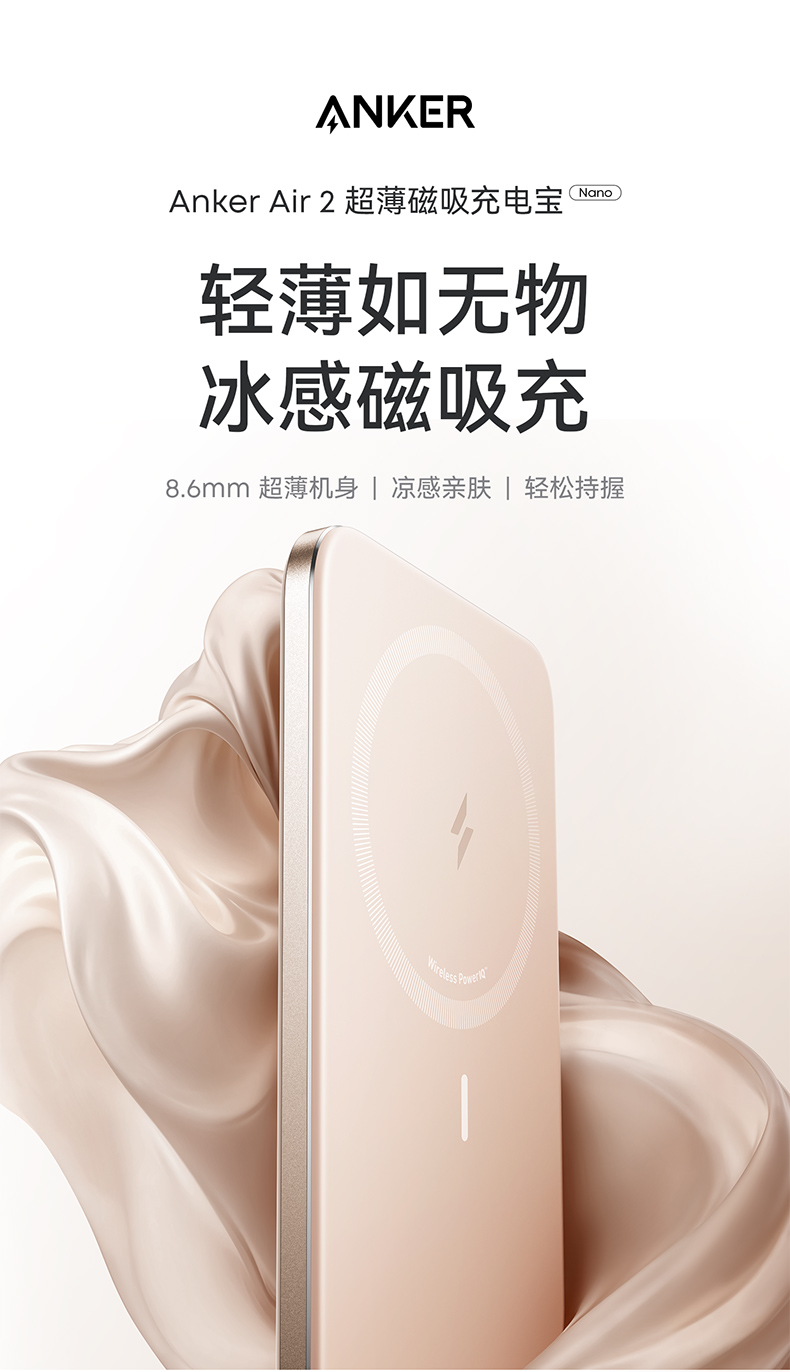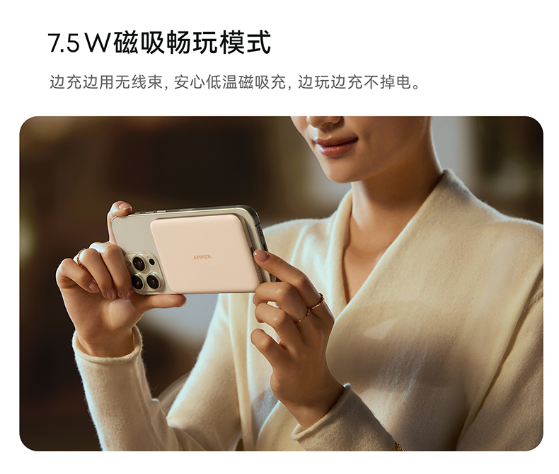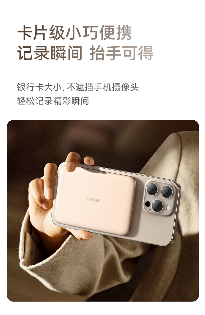 【热销】Anker安克 MagGo系列卡片超薄磁吸充电宝5000mAh小巧便携移动电源 A1665