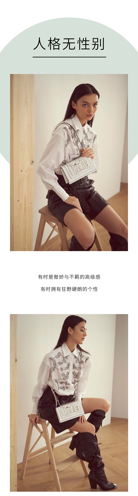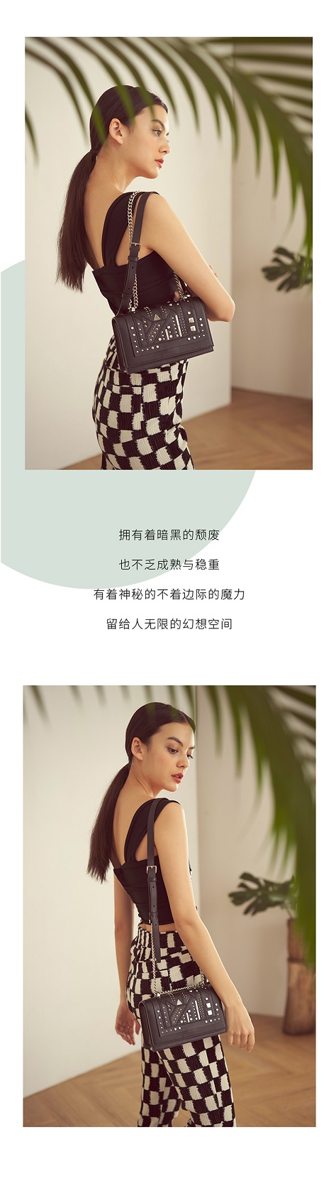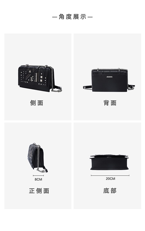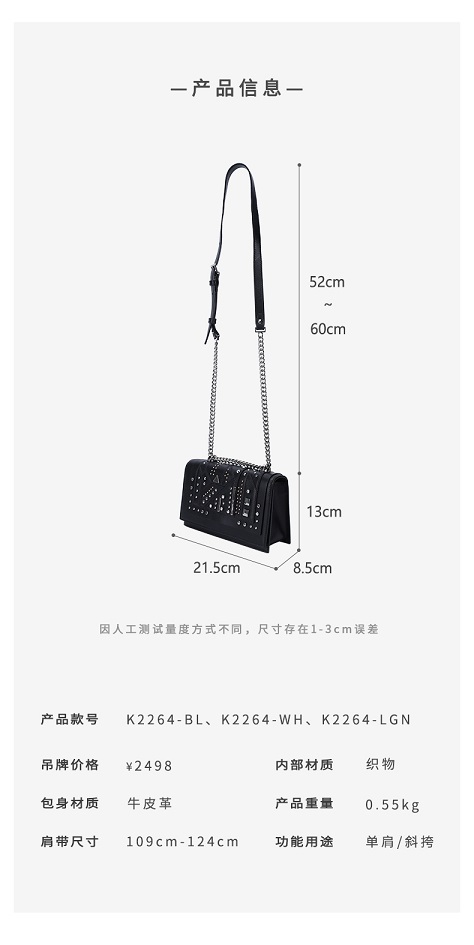 【直发】KH Design明治女包时尚潮牌朋克风铆钉小方包小众轻奢斜挎包单肩