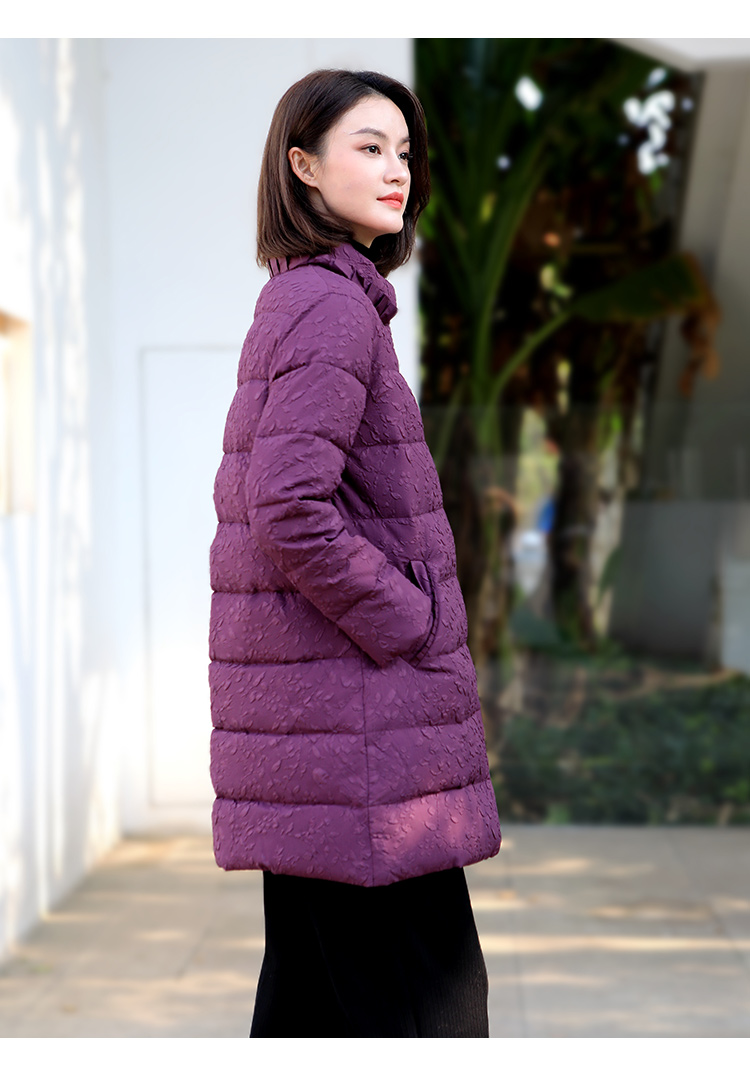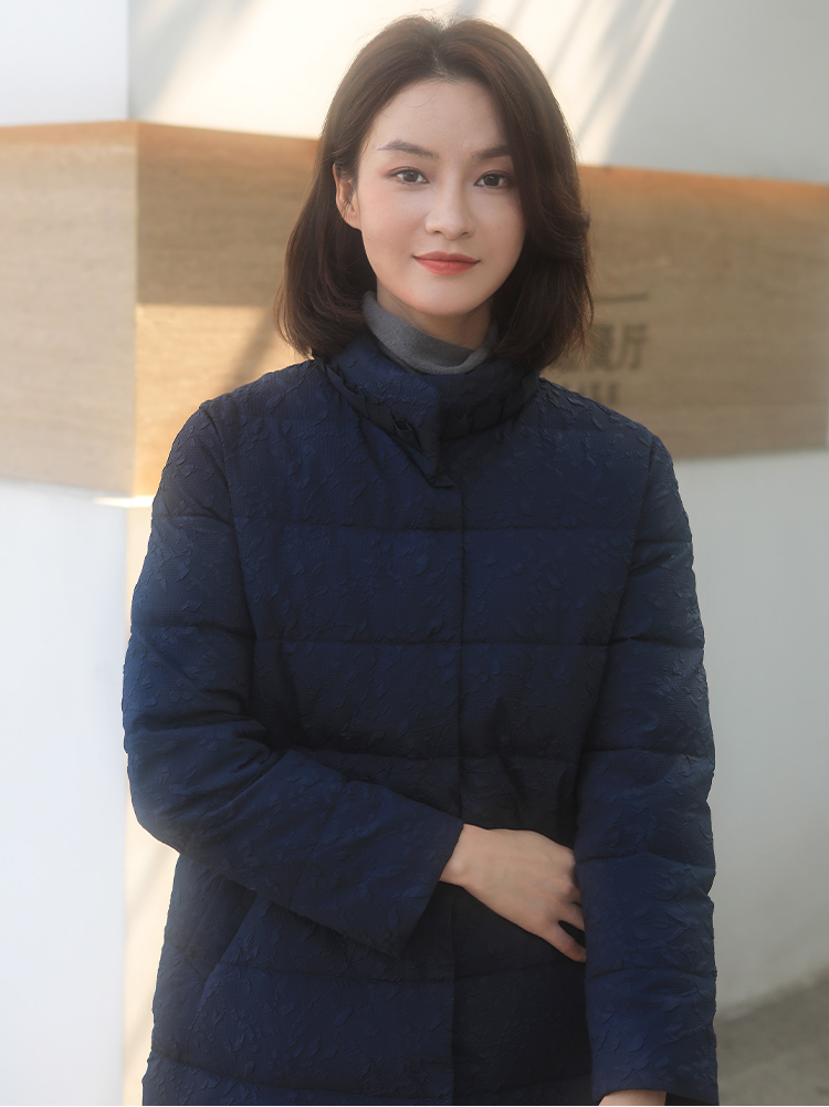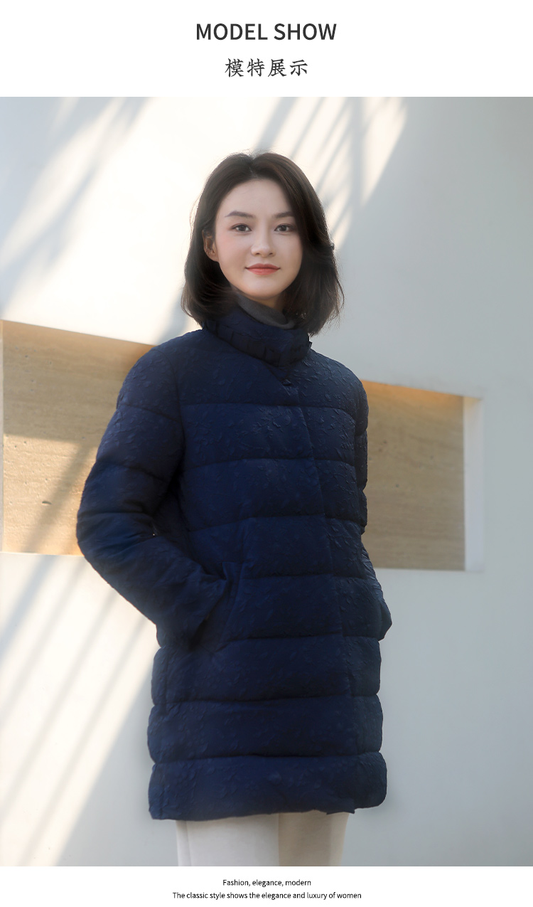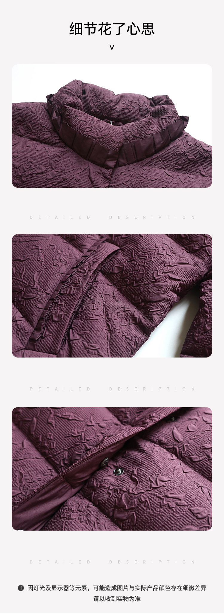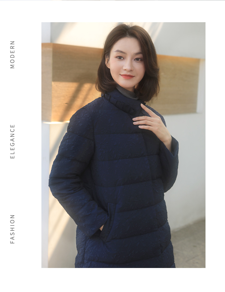 佐尔美冬季新款 气质中长款90绒立领碎花羽绒服女E34YY48