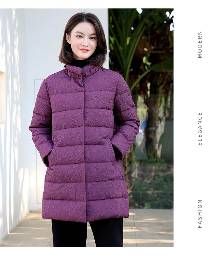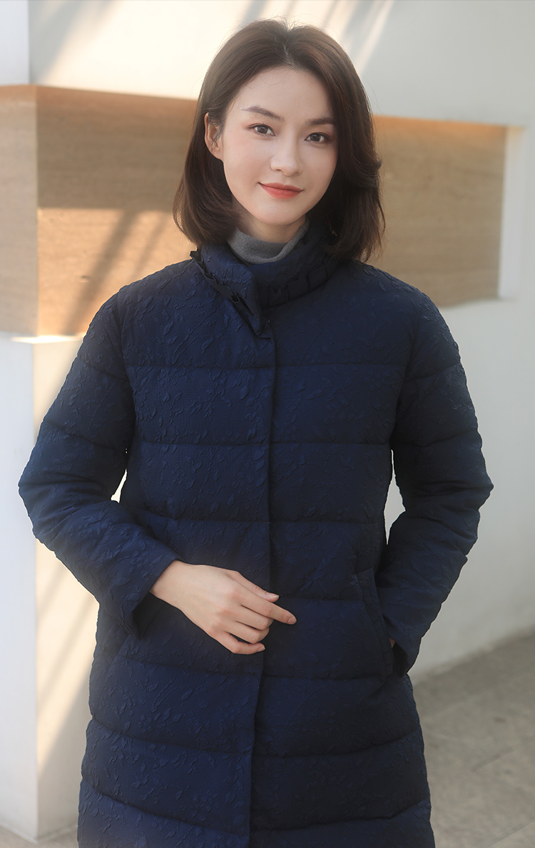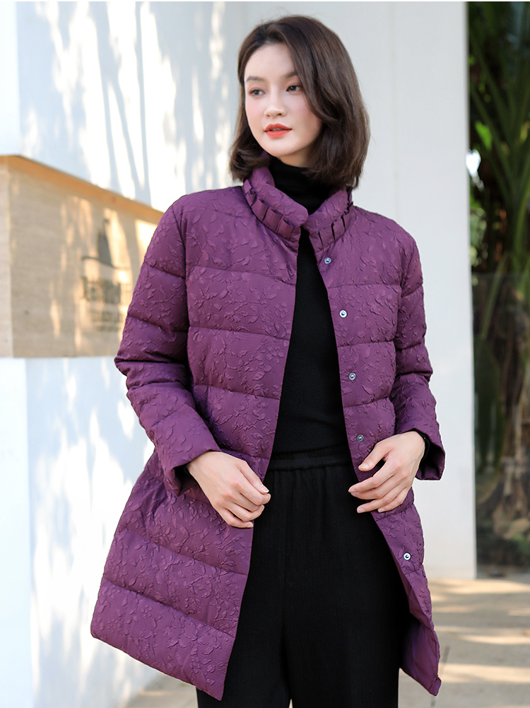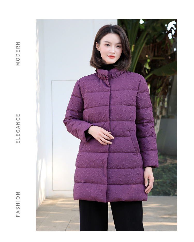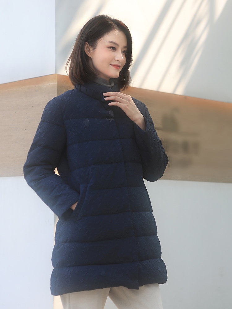 佐尔美冬季新款 气质中长款90绒立领碎花羽绒服女E34YY48