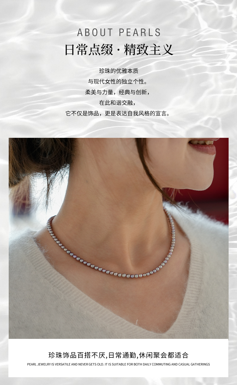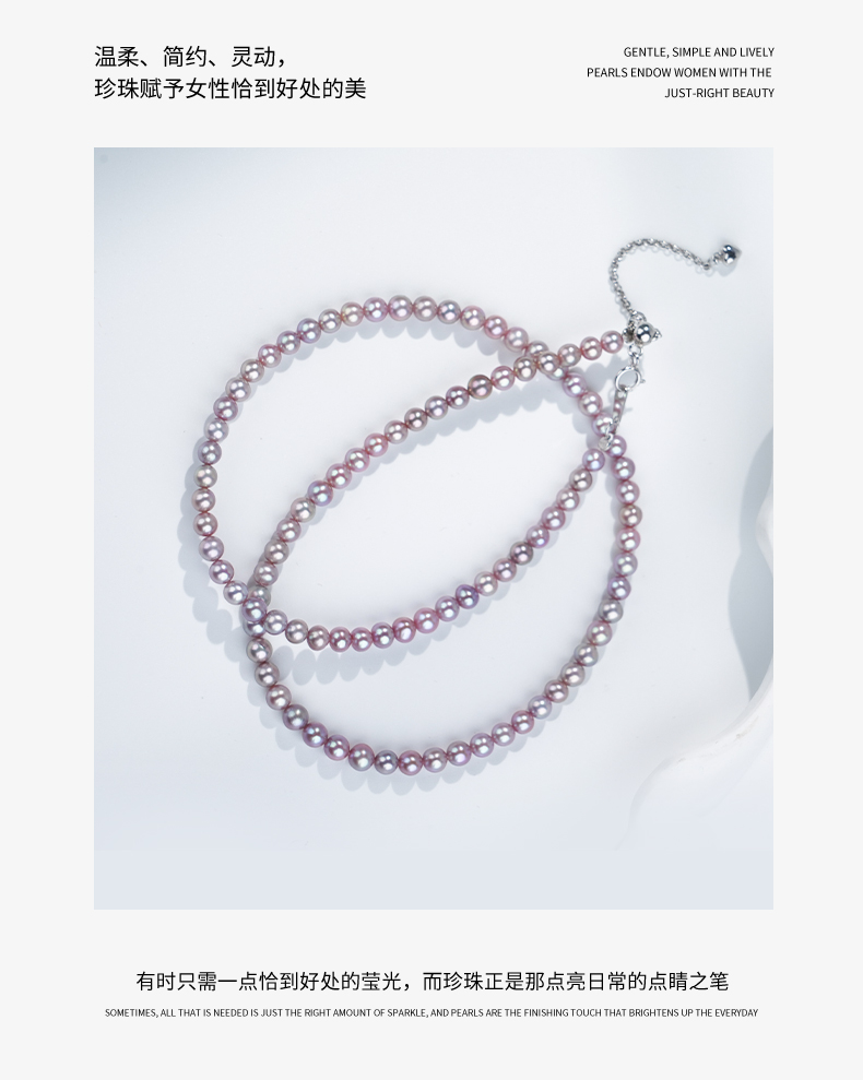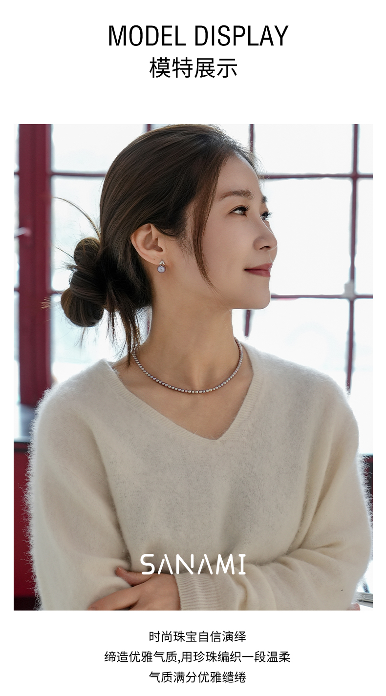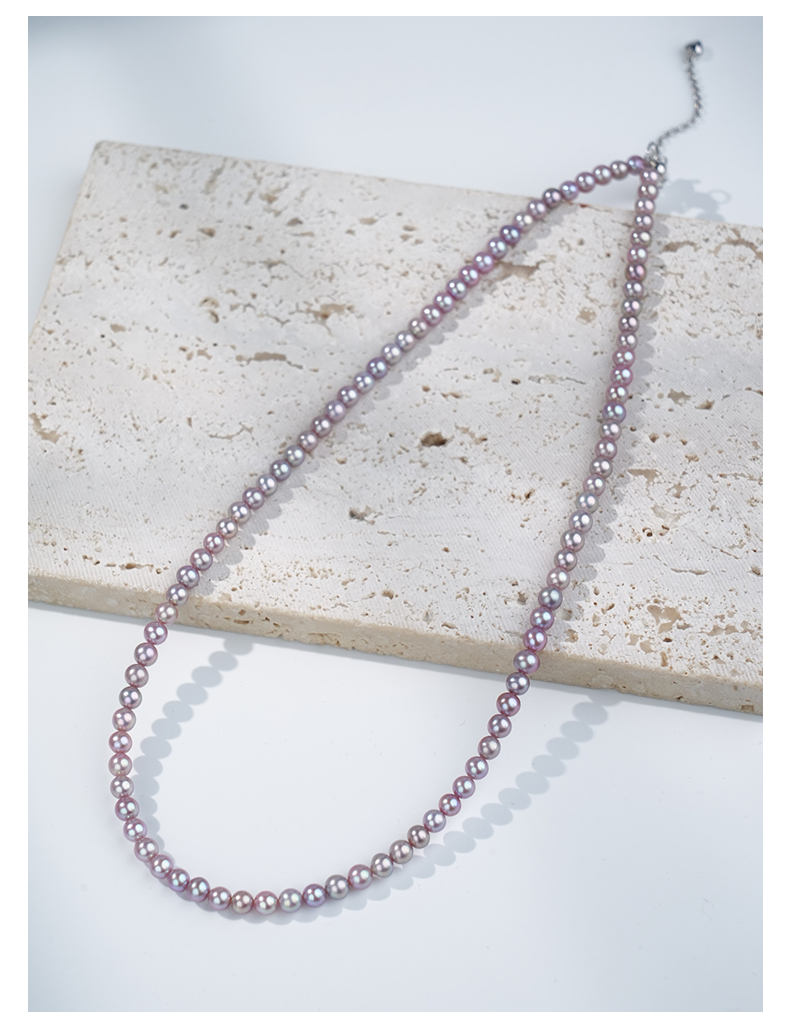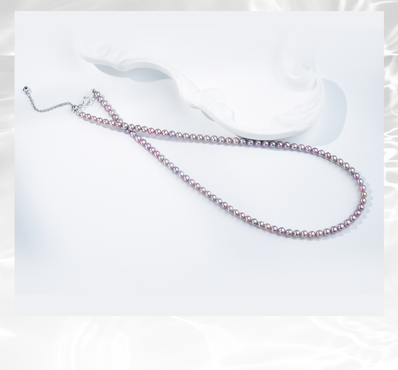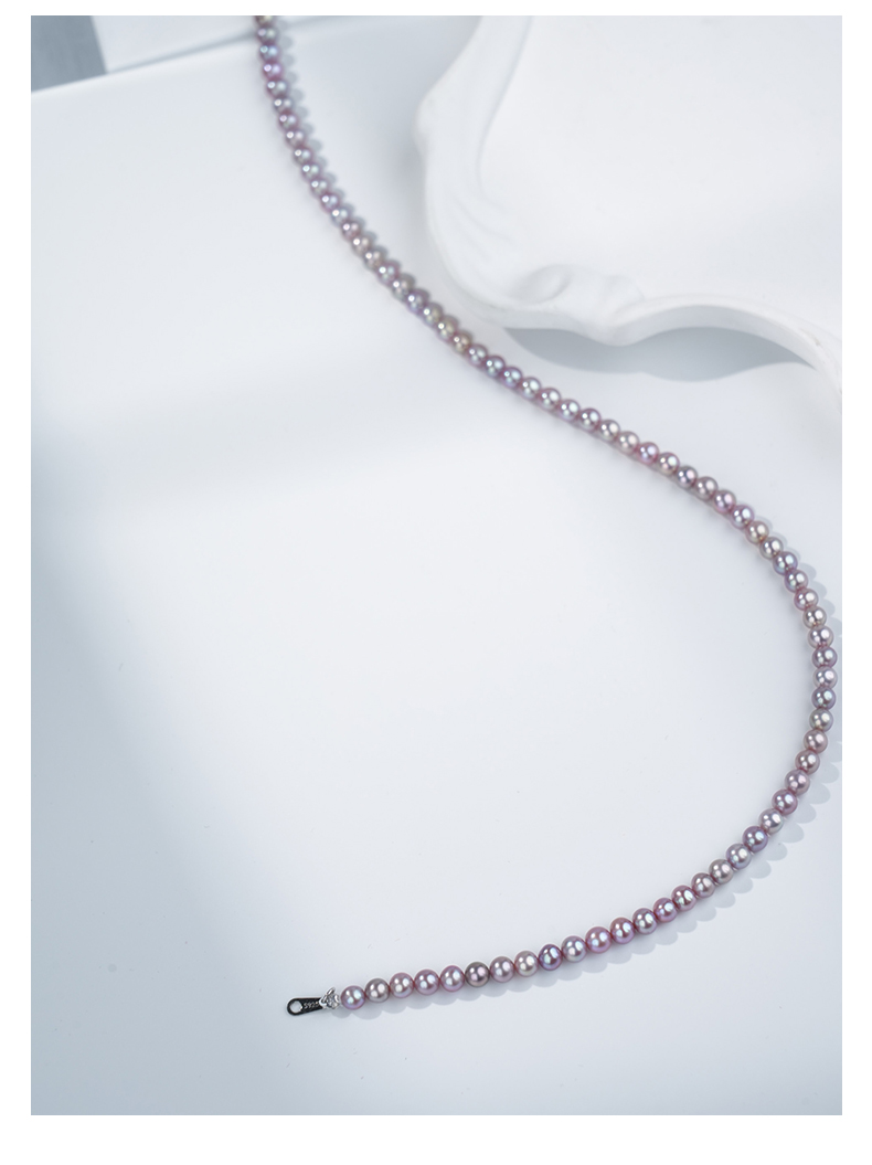 佐奈美(SANAMI) 魅力紫淡水小米珍珠项链,选用925银打造,搭配3.5-4.5mm近圆形紫色淡水珍珠,散发自然柔和光泽。