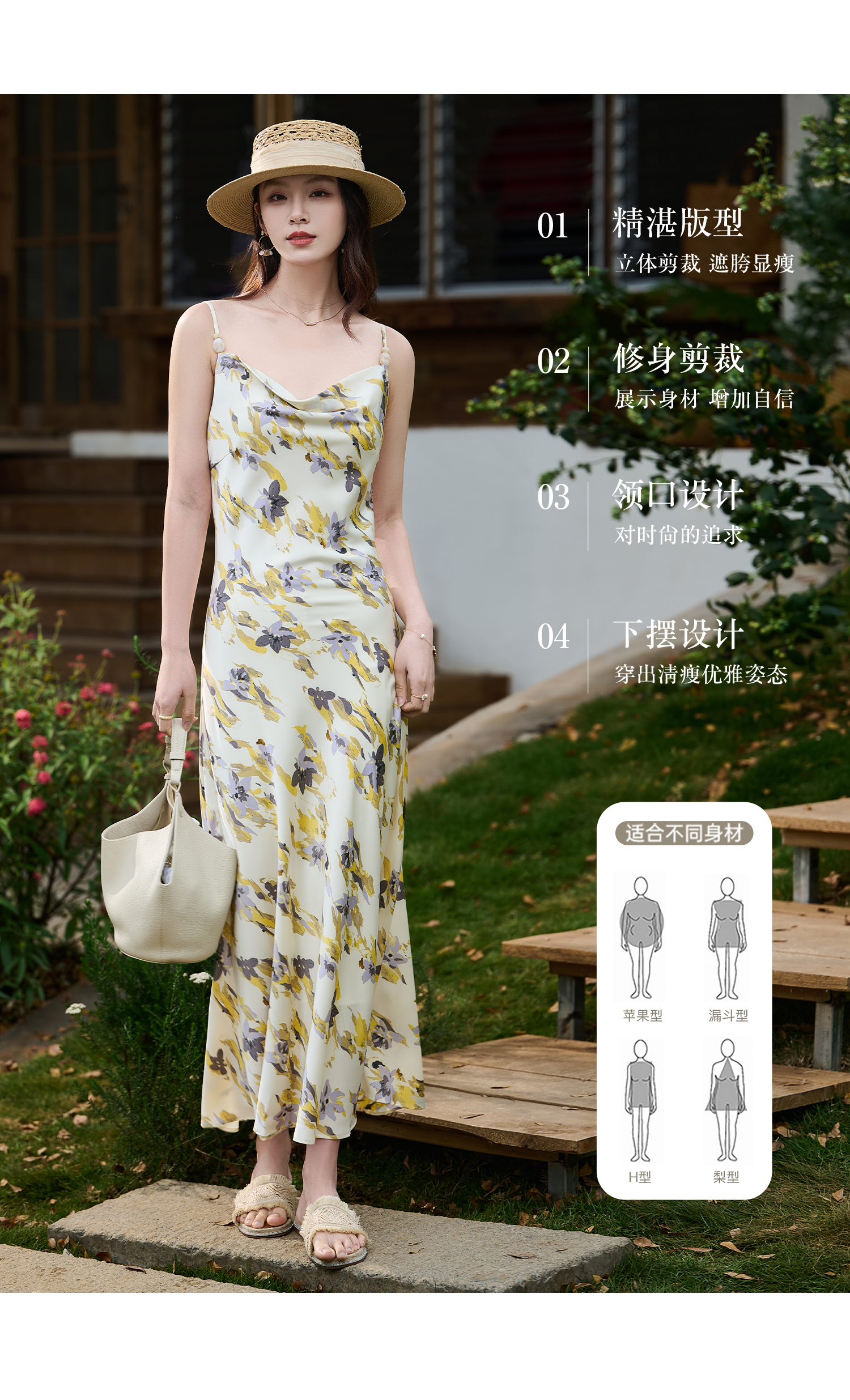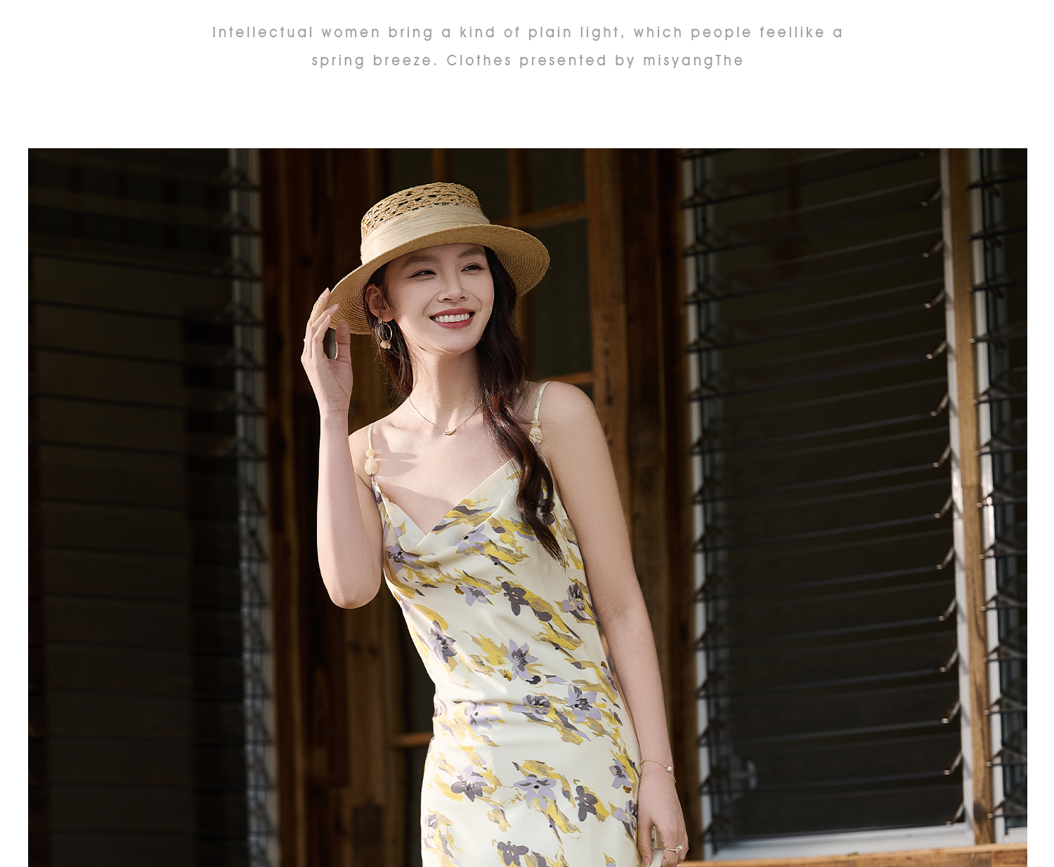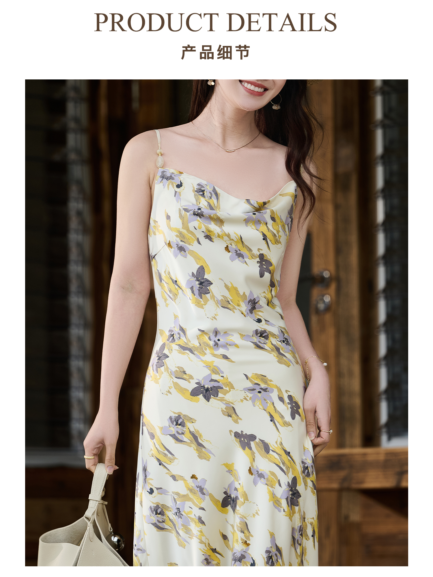 南法花园~舒适明媚 米思阳2026春夏新款度假风连衣裙修身立裁油画感印花吊带裙女2297
