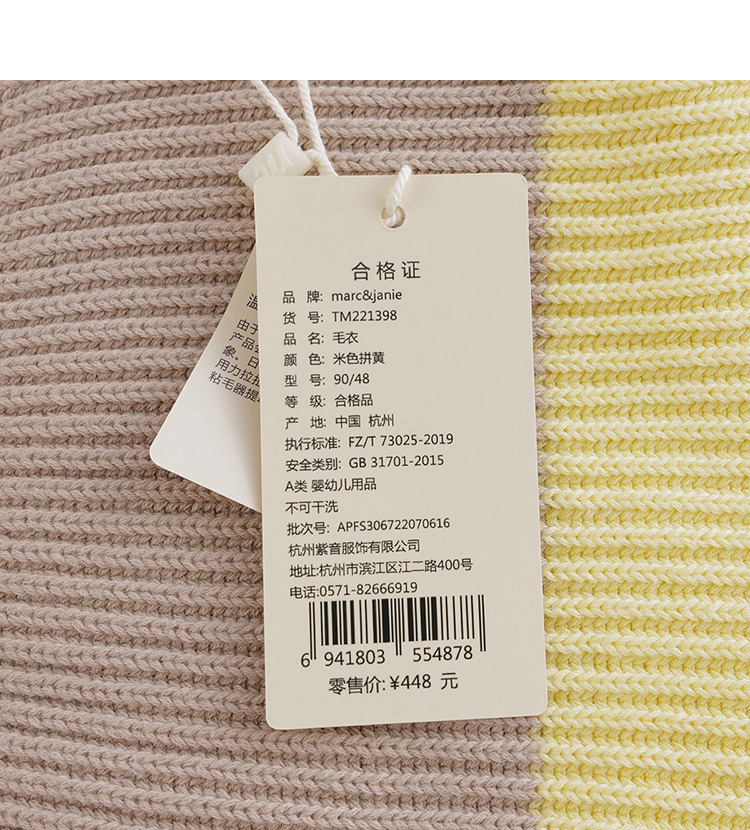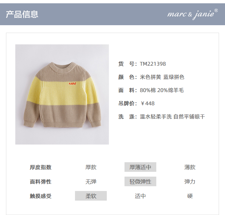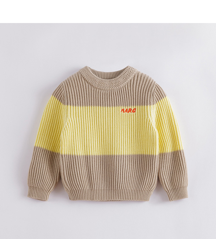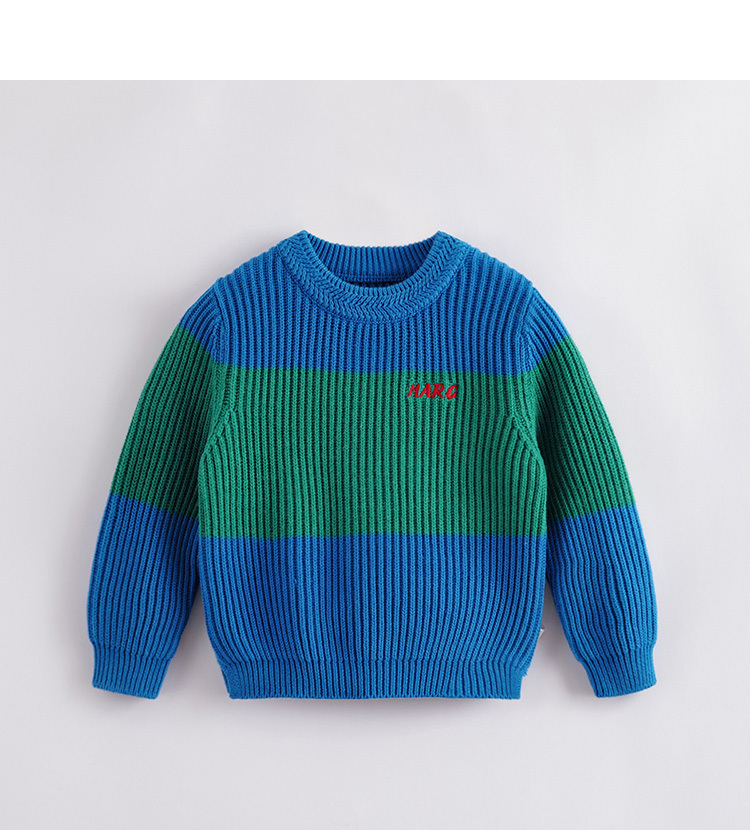 马克珍妮秋装新款 男童撞色拼接落肩毛衣 儿童毛衫221398