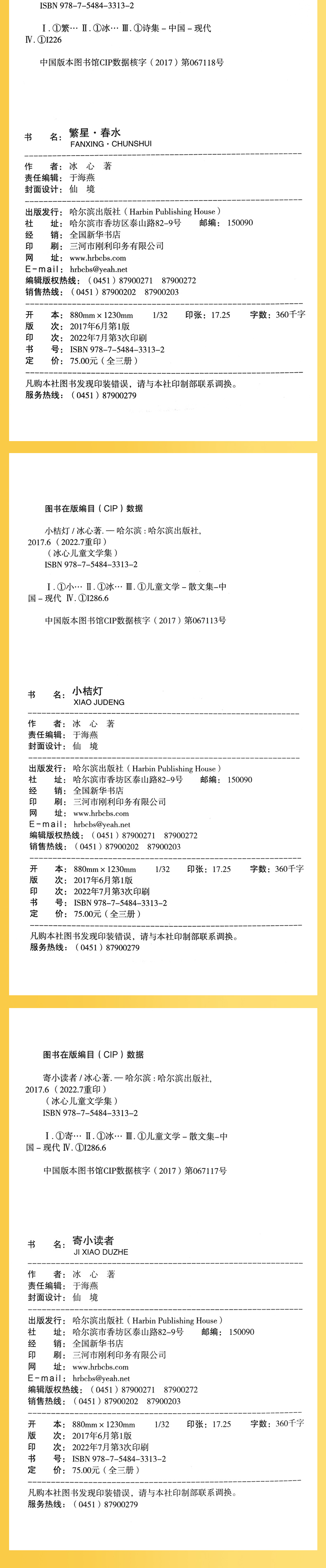 【书名】:《冰心儿童文学集》(全3册)