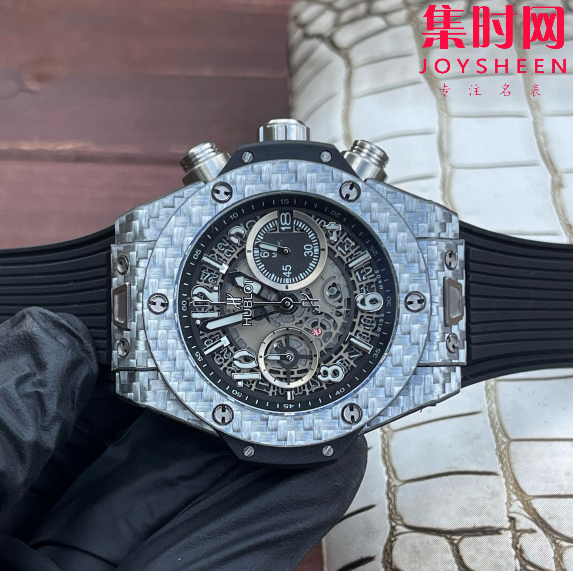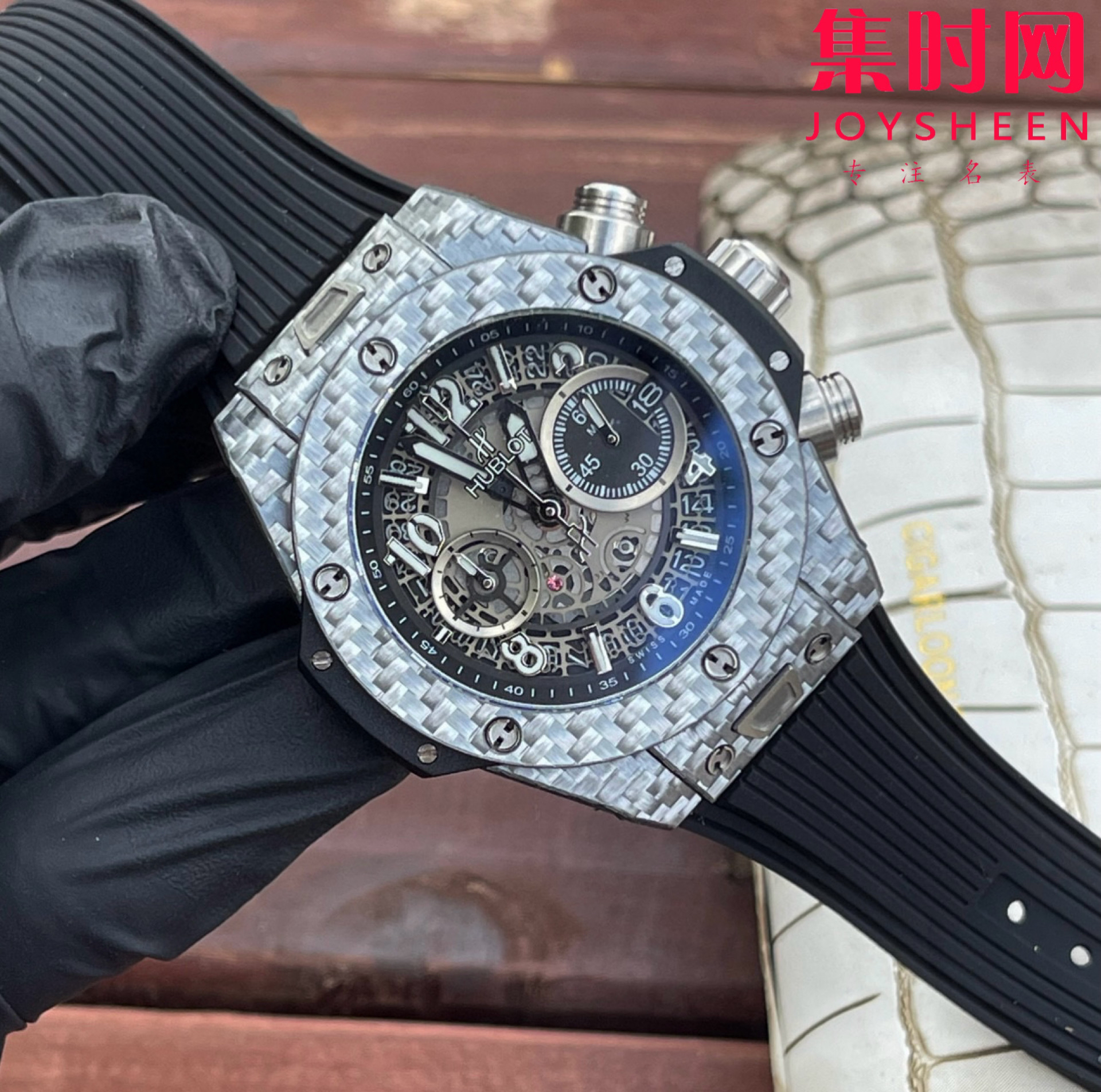 ❶表壳采用碳纤设计感爆炸