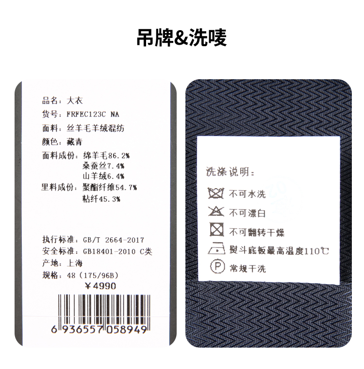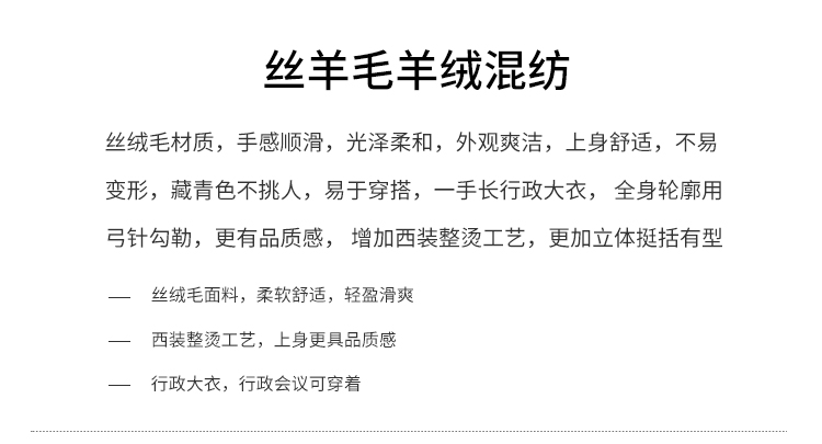 callisto藏青丝羊毛羊绒混纺大衣 FRFEC123C