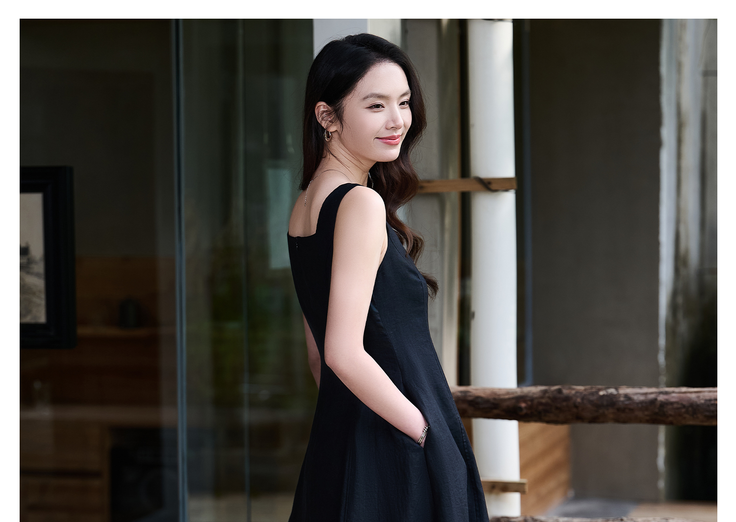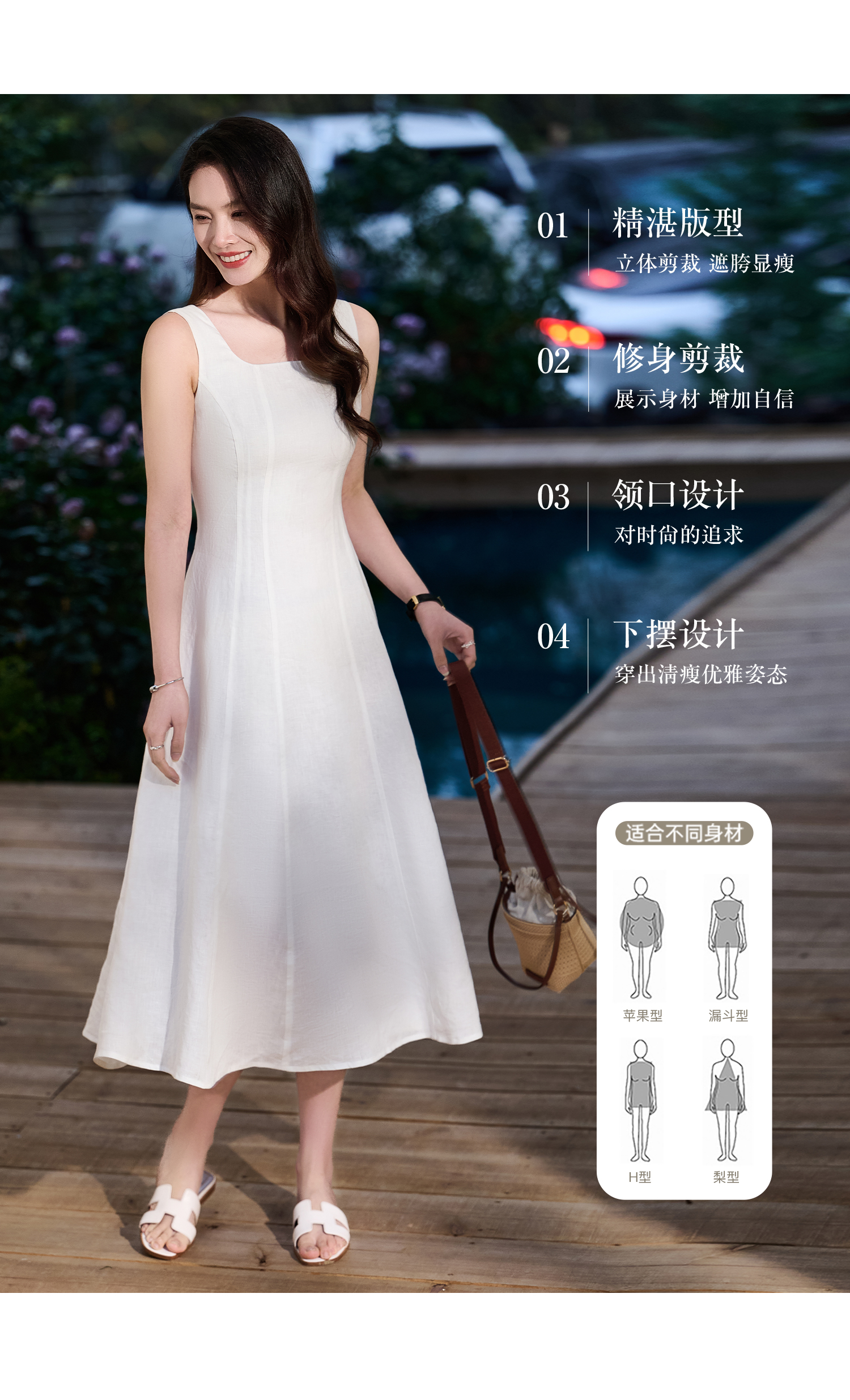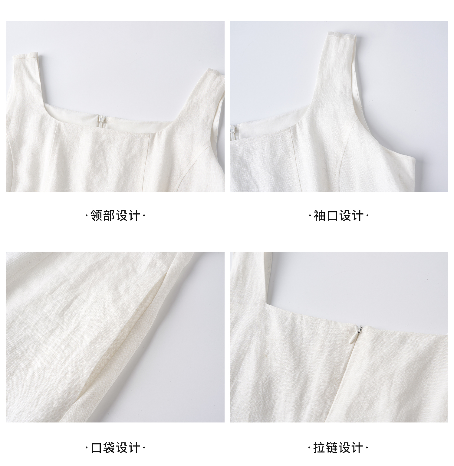 呼吸感亚麻裙 夏日的舒适感真的很重要!米思阳2026春夏新款法式方领吊带连衣裙女收腰气质小个子高腰内搭长裙6141