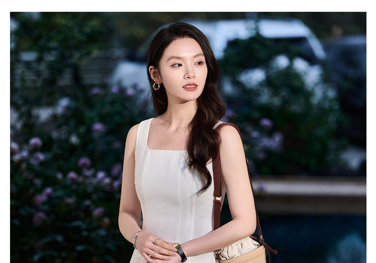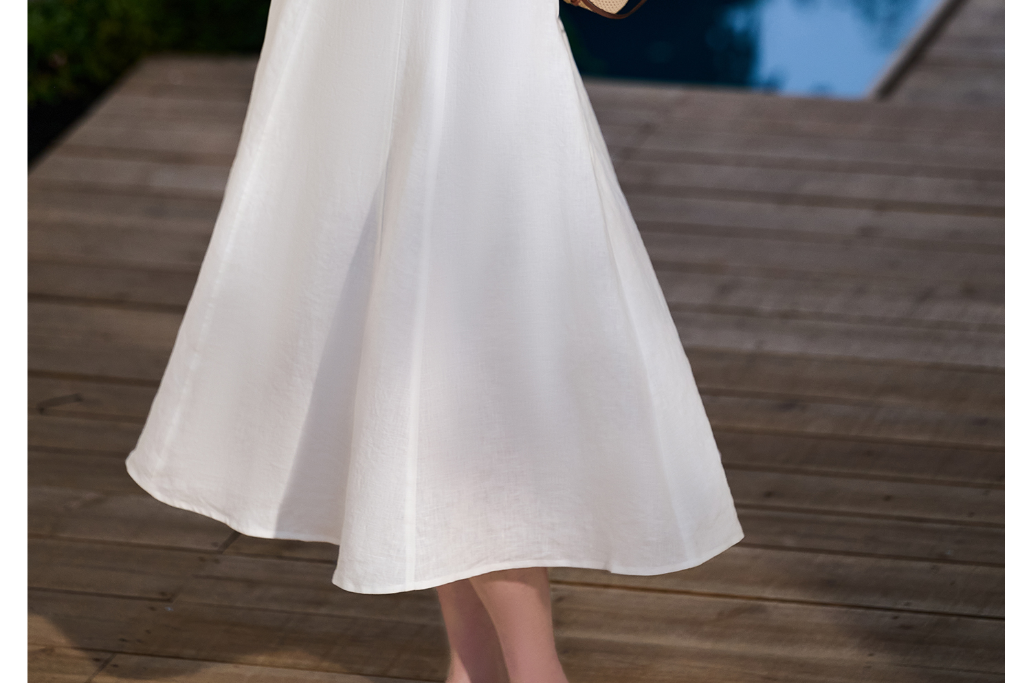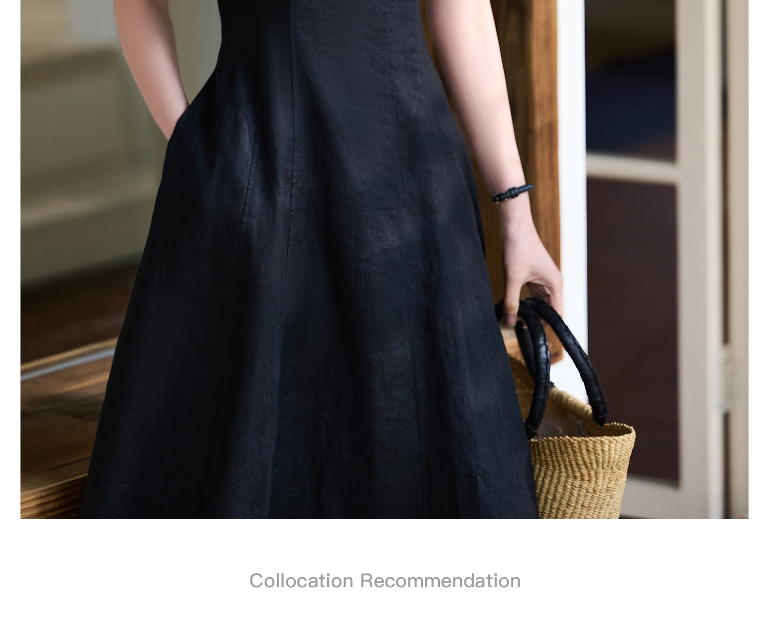 呼吸感亚麻裙 夏日的舒适感真的很重要!米思阳2026春夏新款法式方领吊带连衣裙女收腰气质小个子高腰内搭长裙6141
