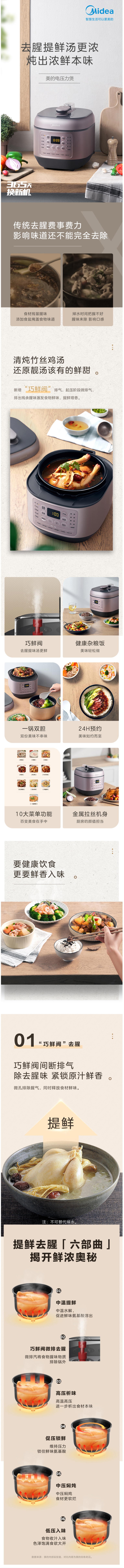 美的( Midea )电压力锅5升l大容量多功能一锅两煮双胆10大菜单 MY-EYL5041 5L