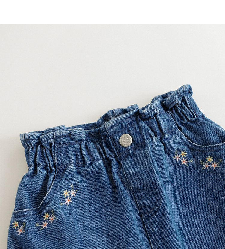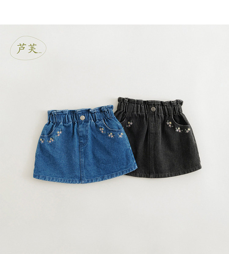 【马克珍妮 芦芙】女童花边腰刺绣小花牛仔短裙半身裙春款240130
