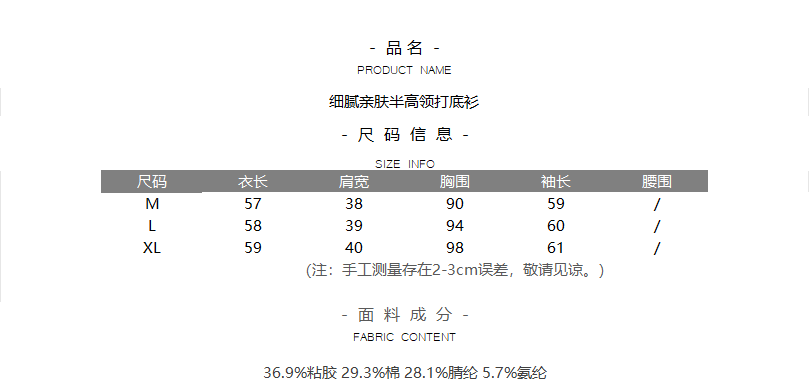 细腻亲肤半高领打底衫