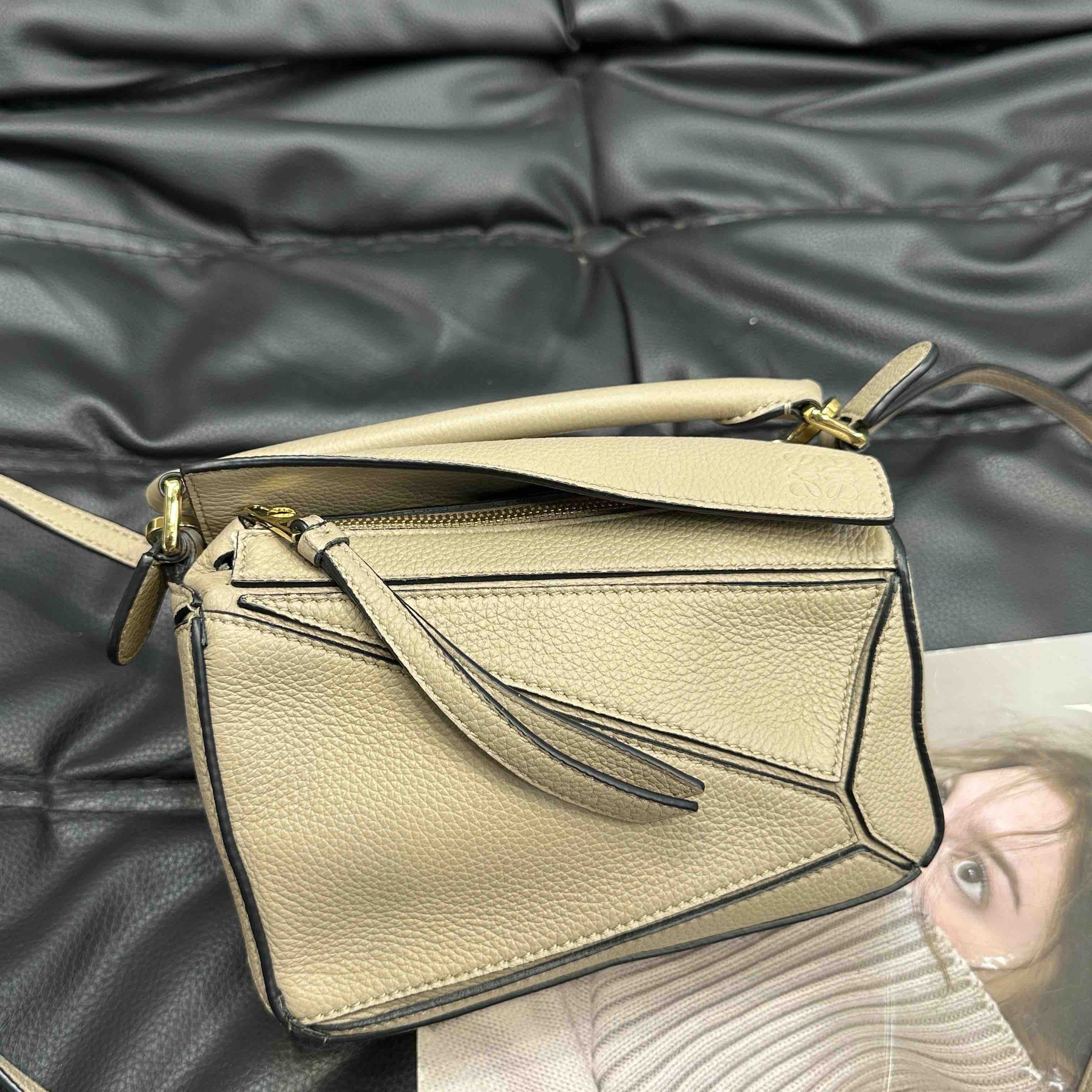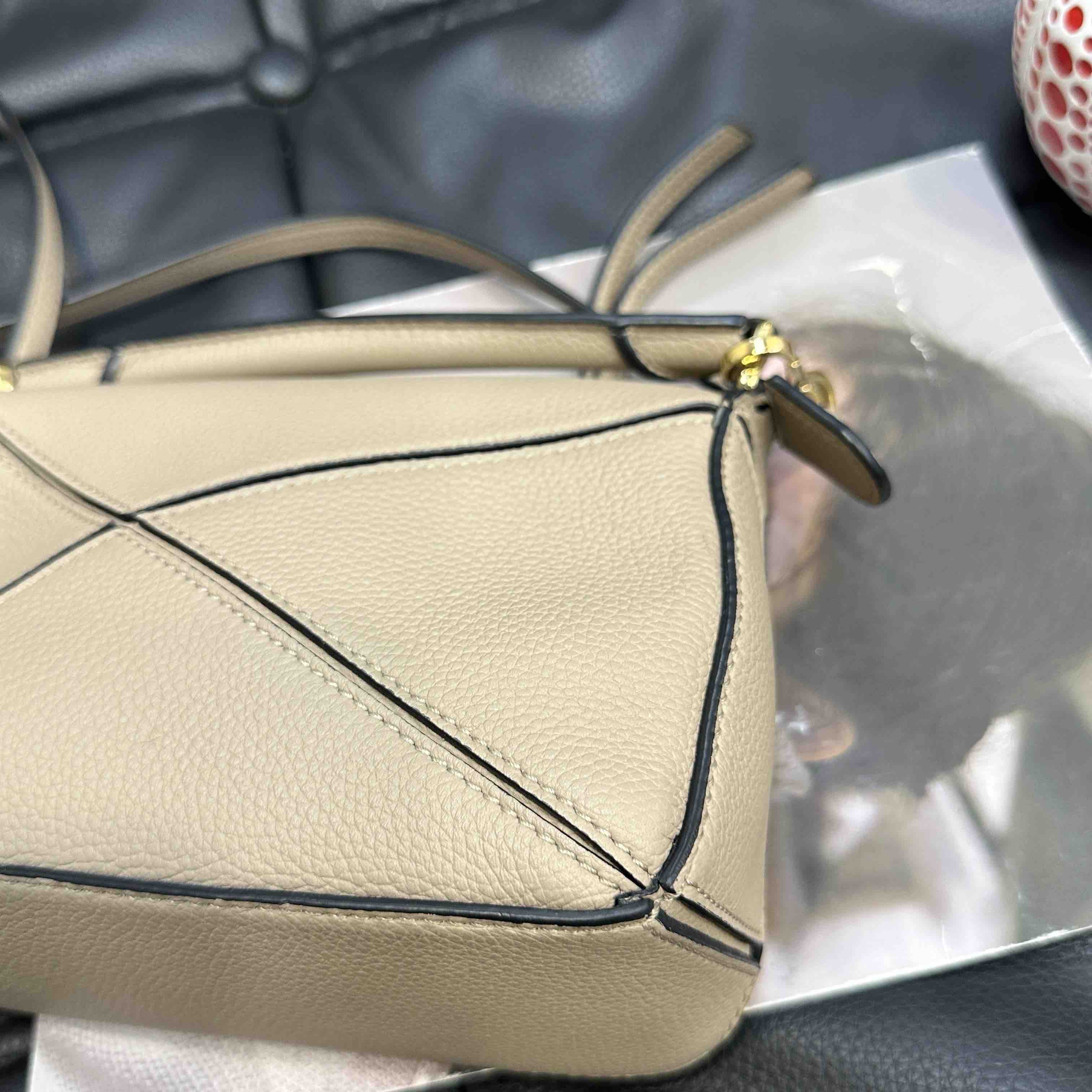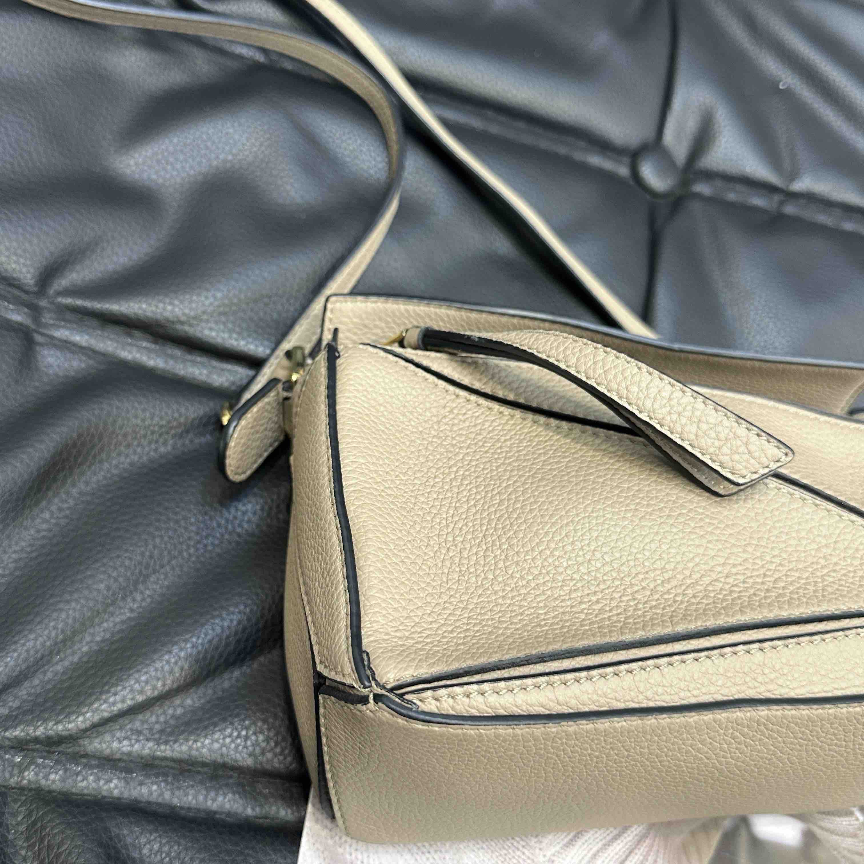 【商品详情】正品二手 罗意威 puzzle mini 沙色 牛皮 几何包 🥝 97新 17×11 配件:肩带。包型有塌陷褶皱 其他状态良好