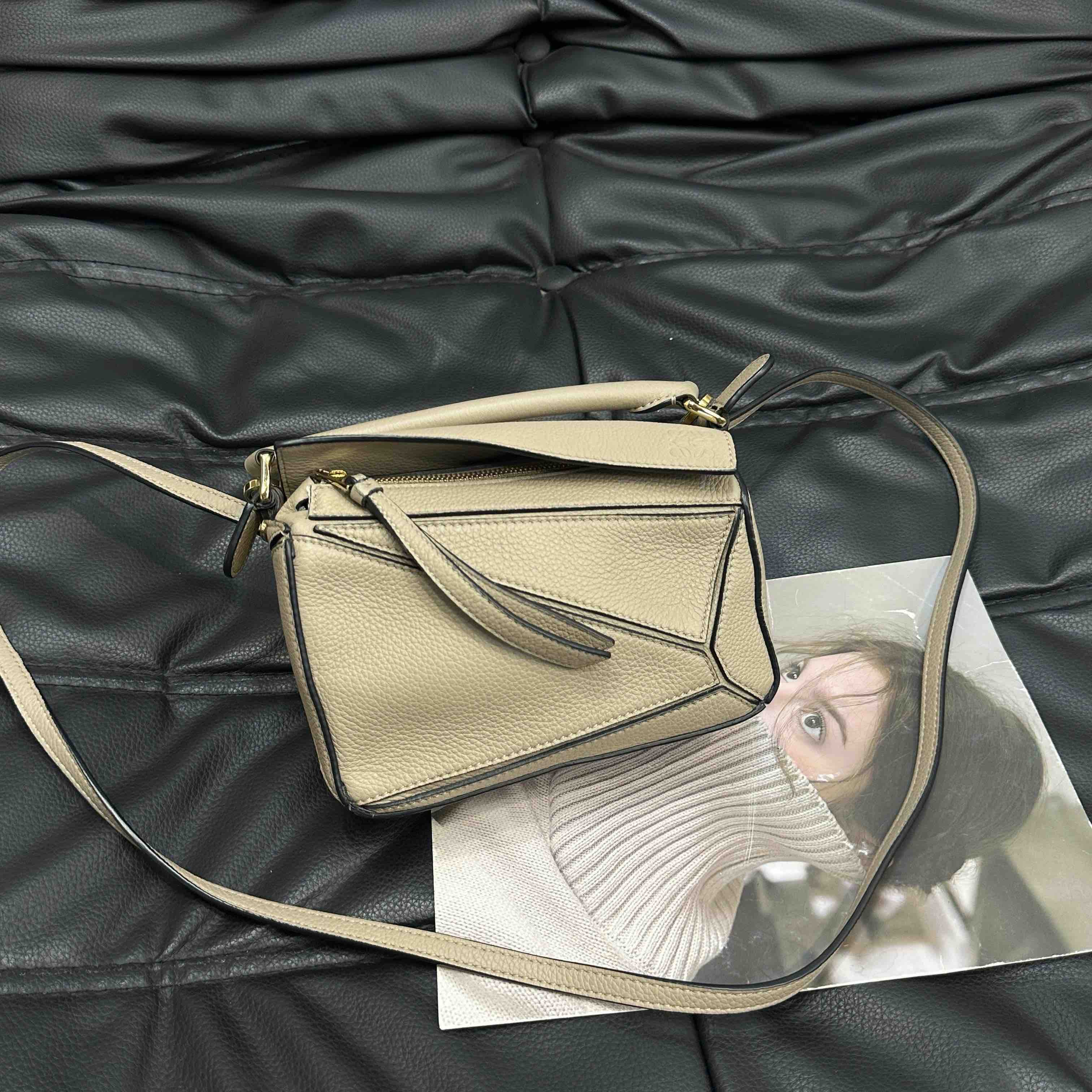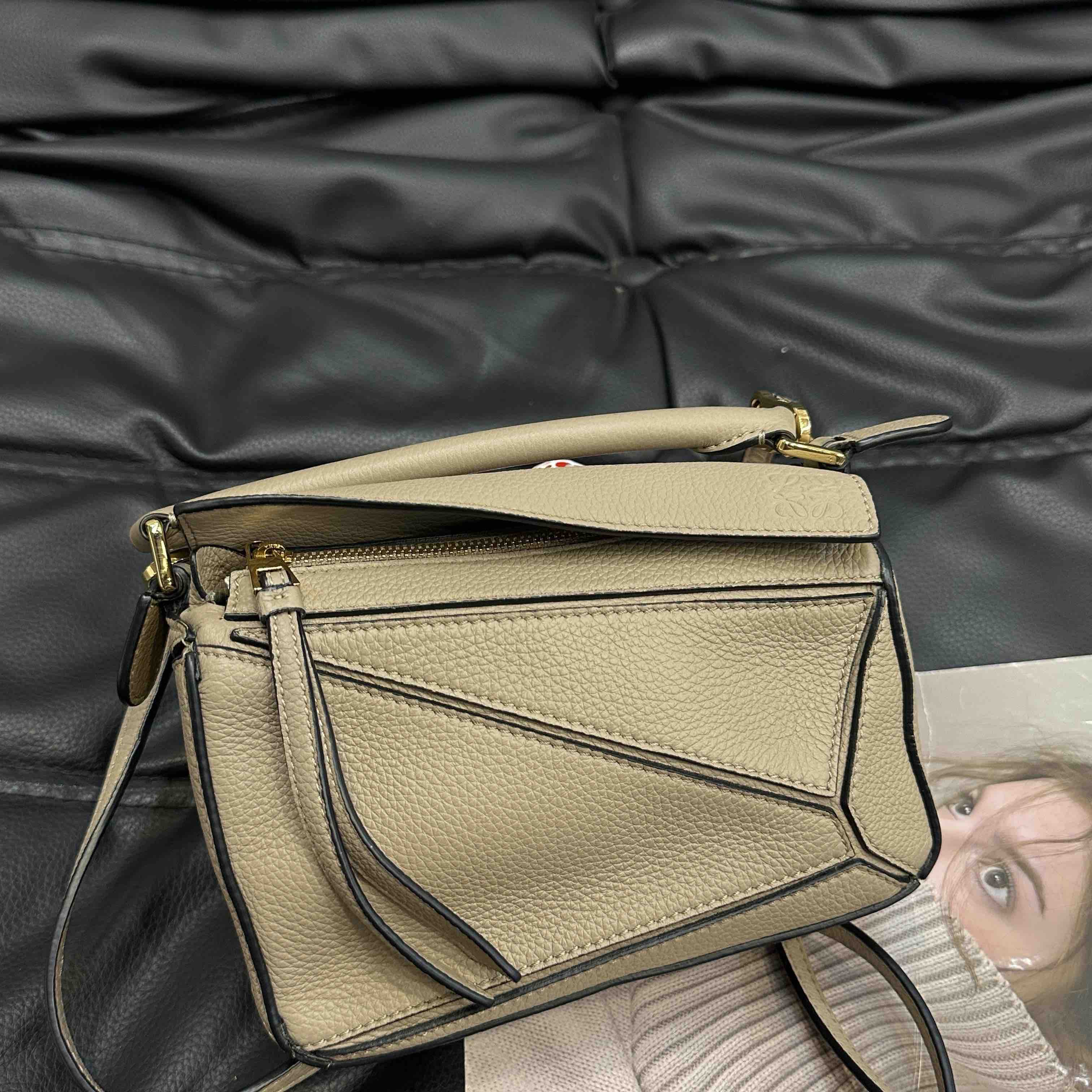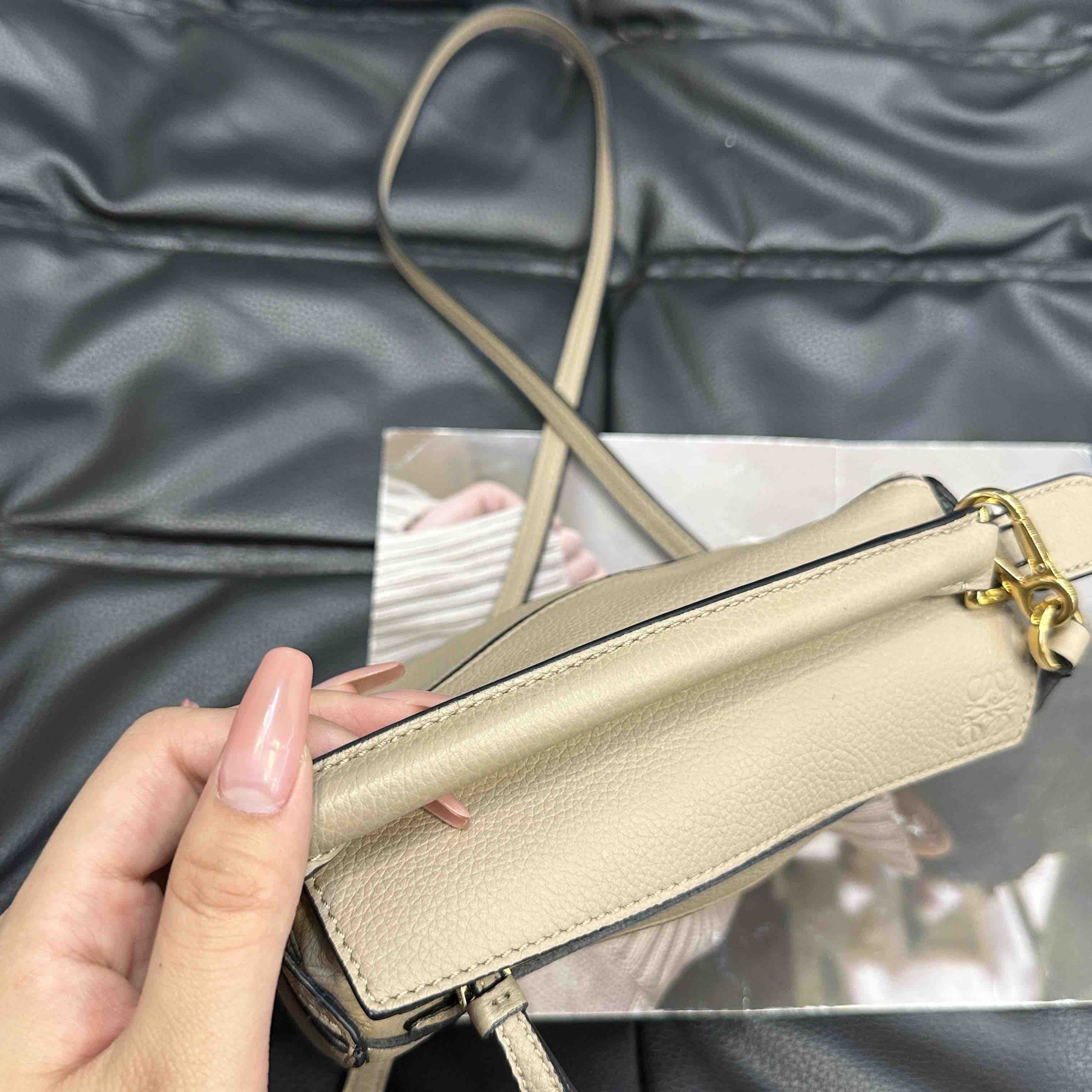 【商品详情】正品二手 罗意威 puzzle mini 沙色 牛皮 几何包 🥝 97新 17×11 配件:肩带。包型有塌陷褶皱 其他状态良好