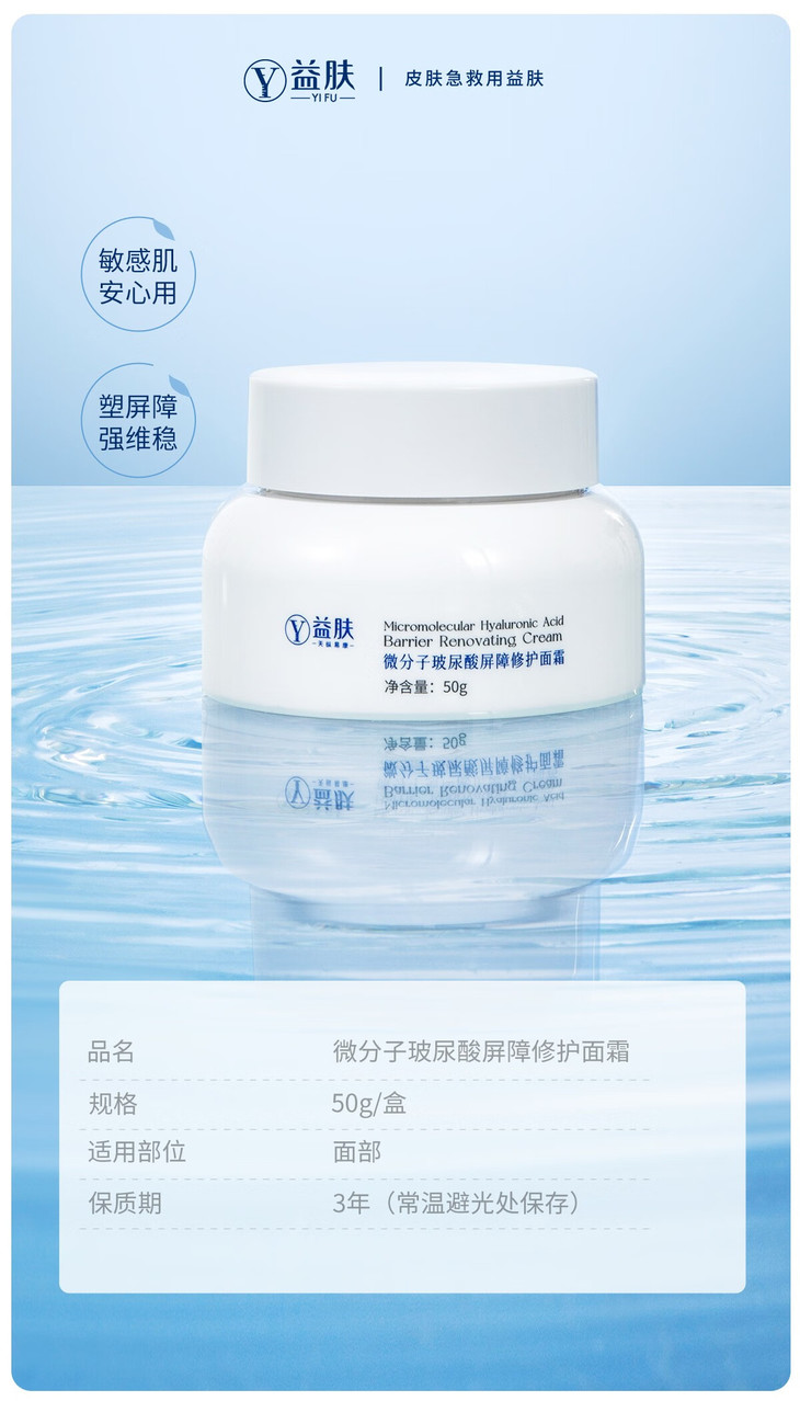 益肤微分子玻尿酸屏障修护面霜50g补水保湿舒缓敏肌厚筑屏障