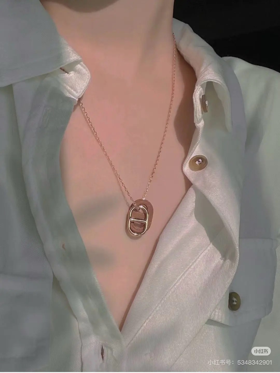 【商品详情】正品二手 爱马仕 O‘Maillon 猪鼻子 项链🤔97新 49cm 配件:盒子。日常配搭超合适。