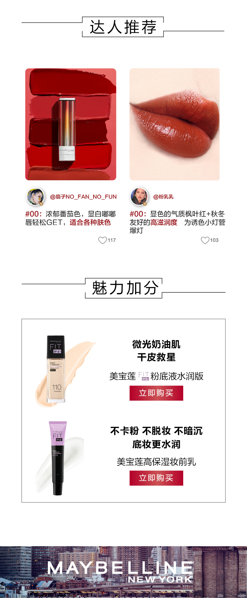 【百亿补贴】美宝莲星钻小灯管口红女持久保湿滋润显白土橘烂番茄JPY带授权招加盟代理
