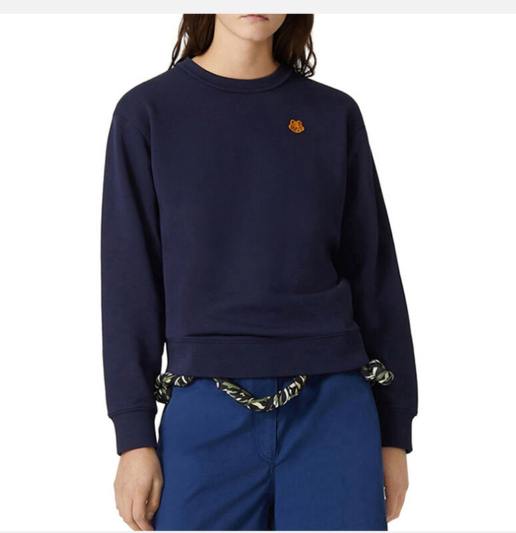 KENZO 高田贤三 女士小虎头徽标贴花棉质长袖卫衣 深蓝色 FB52 SW820 4ML 76