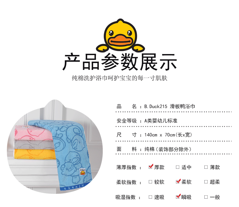 B.Duck小黄鸭滑板鸭提花大浴巾140*70cm 215