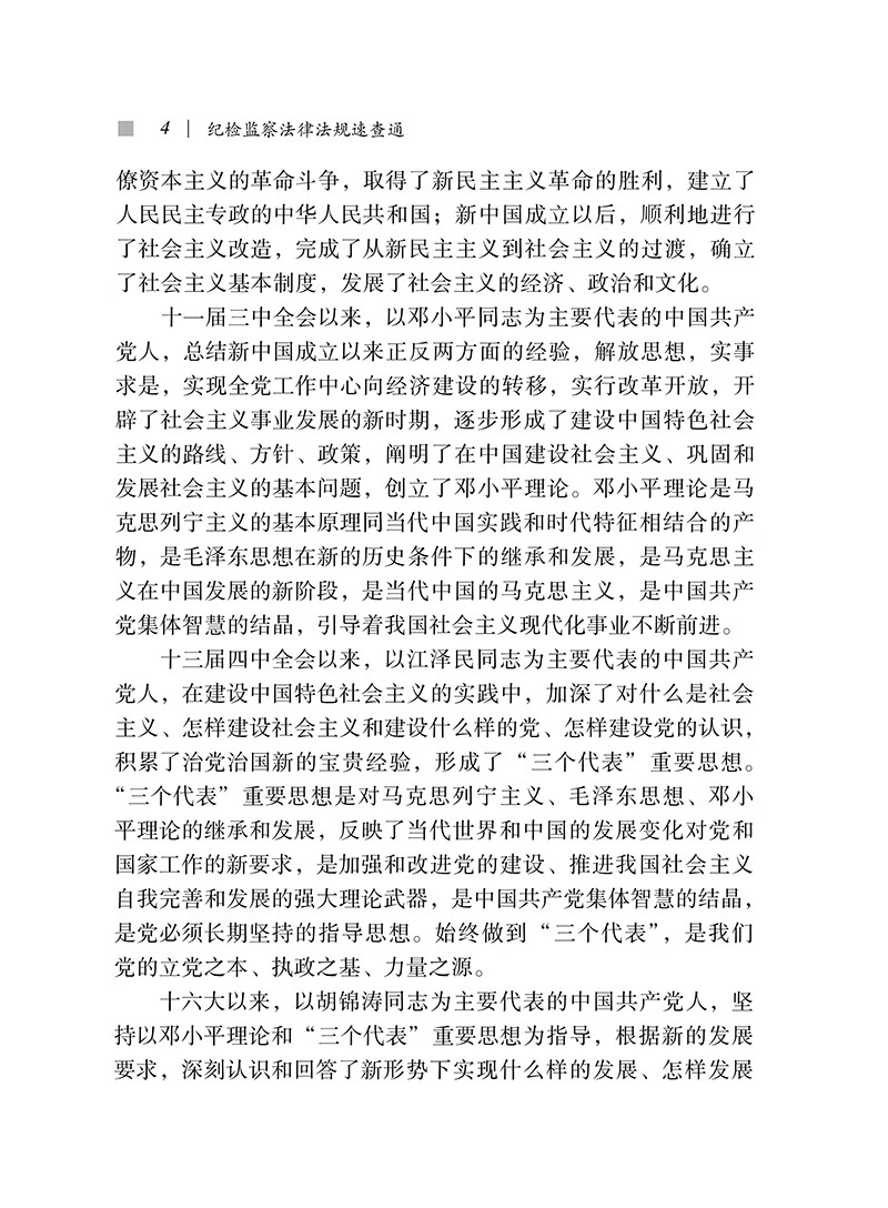十三届四中全会以来,以江泽民同志为主要代表的中国共产党人,在建设中国特色社会主义的实践中,加深了对什么是社会主义、怎样建设社会主义和建设什么样的党、怎样建设党的认识,积累了治党治国新的宝贵经验,形成了“三个代表”重要思想。“三个代表”重要思想是对马克思列宁主义、毛泽东思想、邓小平理论的继承和发展,反映了当代世界和中国的发展变化对党和国家工作的新要求,是加强和改进党的建设、推进我国社会主义自我完善和发展的强大理论武器,是中国共产党集体智慧的结晶,是党必须长期坚持的指导思想。始终做到“三个代表”,是我们党的立党之本、执政之基、力量之源。