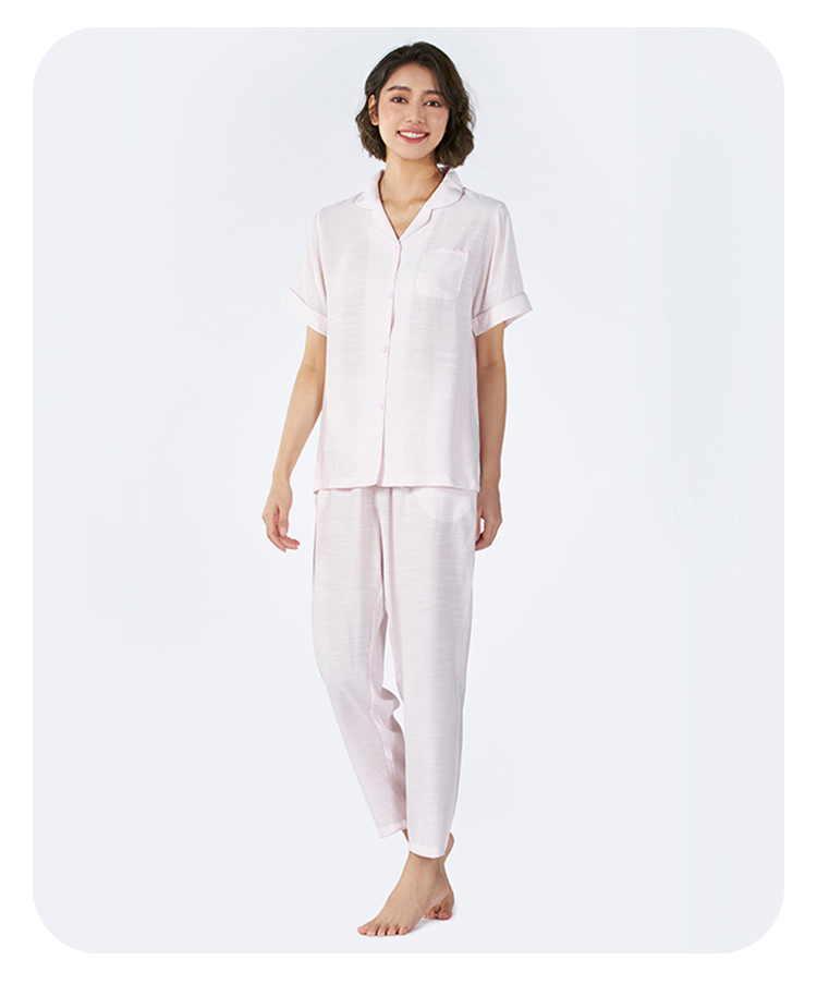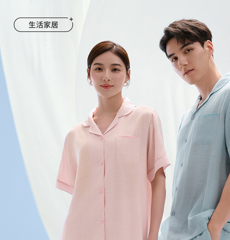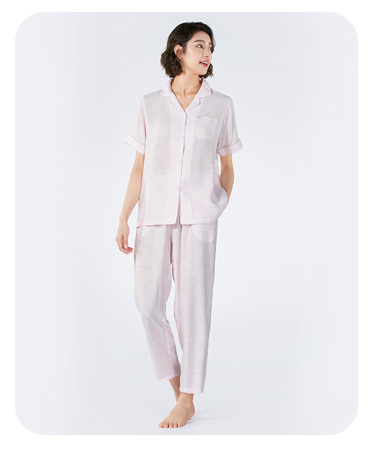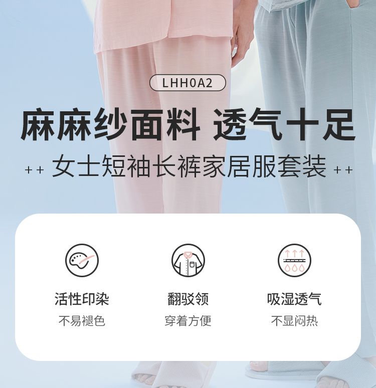 都市丽人女士梭织棉短袖套装薄麻麻纱亲情蜜语短袖家居服LHH0A2