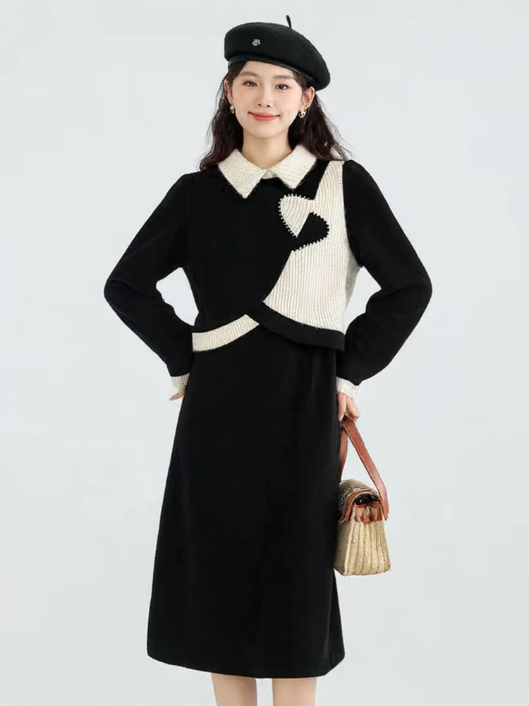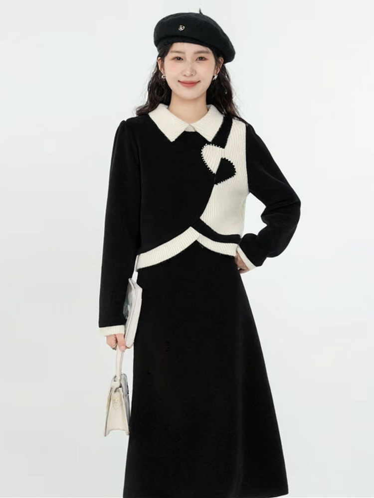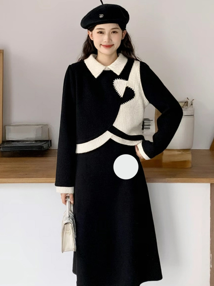 奢姿大码女装2025冬季时尚拼撞色翻领针织套装胖妹妹显瘦两件套9954954042