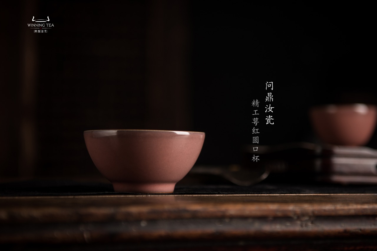 问鼎汝瓷萼红精工圆口杯景德镇陶瓷手工复古茶杯礼盒装汝瓷