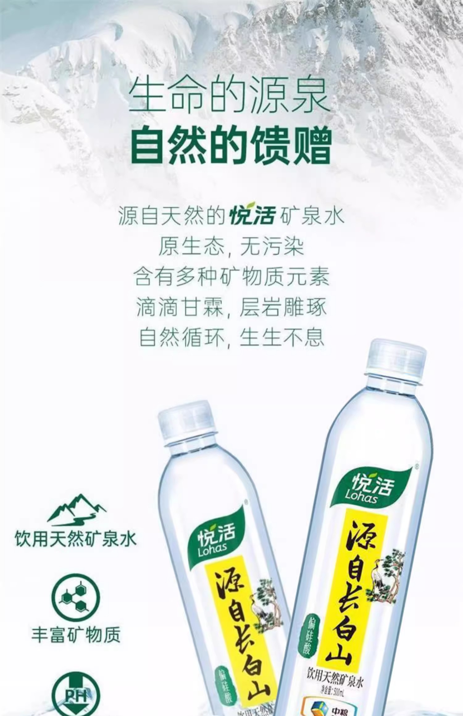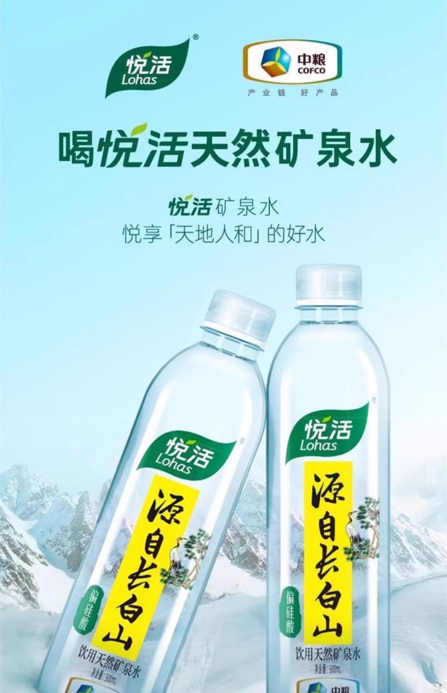 中粮悦活天然长白山饮用水矿泉水500ml