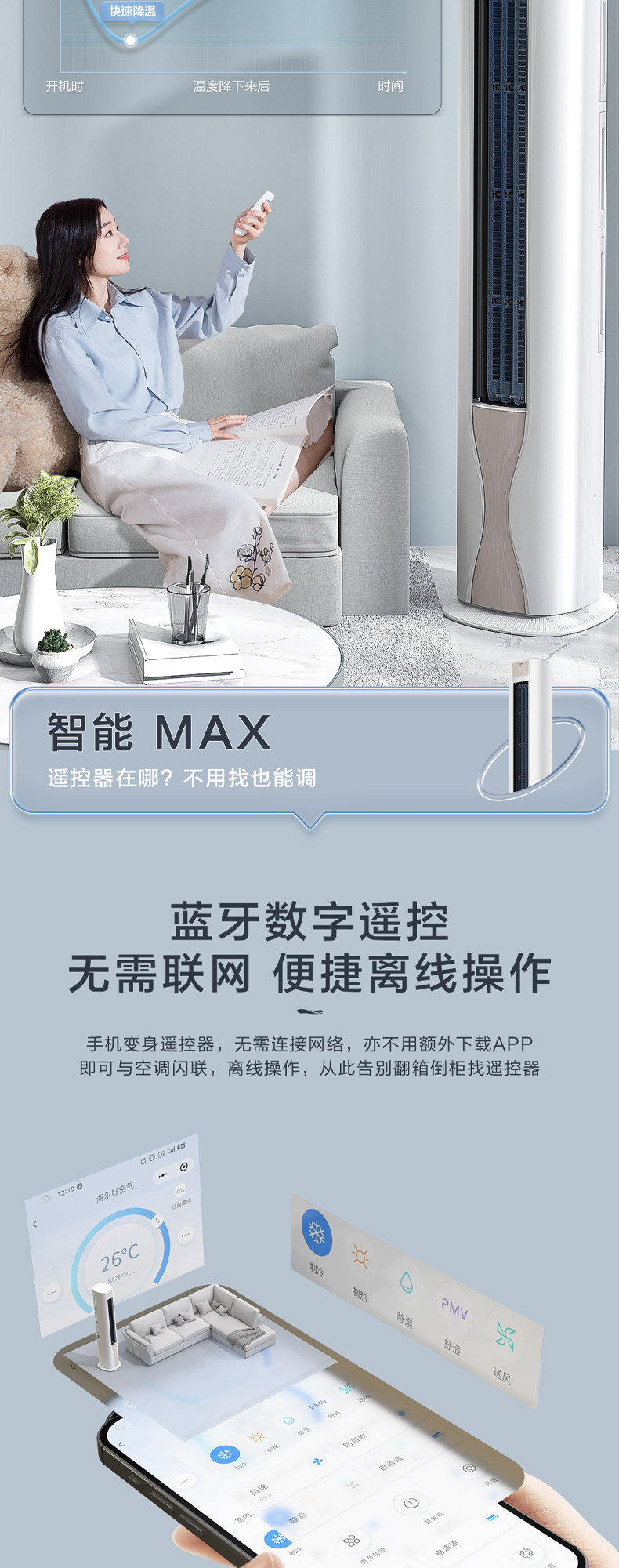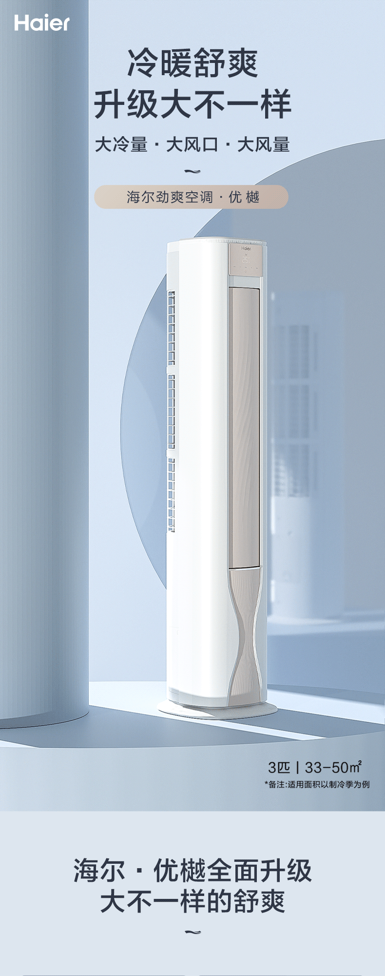 海尔 3匹 【KFR-72LWA1FAB81U1】新一级变频 防直吹除菌自清洁柜机空调