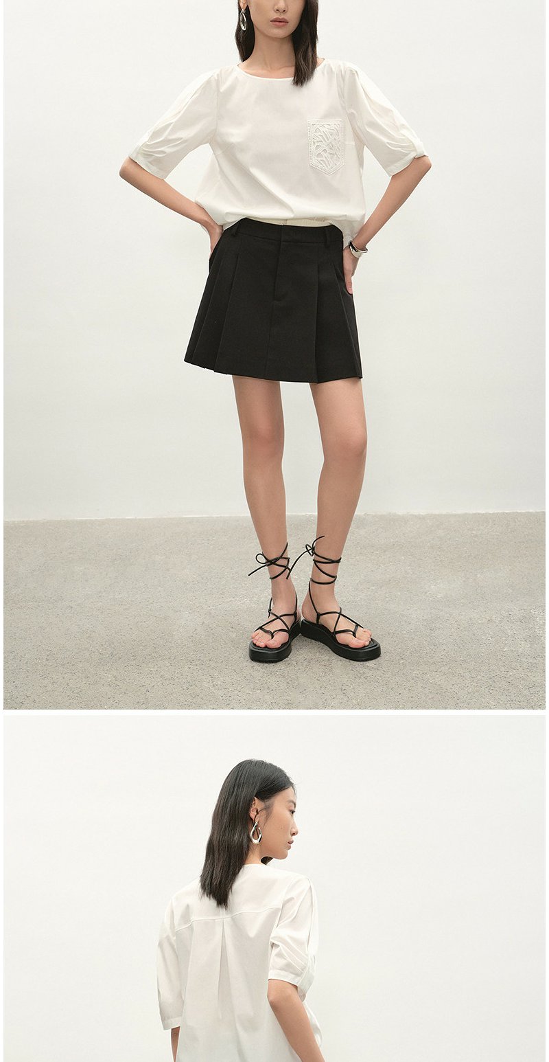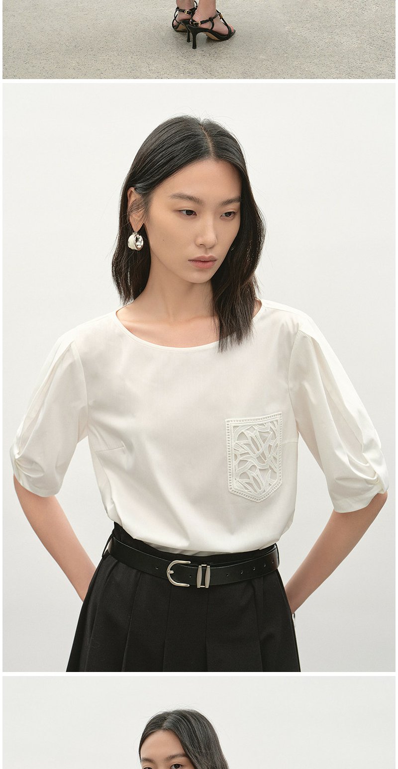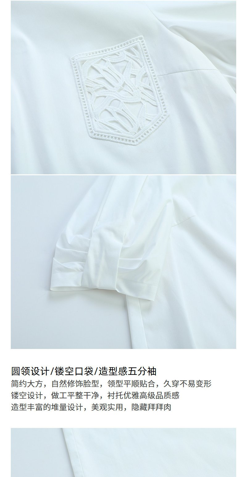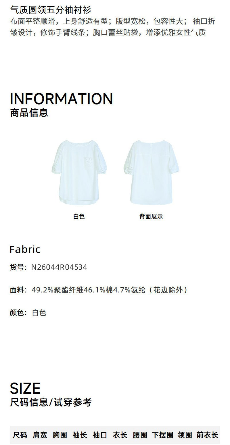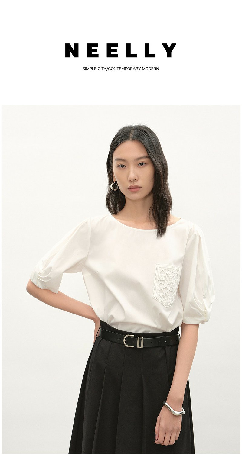 NEELLY纳俪商场同款夏季新款简约圆领五分袖衬衫女百搭透气上衣N26044R04534
