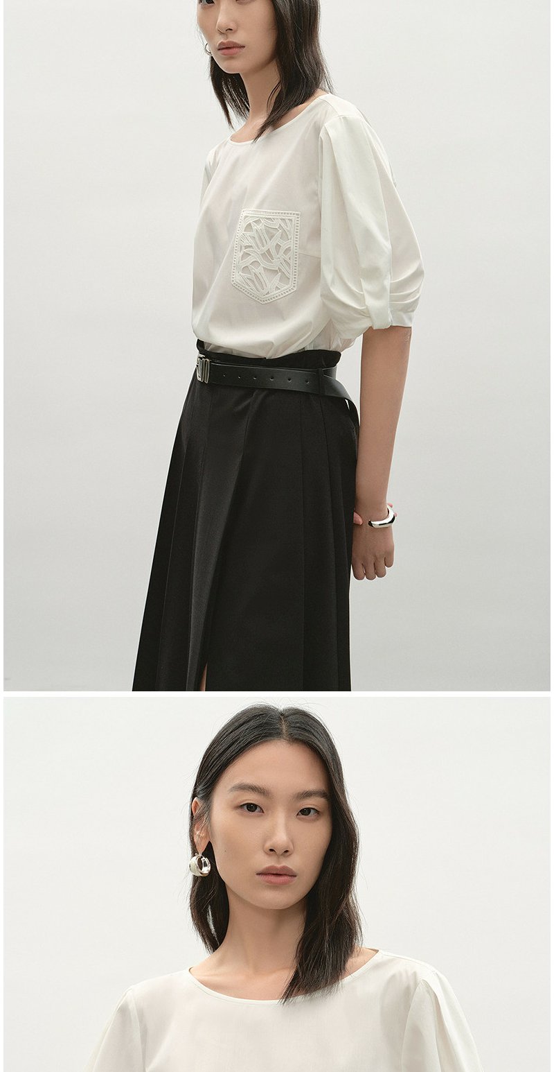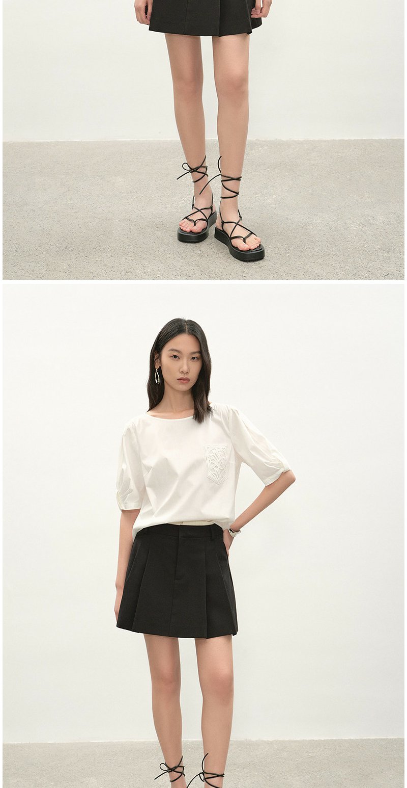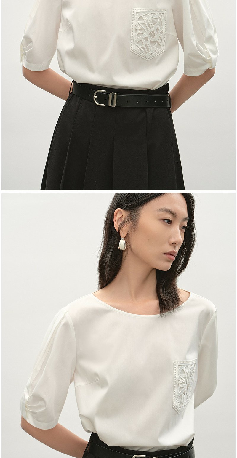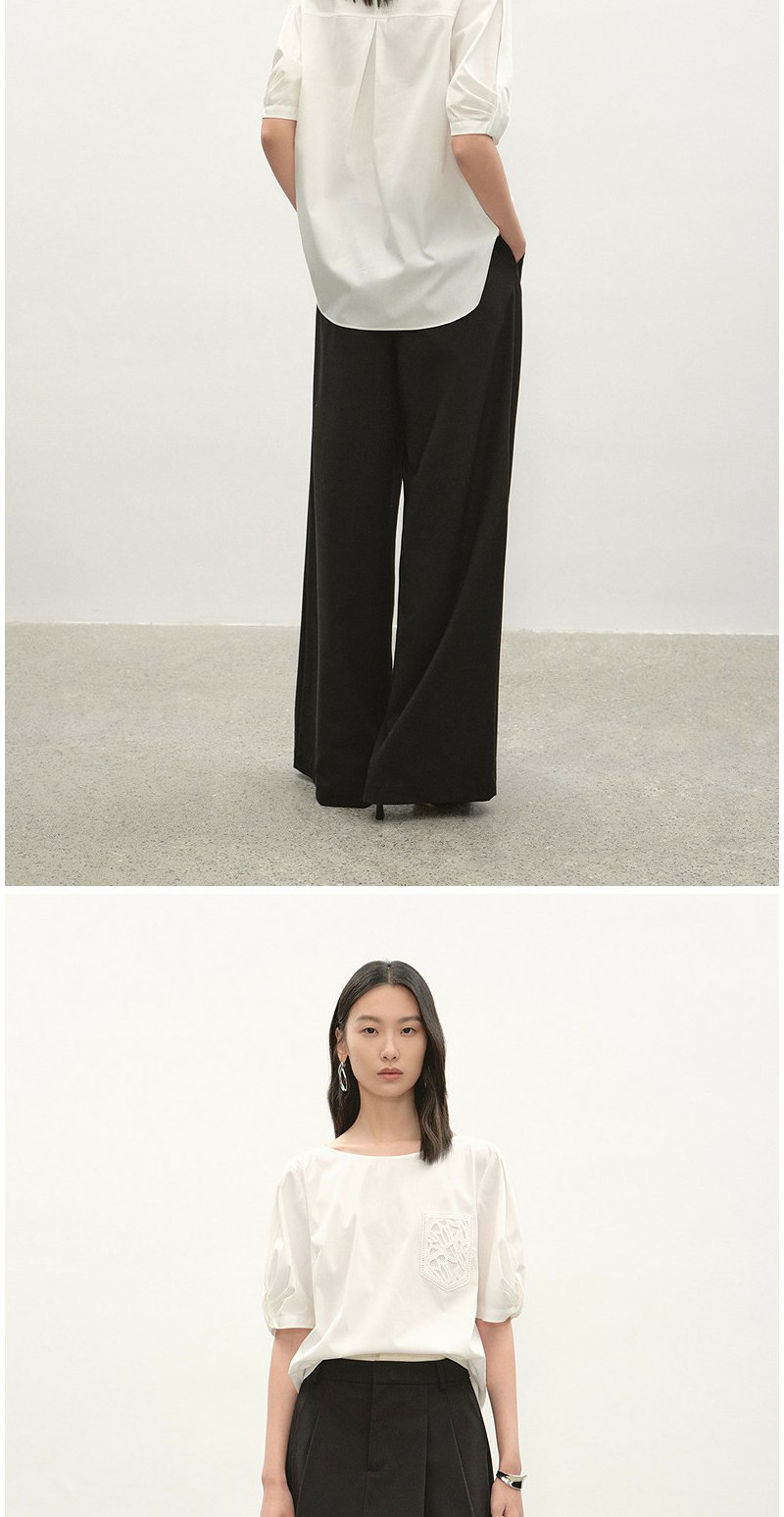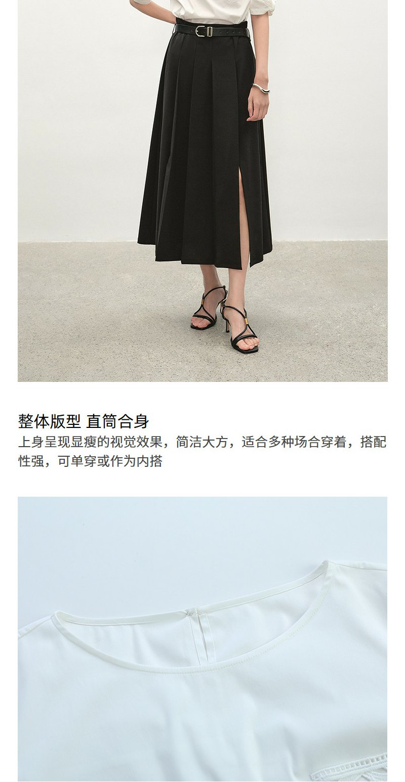 NEELLY纳俪商场同款夏季新款简约圆领五分袖衬衫女百搭透气上衣N26044R04534
