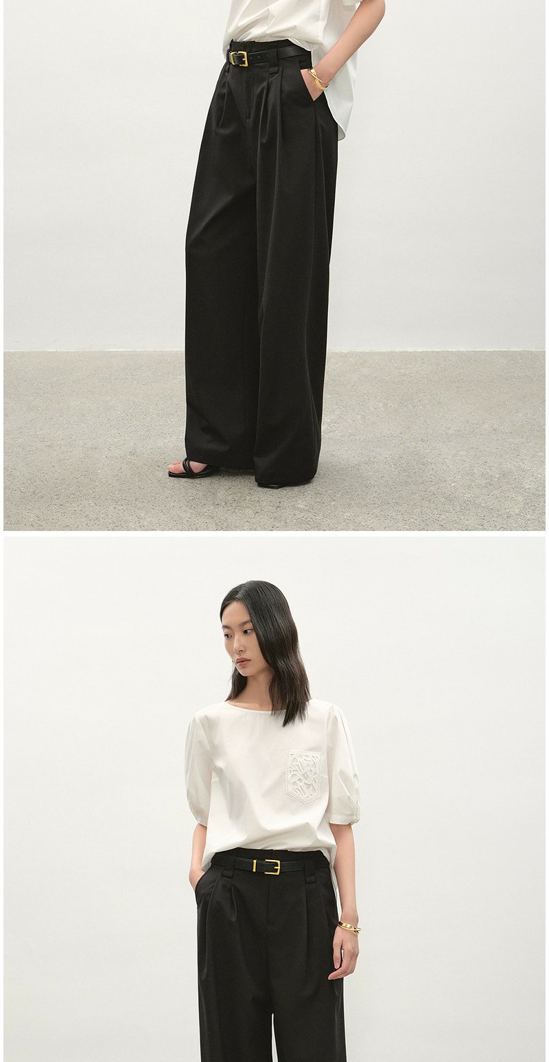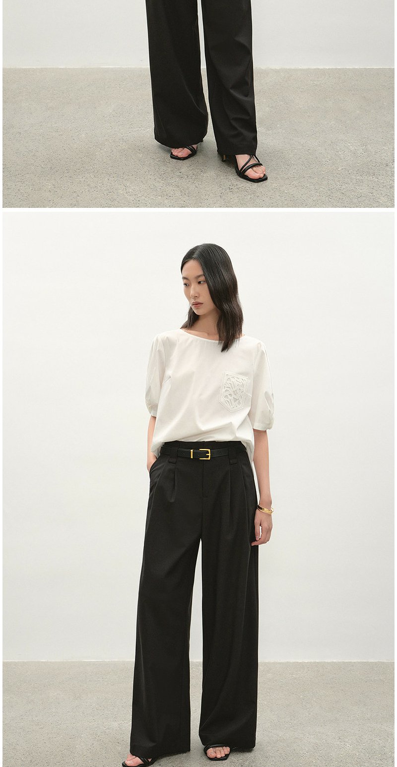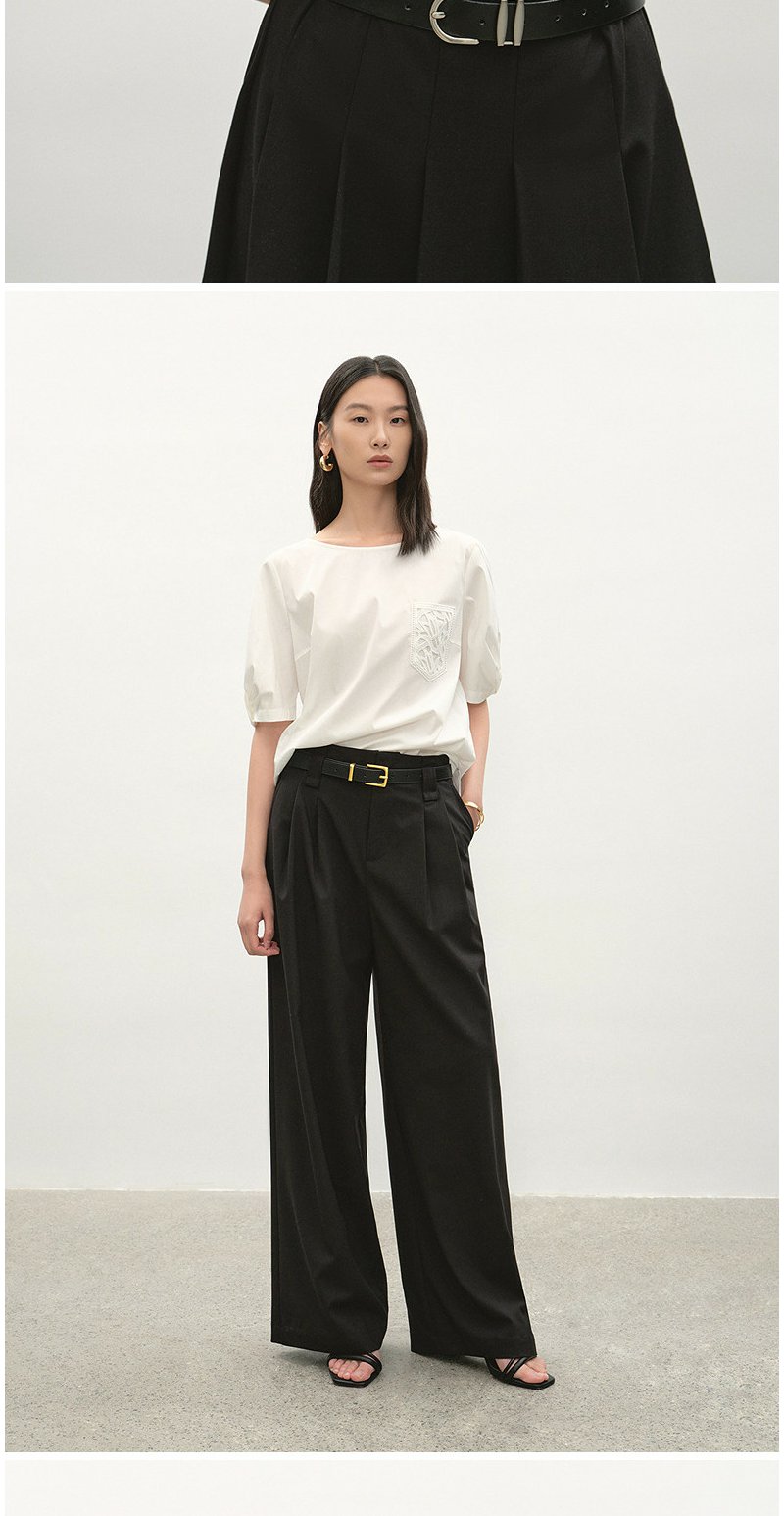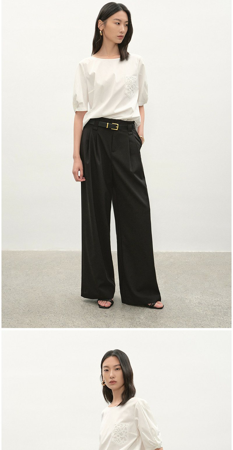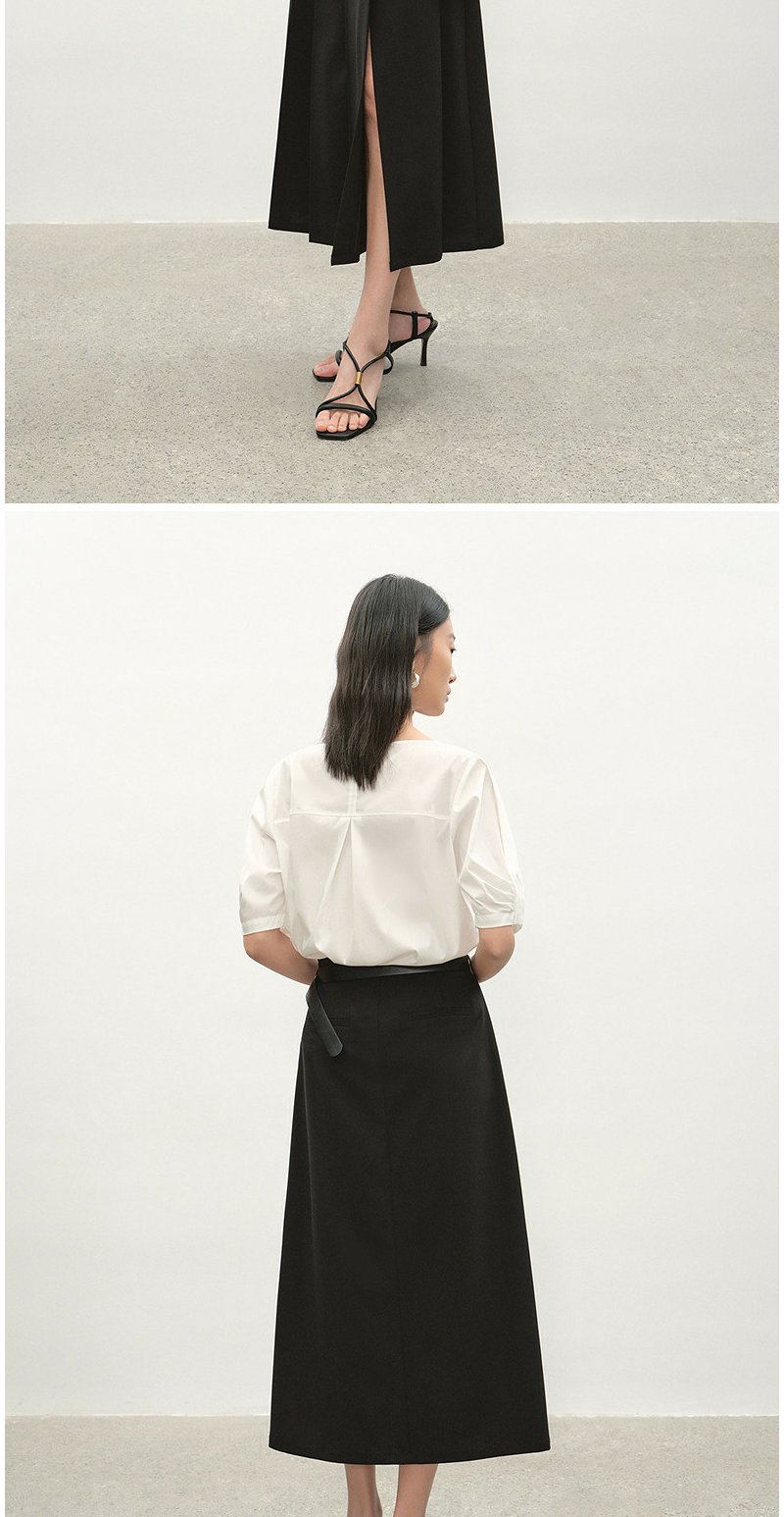 NEELLY纳俪商场同款夏季新款简约圆领五分袖衬衫女百搭透气上衣N26044R04534