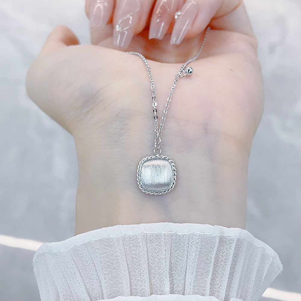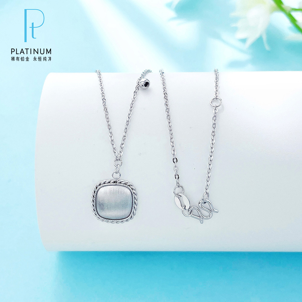 【限时8.8折】【线上铂金馆】PT950 #小方糖 【国际铂金协会】铂金实心拉丝面包几何方块套链(BTL00367)预售产品下单后不退款不退货不换货不补差价)