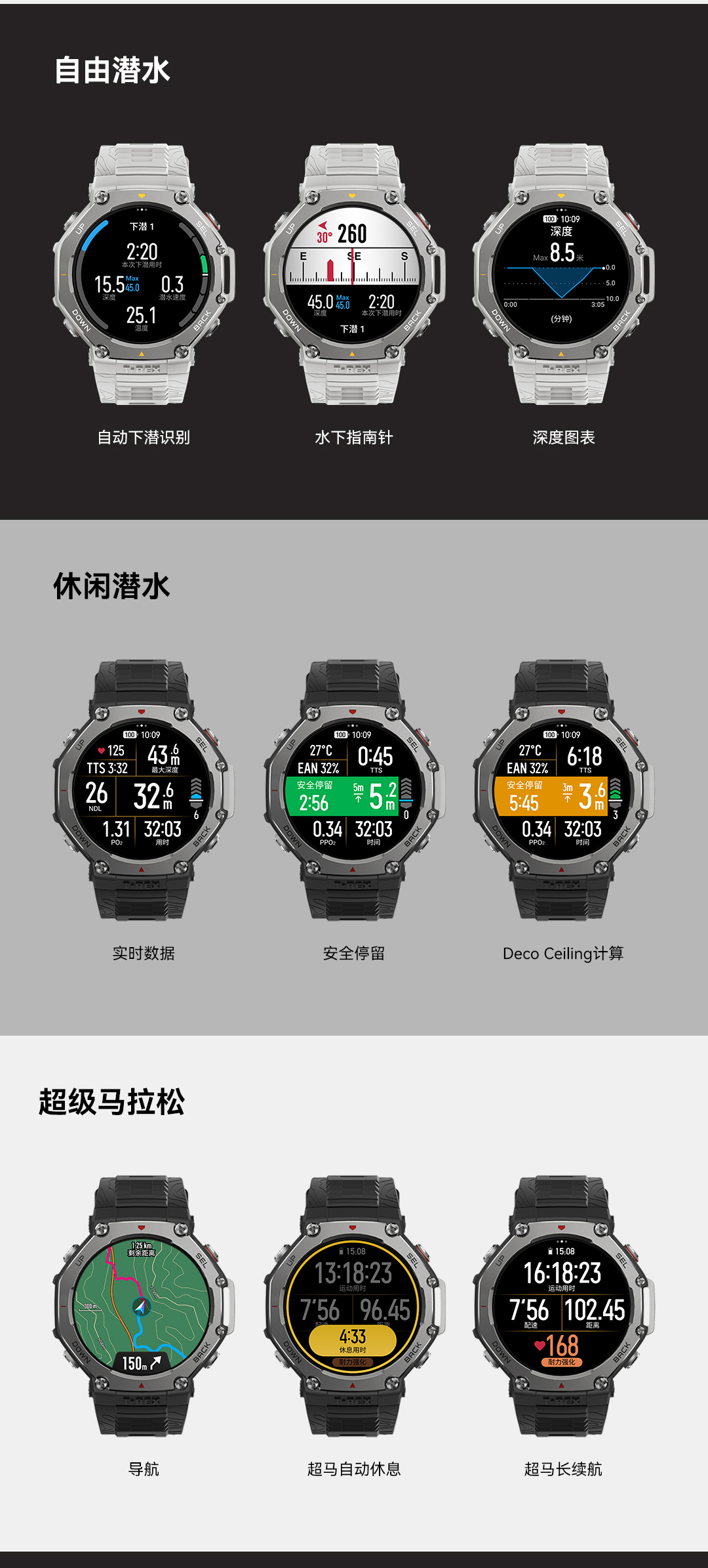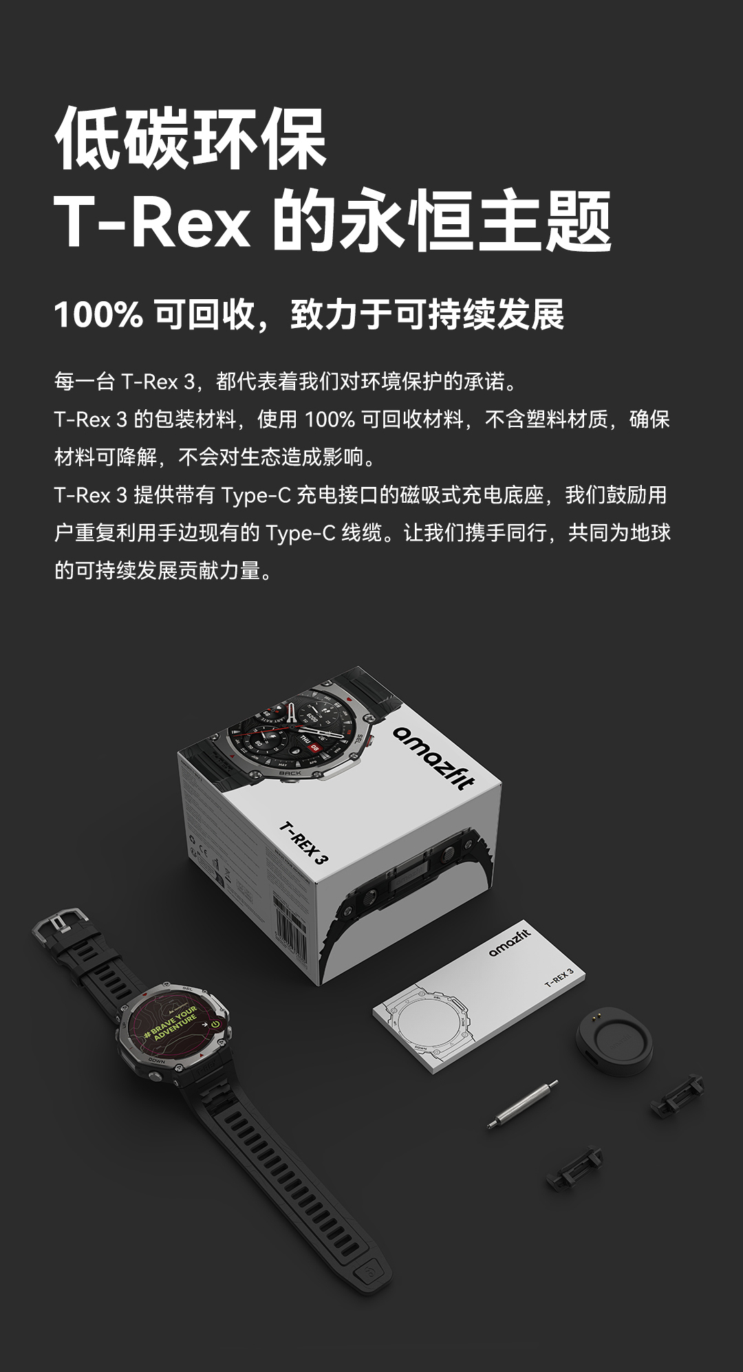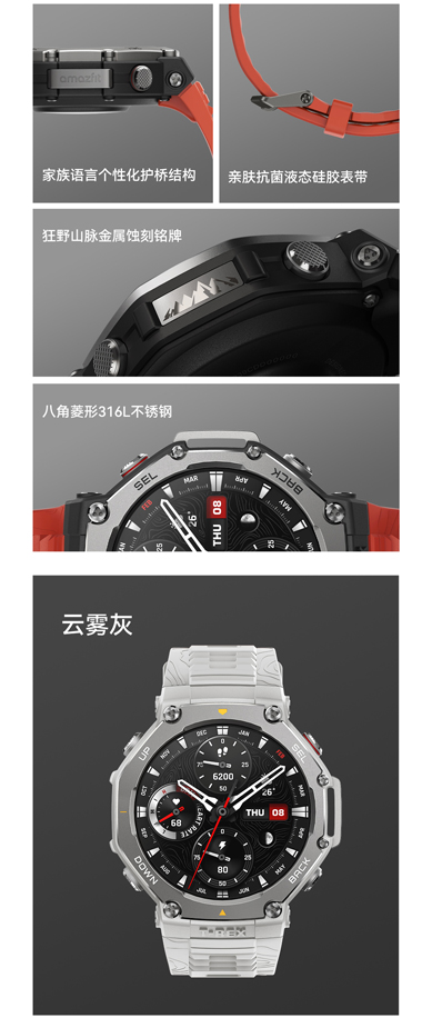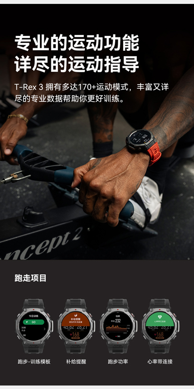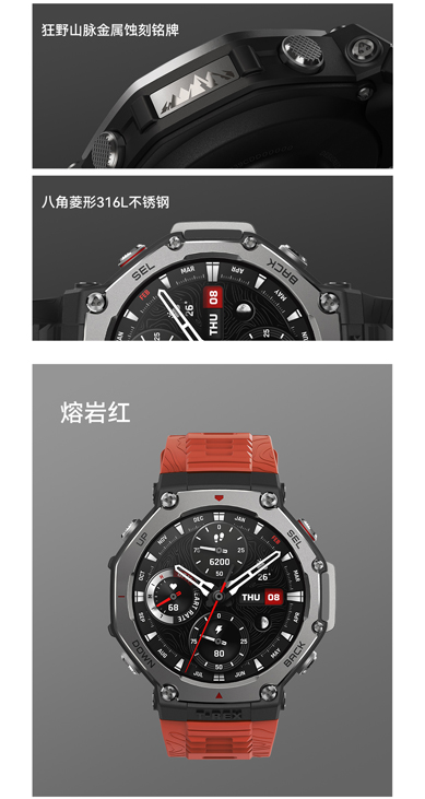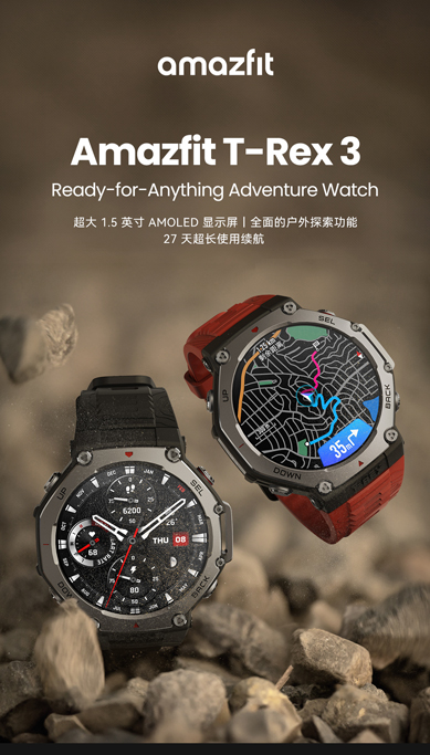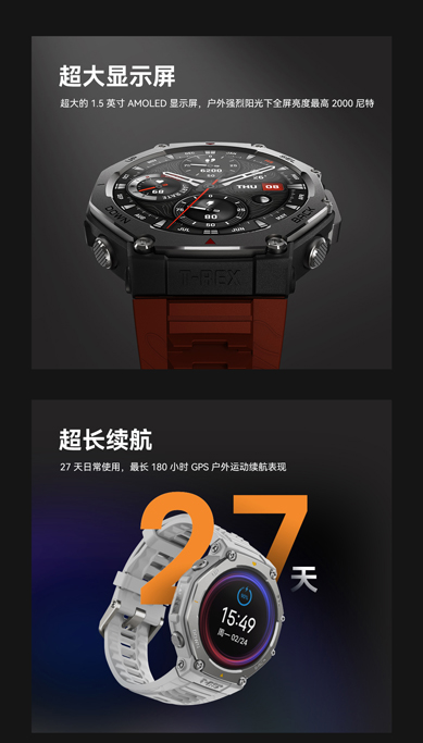 华米 T-Rex 3 户外运动跑步智能手表 48mm 1.5英寸AMOLED屏幕 最高亮度2000尼特 六星双频定位 170+运动模式 45 米自由潜 全面的户外探险功能