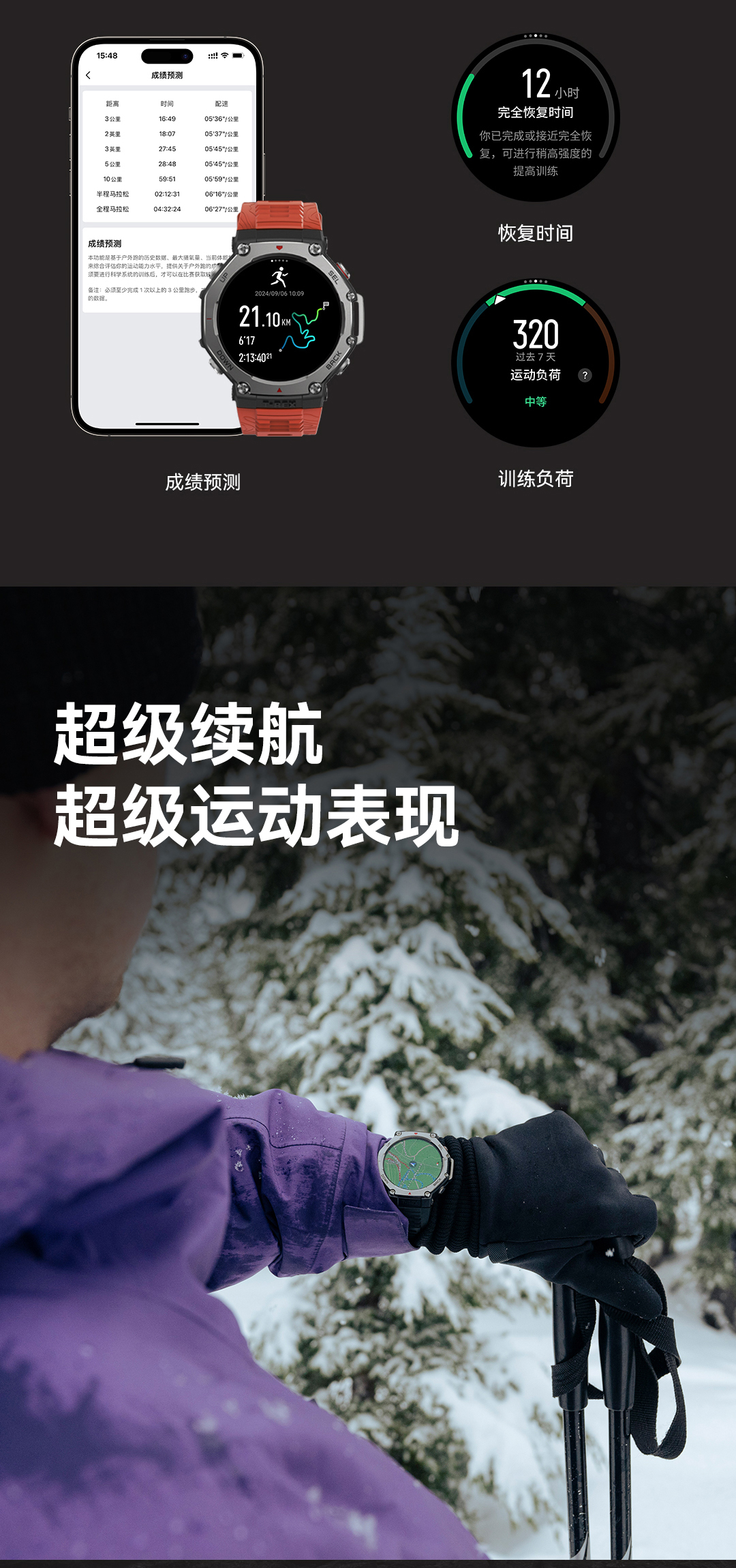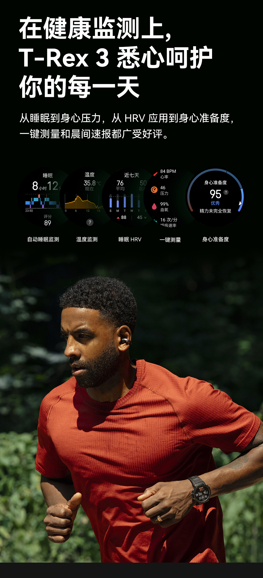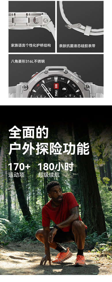 华米 T-Rex 3 户外运动跑步智能手表 48mm 1.5英寸AMOLED屏幕 最高亮度2000尼特 六星双频定位 170+运动模式 45 米自由潜 全面的户外探险功能