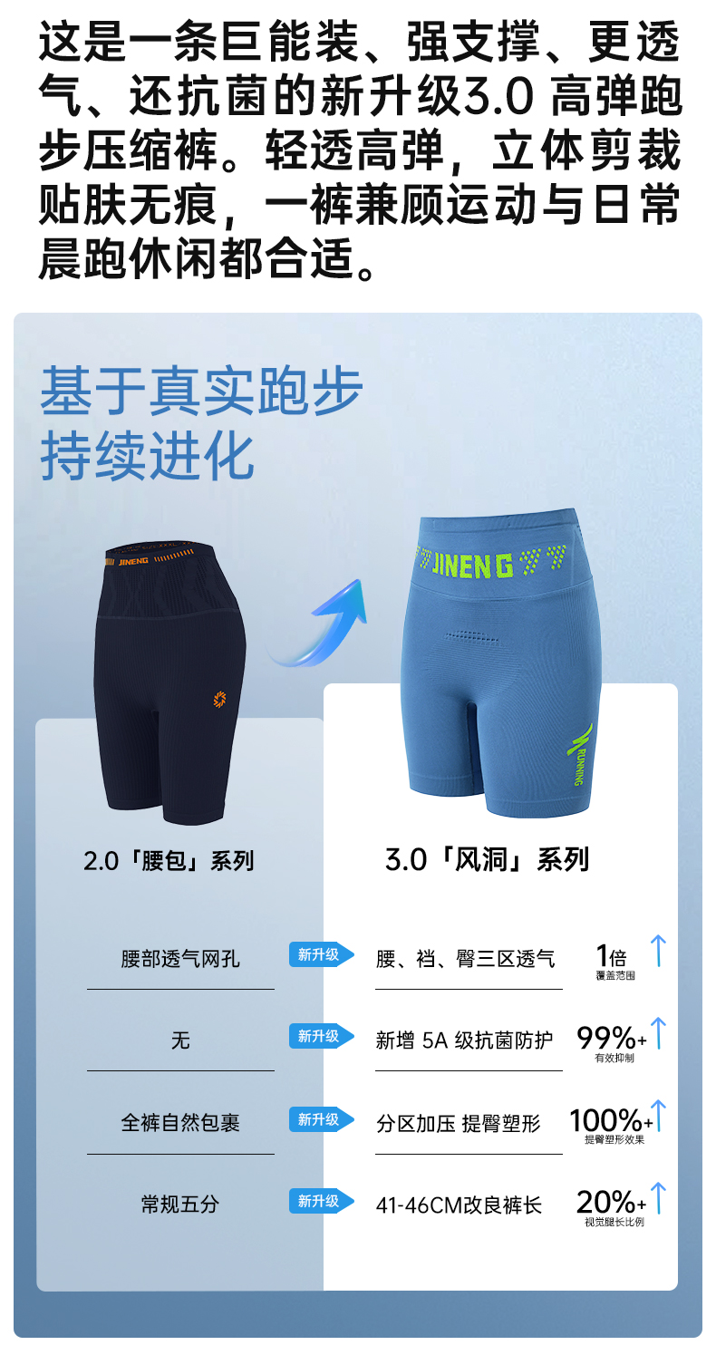 积能3.0男女五分压缩裤马拉松运动短裤整圈腰围可装手机透气速干
