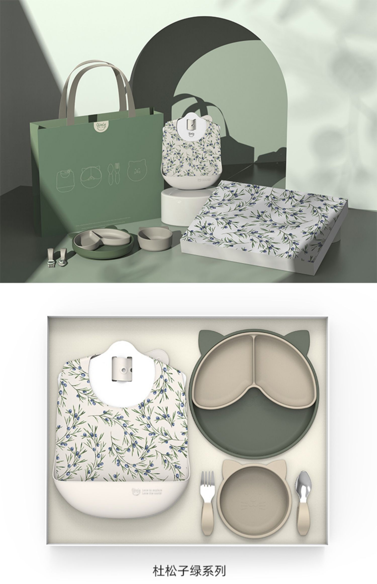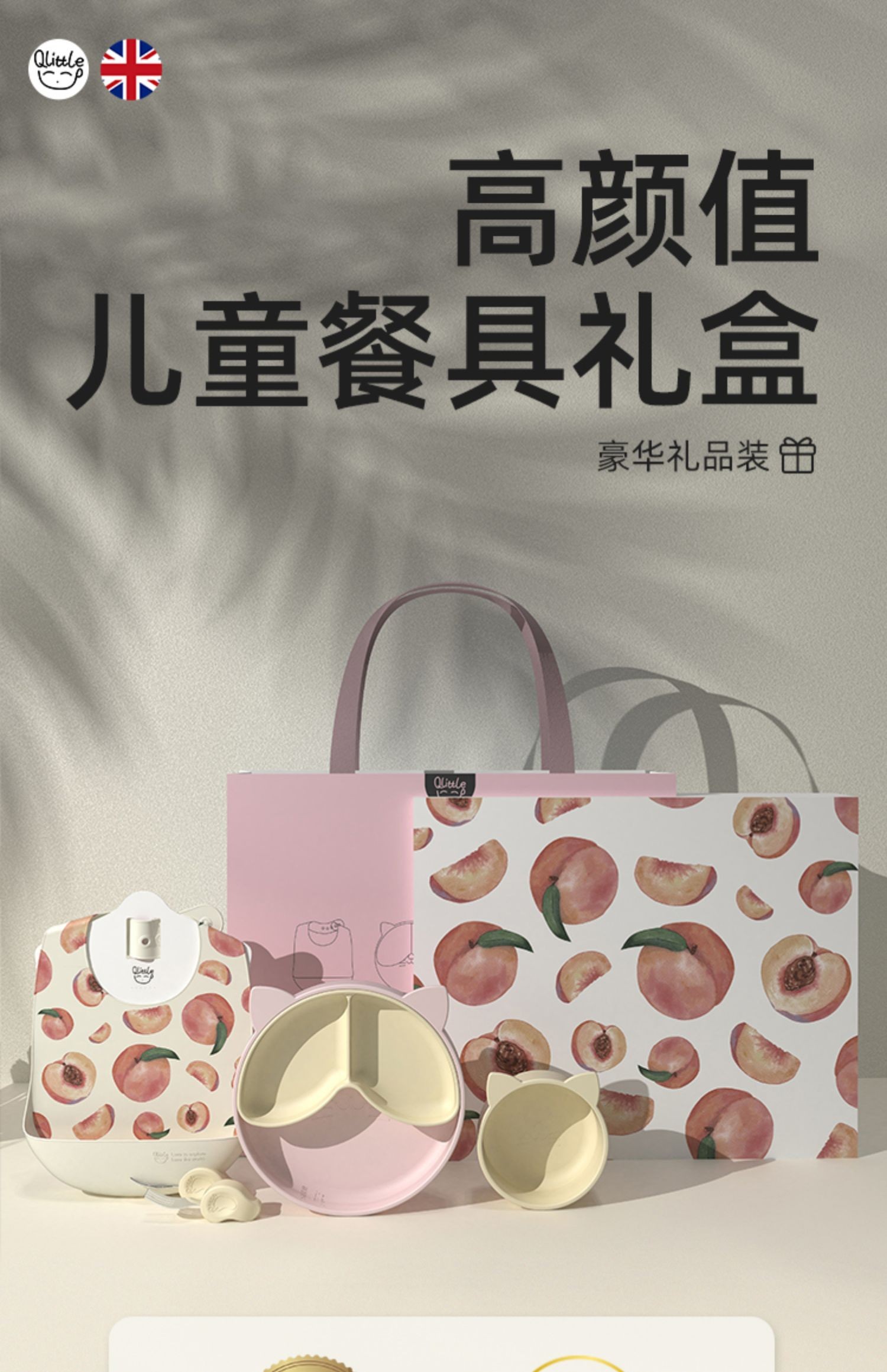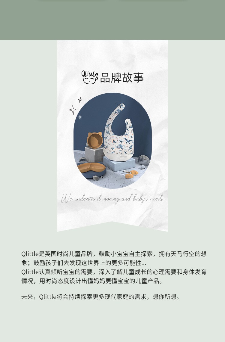 Qlittle宝宝餐具礼盒婴儿辅食套装餐盘饭兜叉勺辅食碗1-3岁送礼