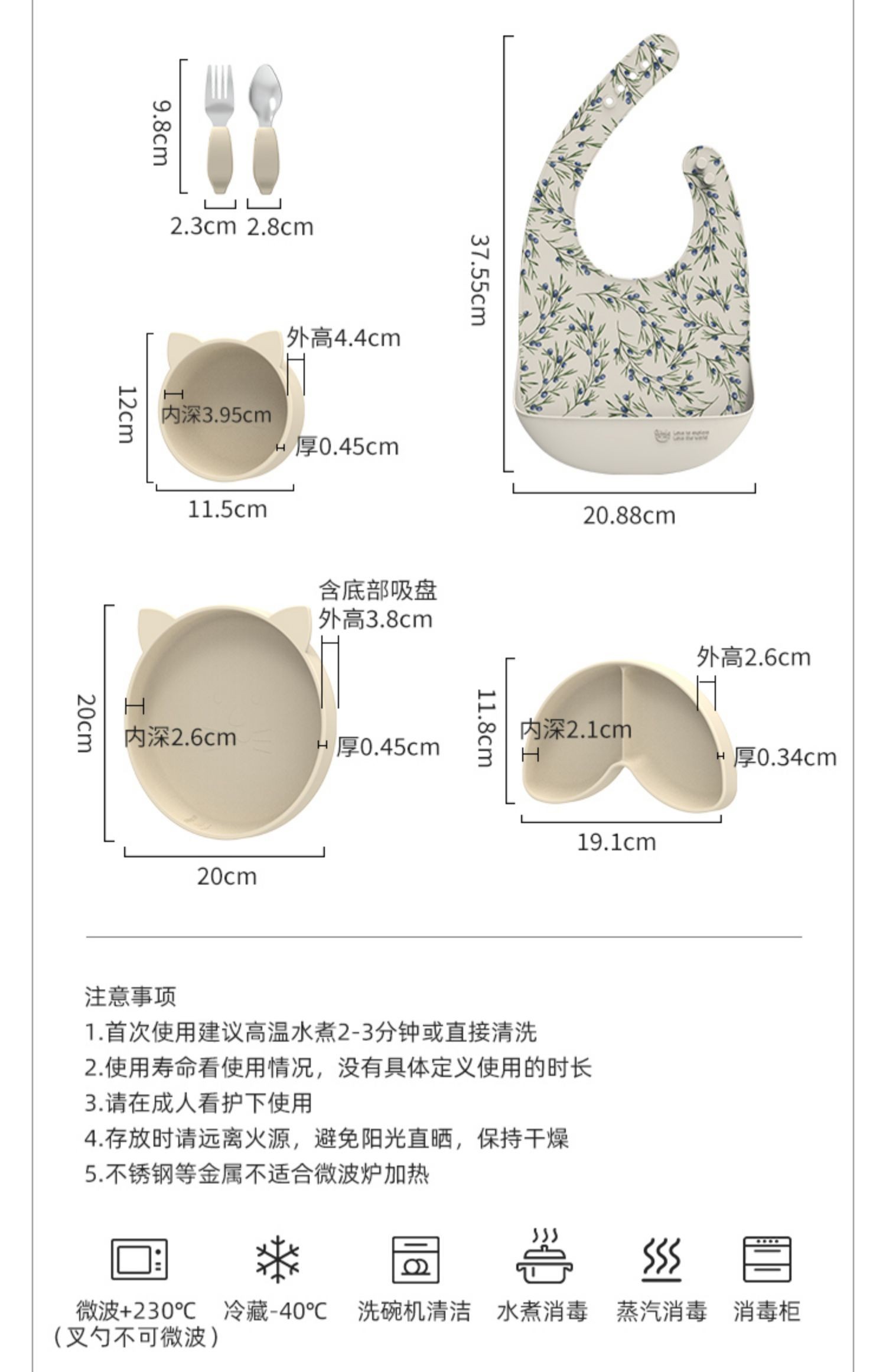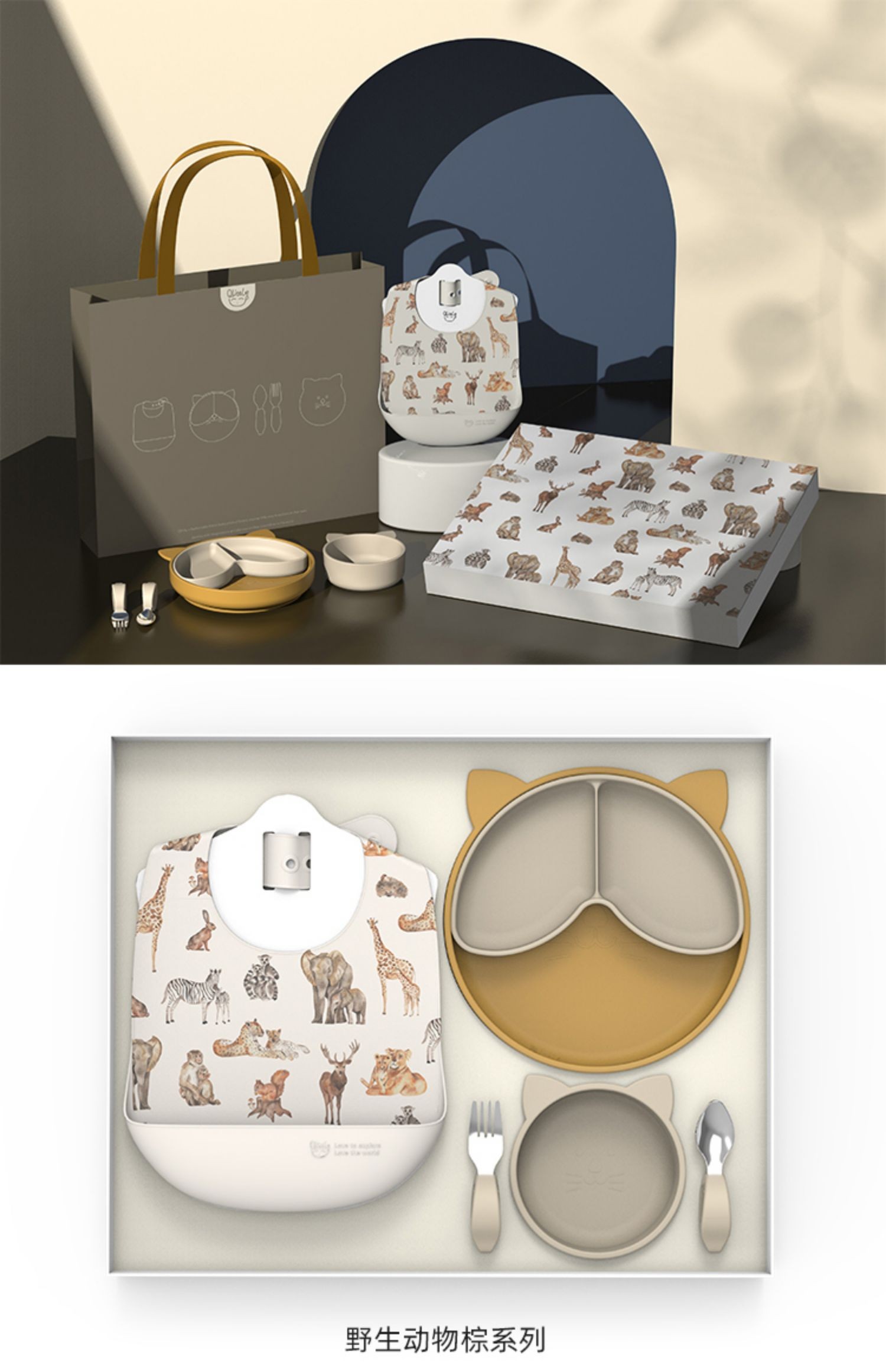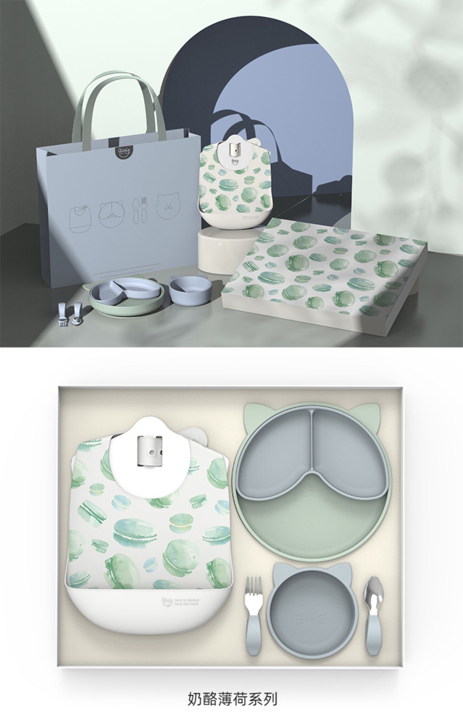 Qlittle宝宝餐具礼盒婴儿辅食套装餐盘饭兜叉勺辅食碗1-3岁送礼