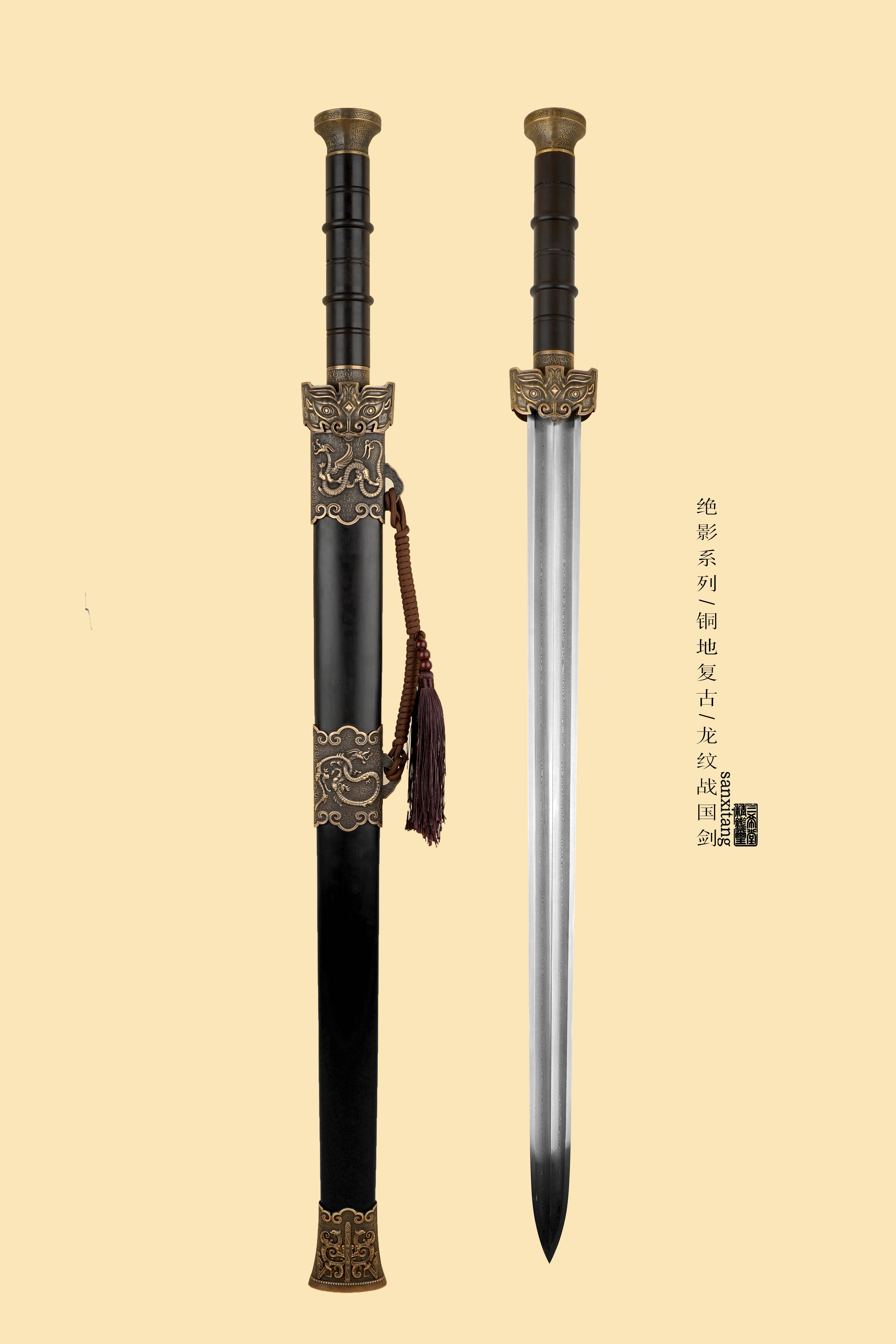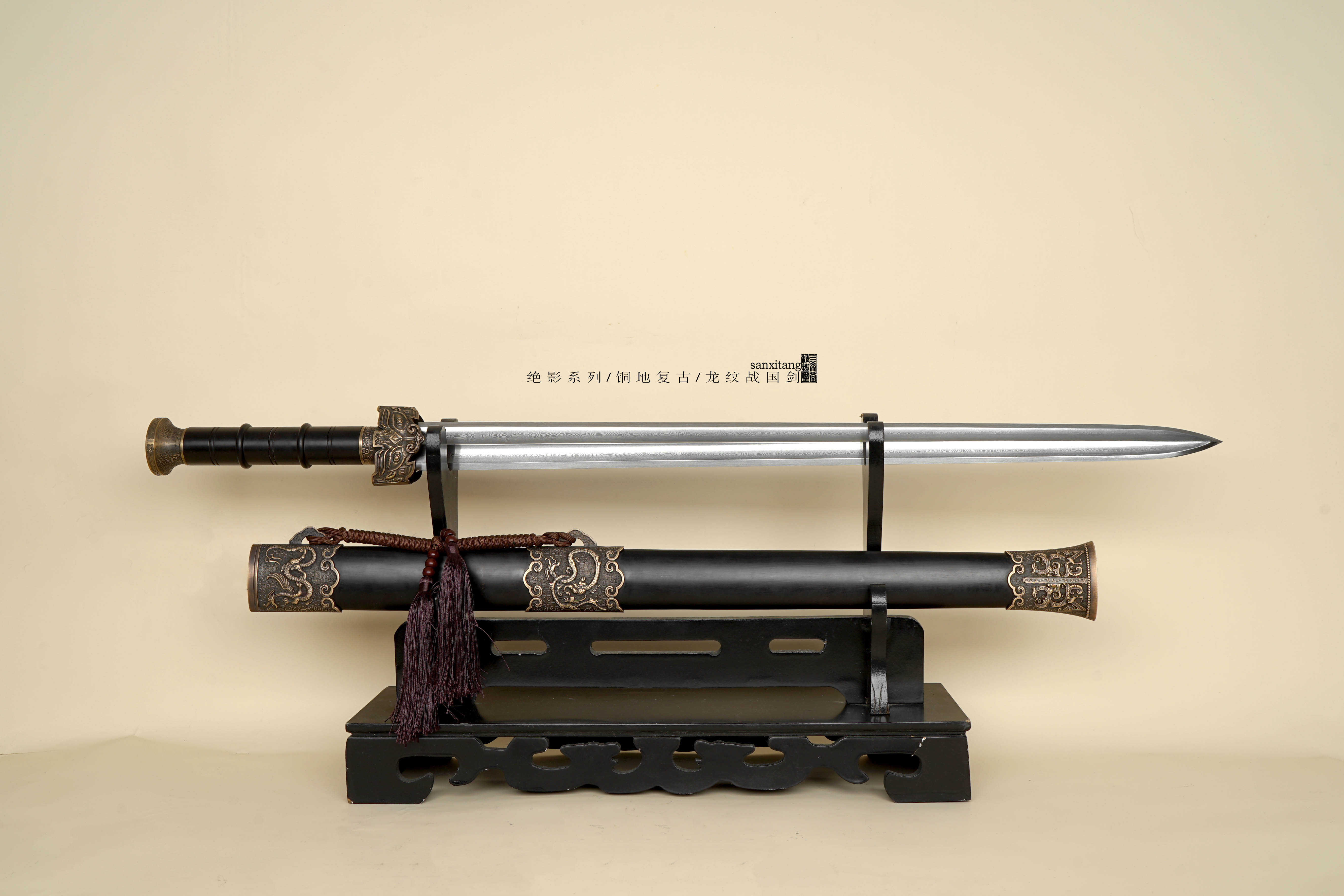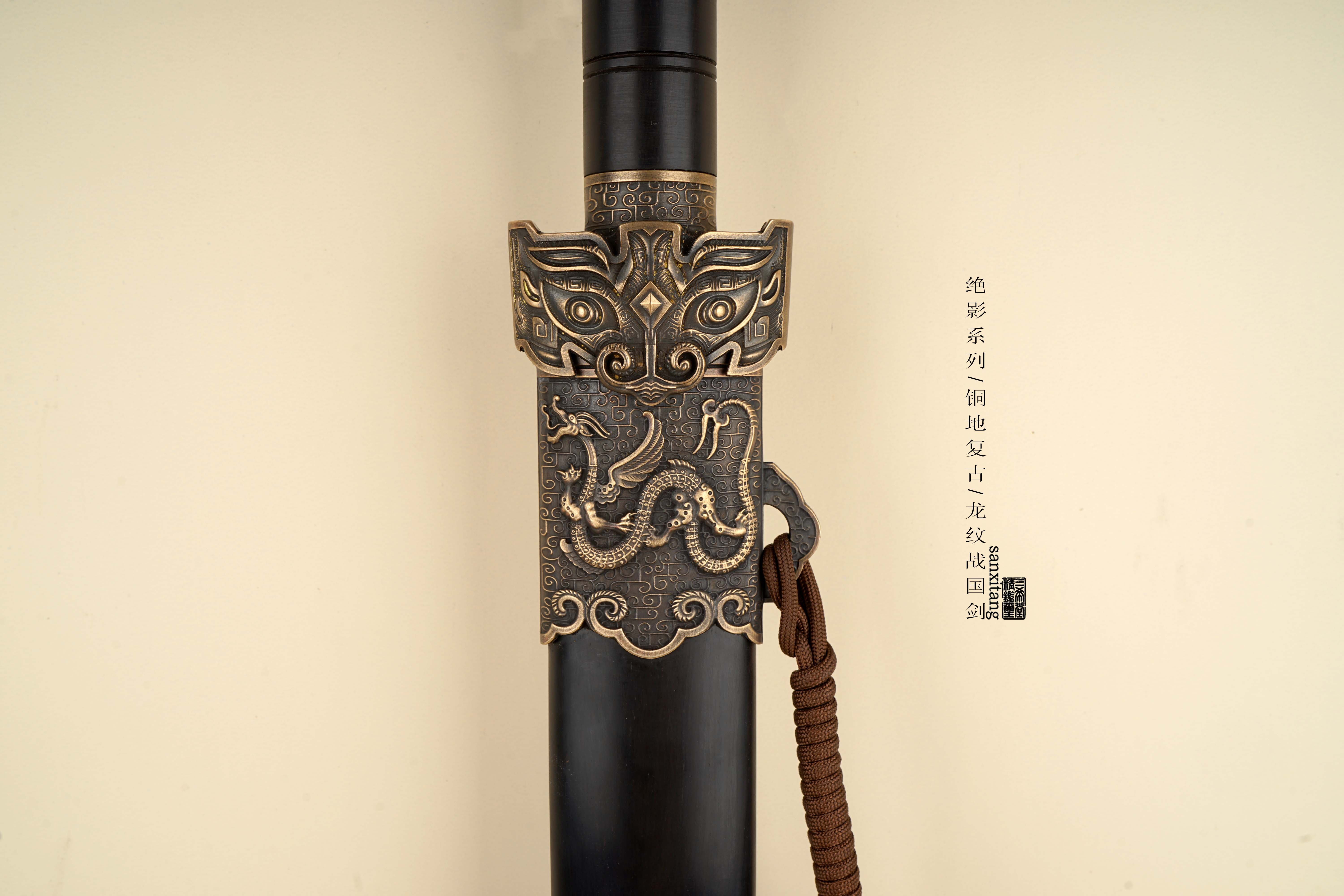全长92左右 全铜地龙纹复古金具 纹路立体生动 大家可以把图片放大看看 特别是剑格和剑珌上的龙纹相当好看 我们自己锻打的2000余层百炼钢 双槽型制 手工推磨 整根黑檀木鞘和柄 握感舒适 性能稳定 送礼盒 摆放架子 各位自己玩或者送礼都非常合适