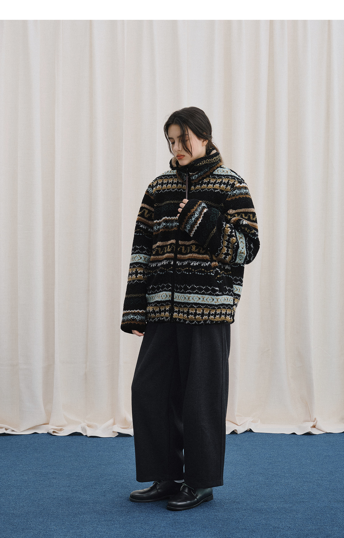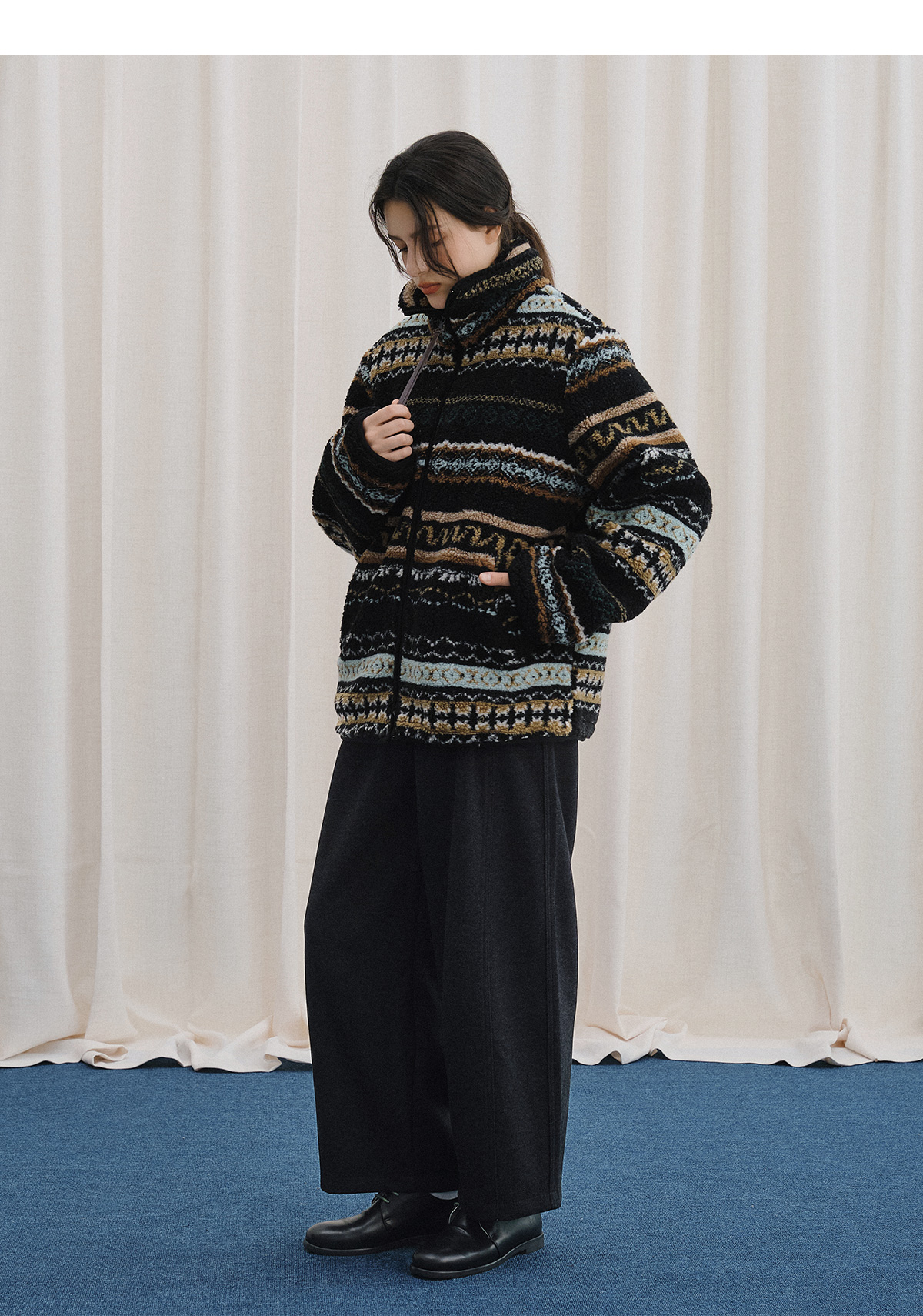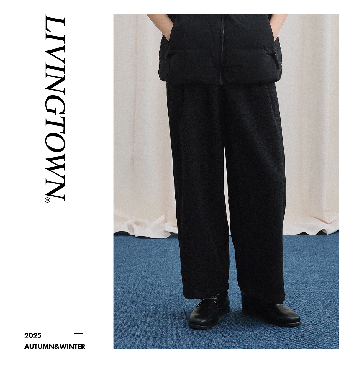LIVINGTOWN/LT醋酸羊毛重磅阔腿弯刀裤