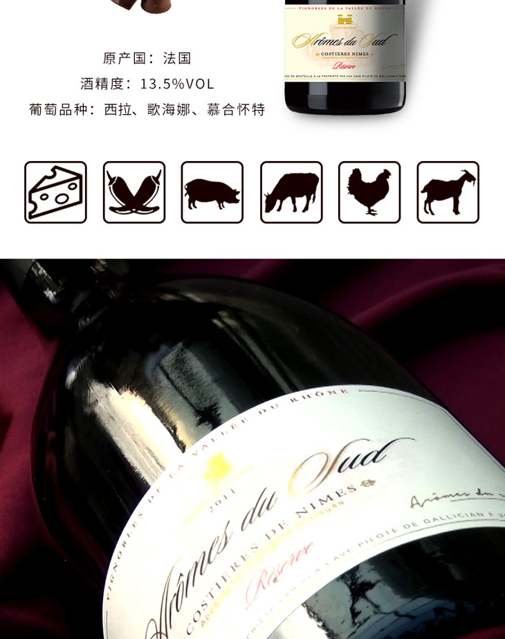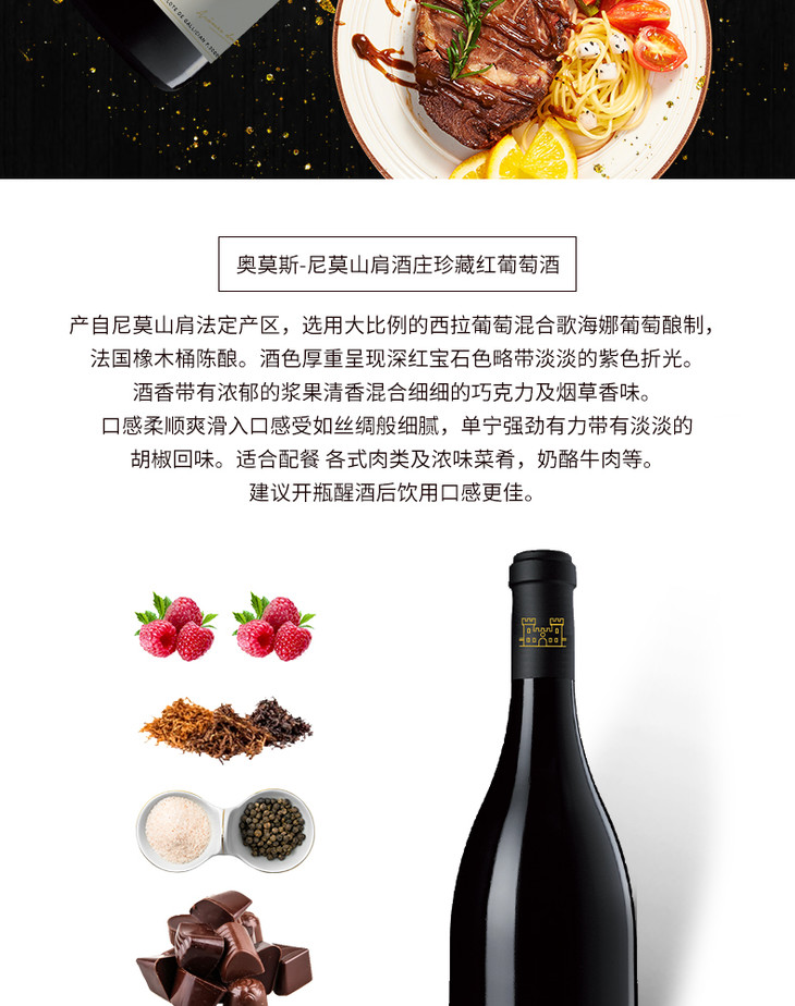 法国原瓶进口红酒 奥莫斯尼莫山肩酒庄珍藏干红葡萄酒 Aromes Costieres de Nimes Reserve 750ml【2015】