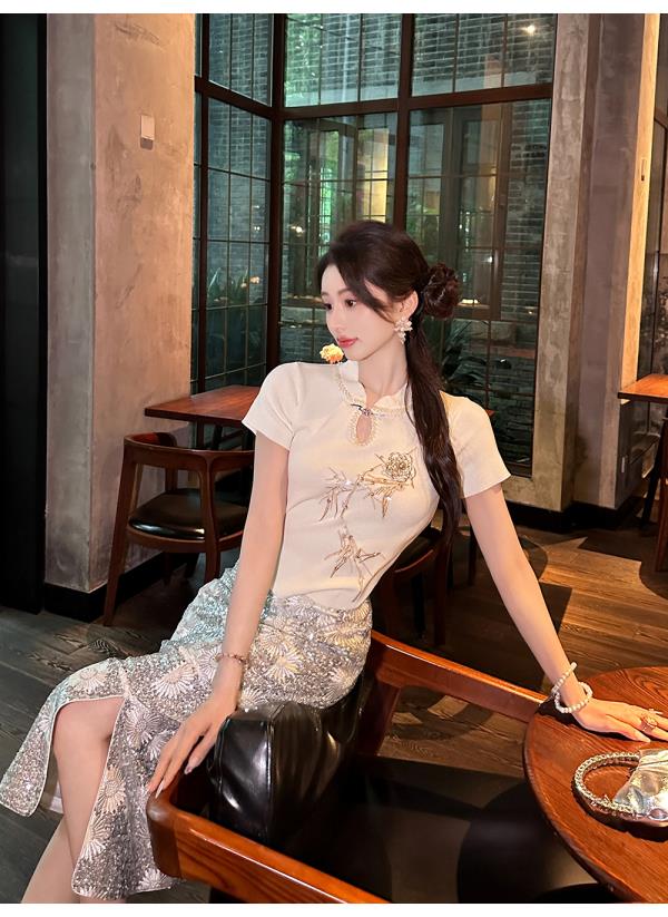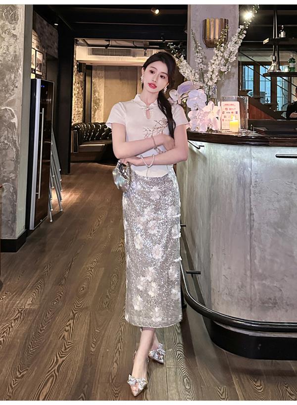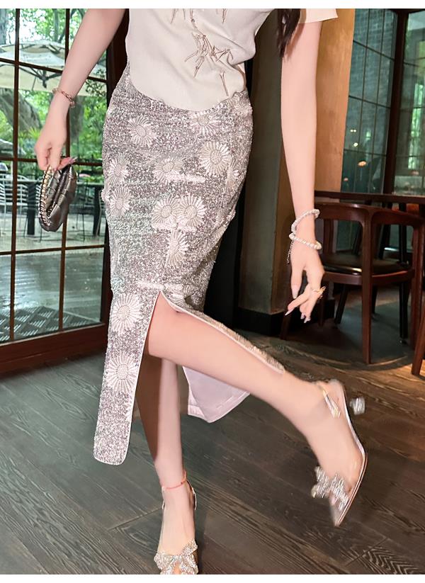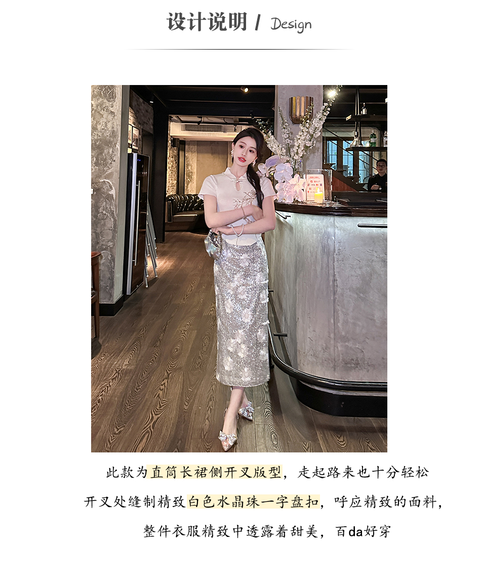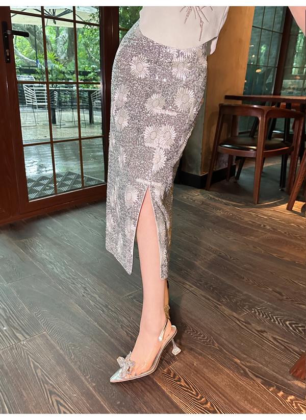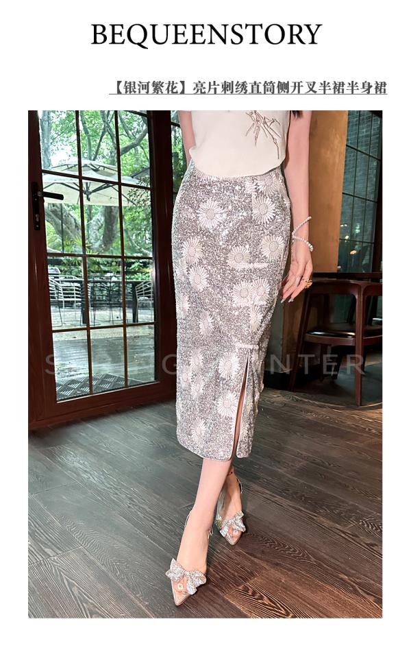 【孤品样衣,不退不换】 【银河繁花】高定重工亮片刺绣直筒侧开叉半裙半身裙夏