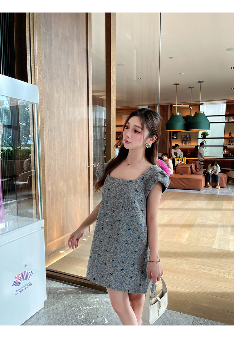 清仓捡漏 LINCHAOZHANG【四芒星】北欧像素雪花细节连衣裙 LL240478
