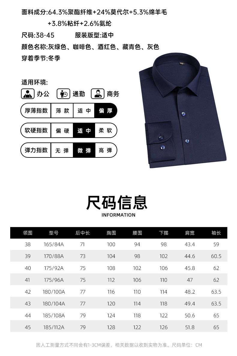【实付满399送保温杯】【可机洗含羊毛拉绒蓄热衬衫】加厚保暖打底衬衫商务通勤长袖衬衣CT521